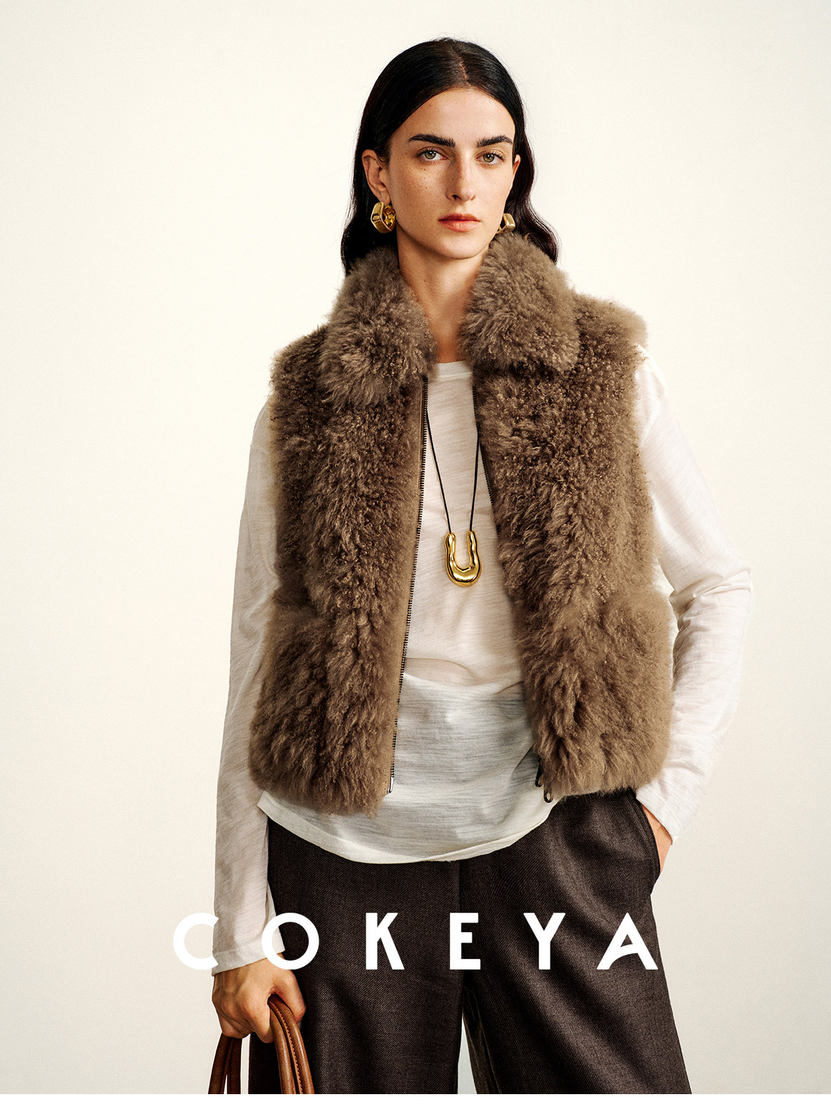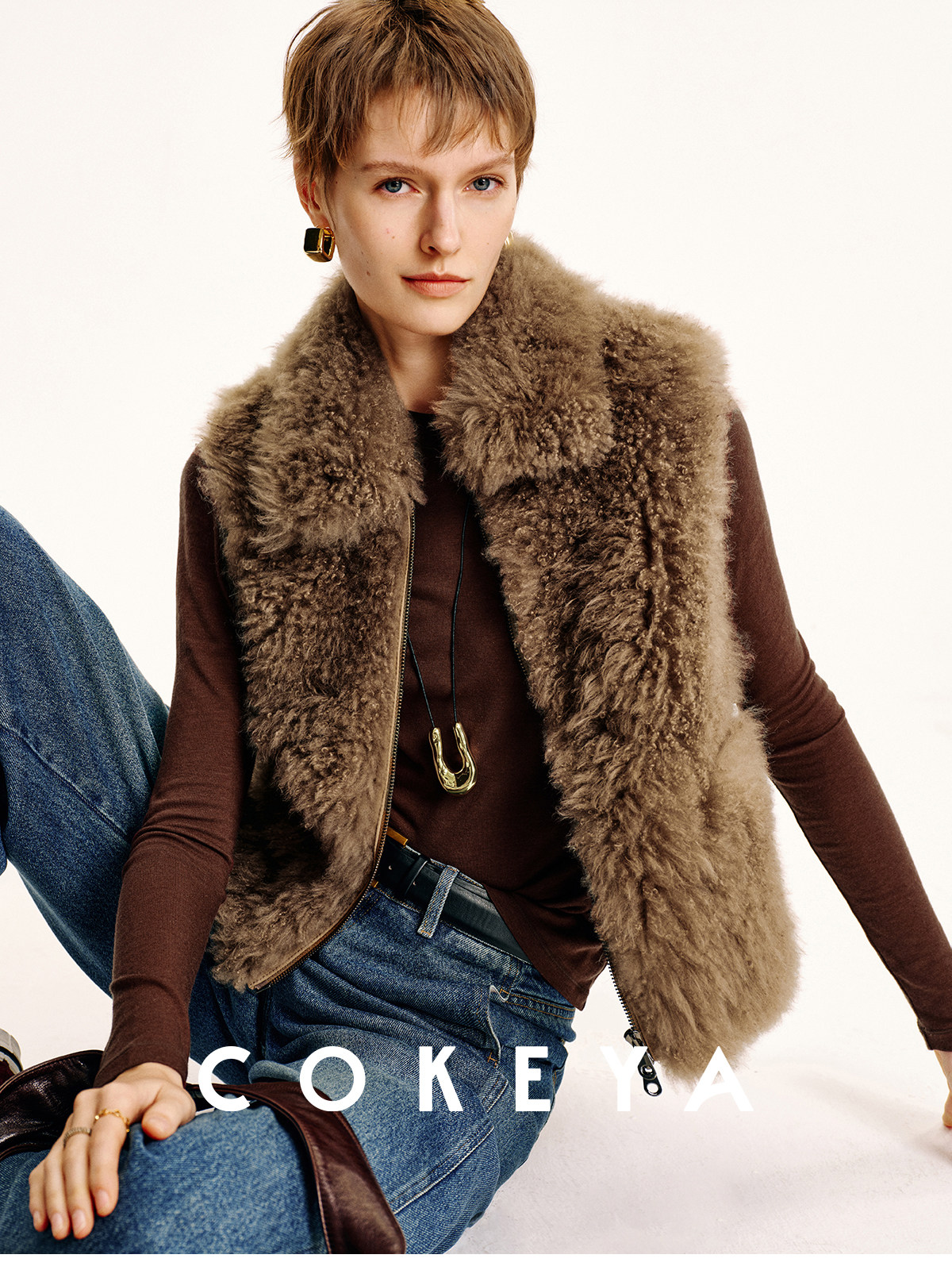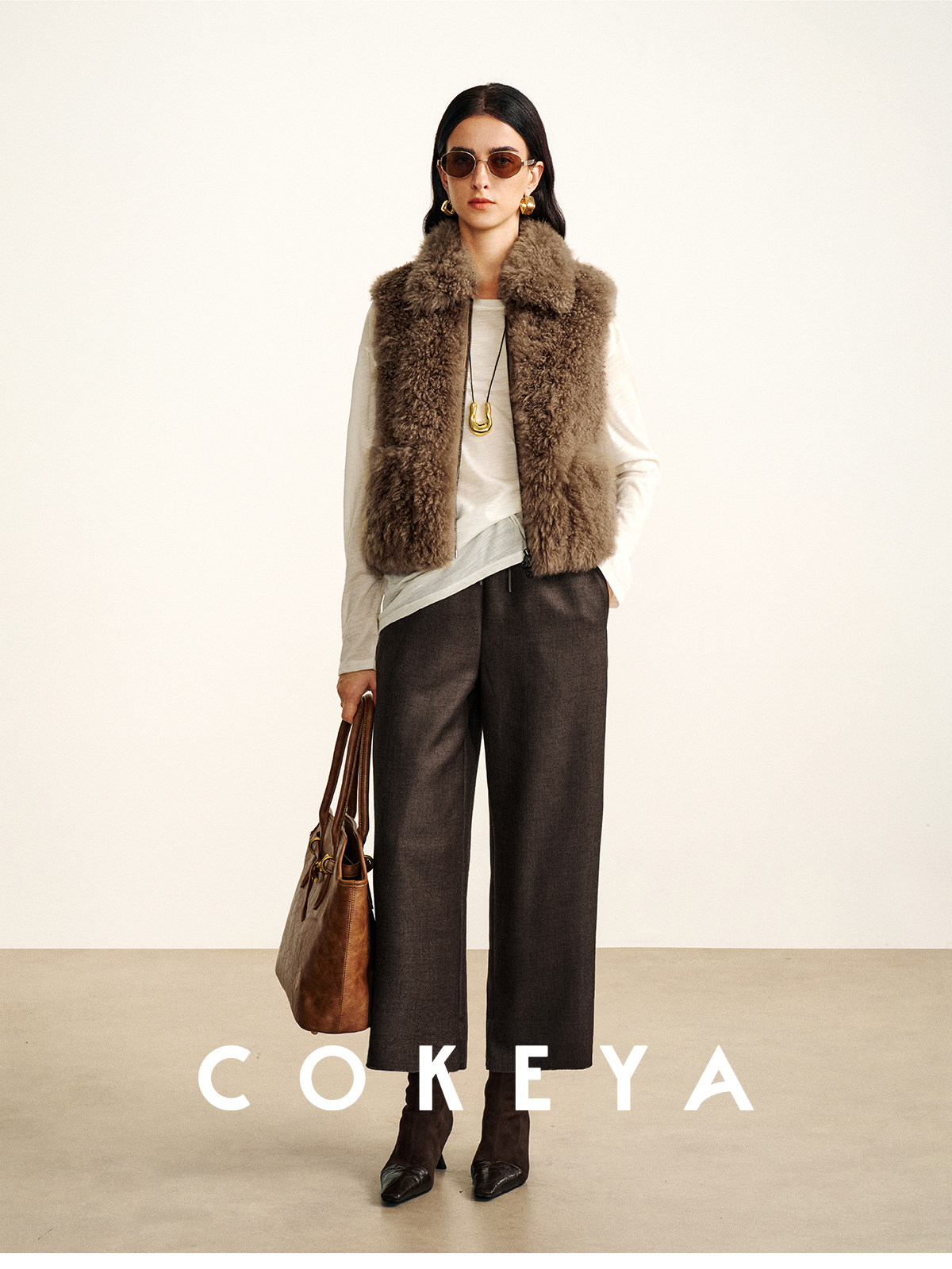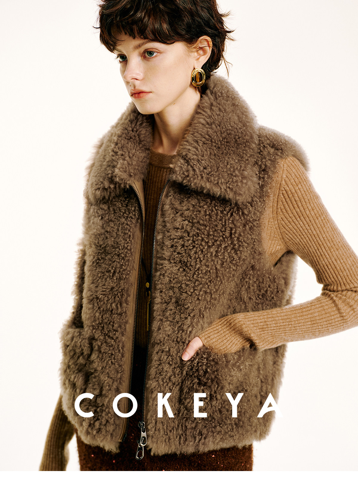 Cokeya/Velvet "Hot Cocoa"~Cashmere Fur Integrated Lapel Sleeveless Fur Vest Jacket for Women Winter