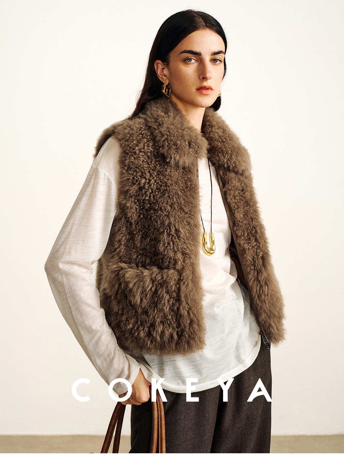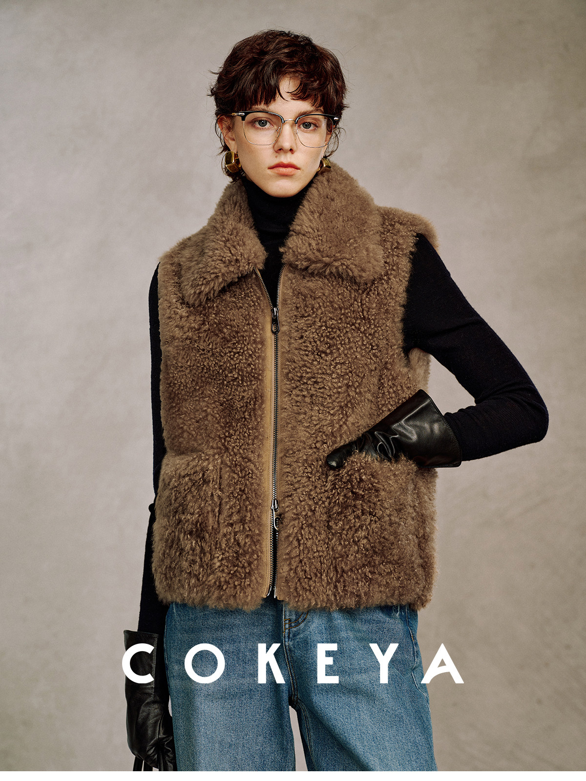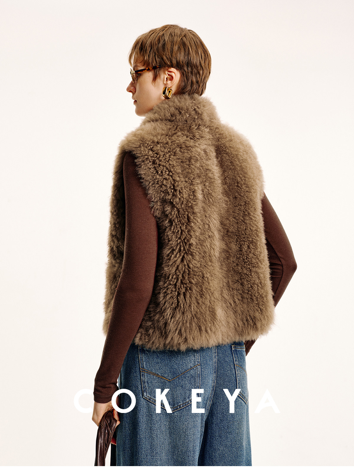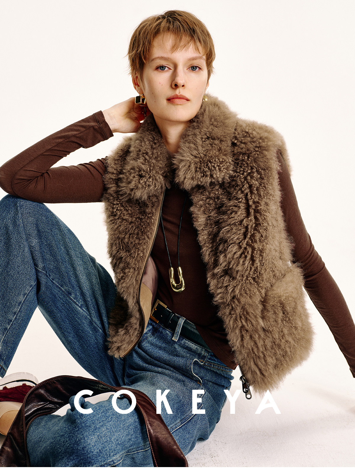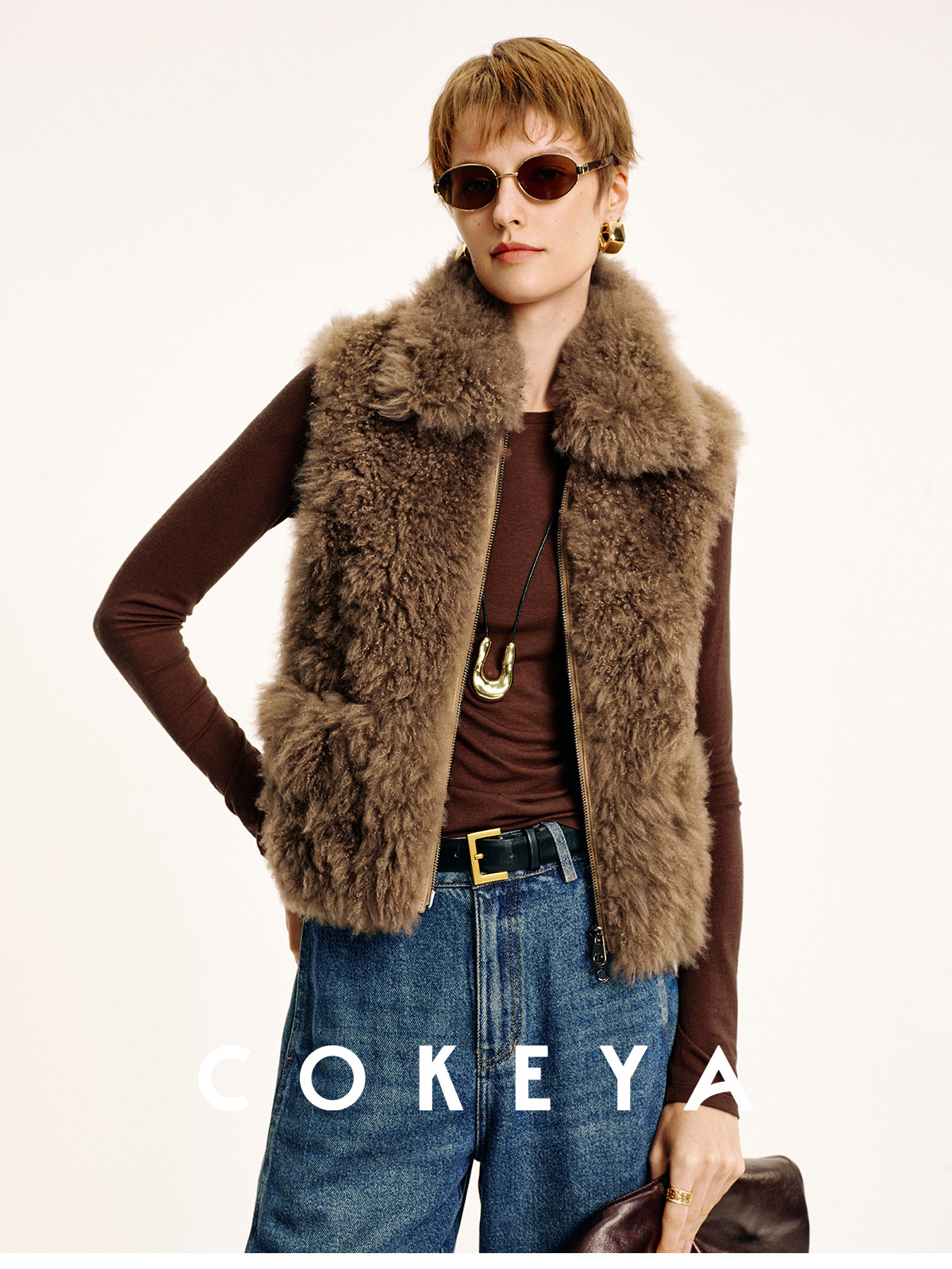 Cokeya/Velvet "Hot Cocoa"~Cashmere Fur Integrated Lapel Sleeveless Fur Vest Jacket for Women Winter