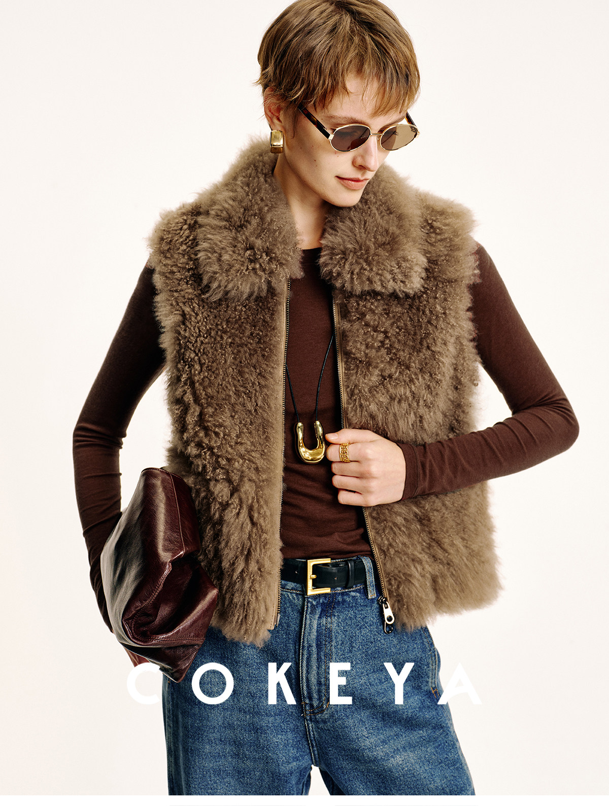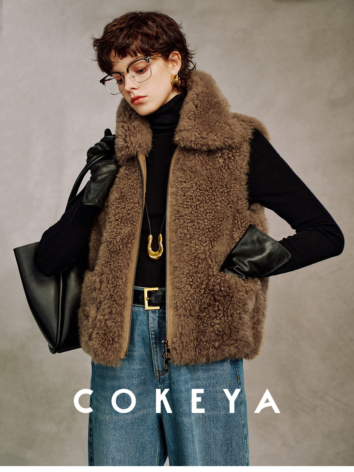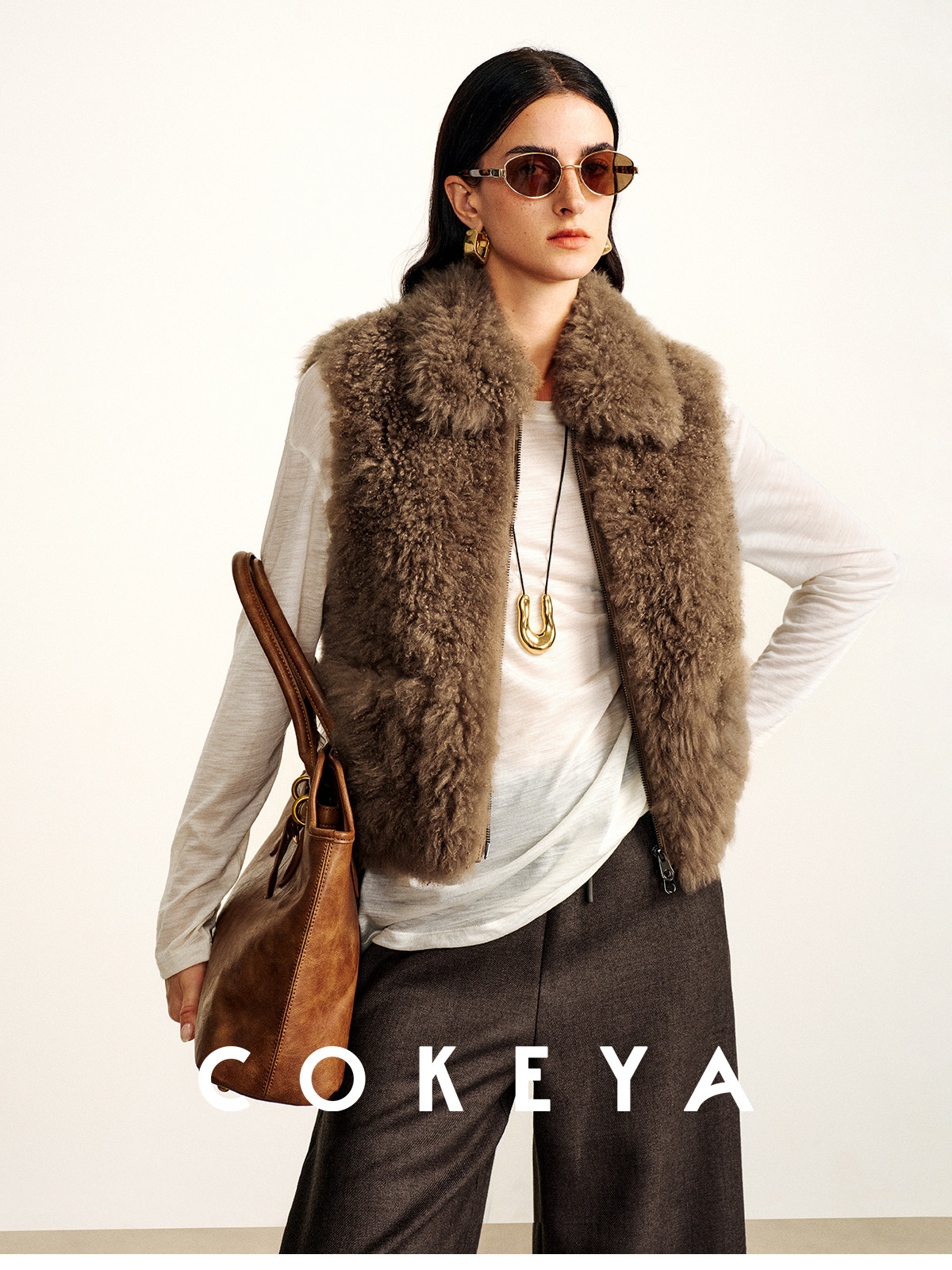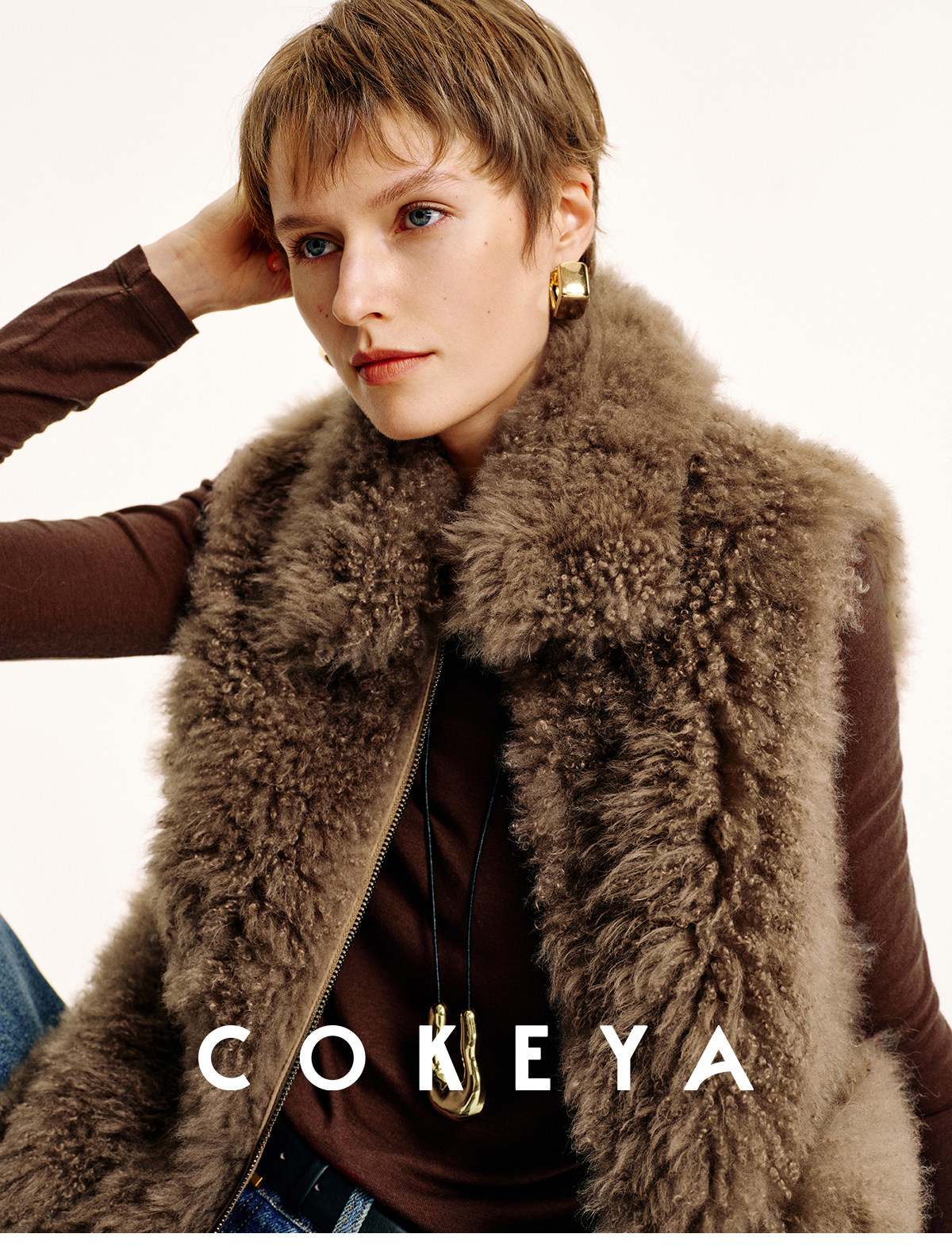 Cokeya/Velvet "Hot Cocoa"~Cashmere Fur Integrated Lapel Sleeveless Fur Vest Jacket for Women Winter