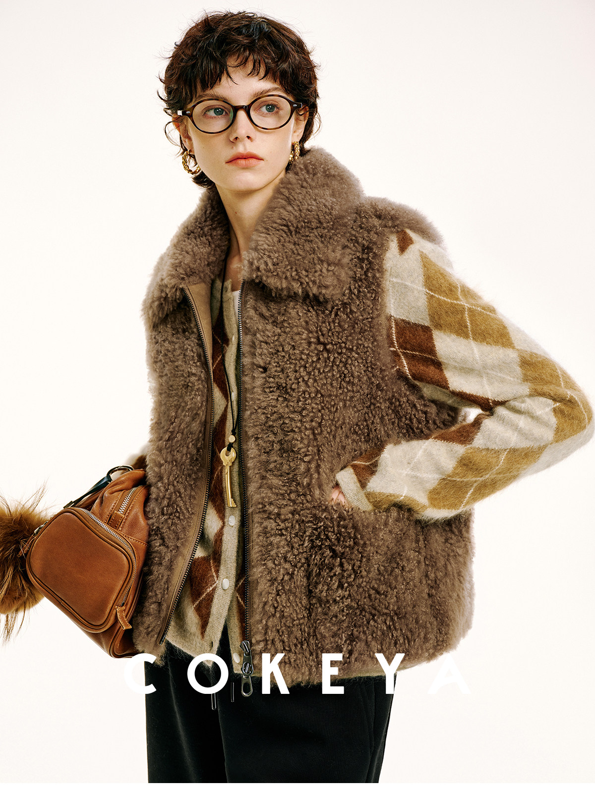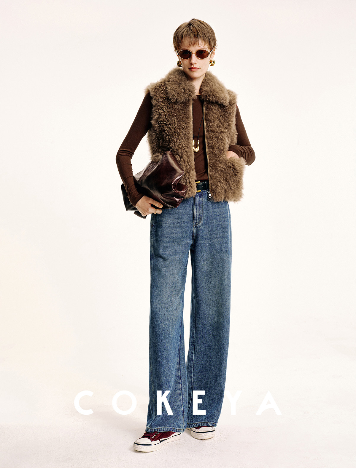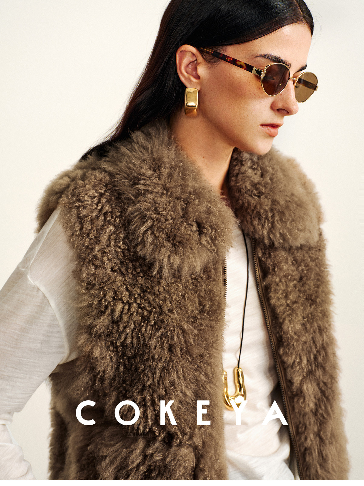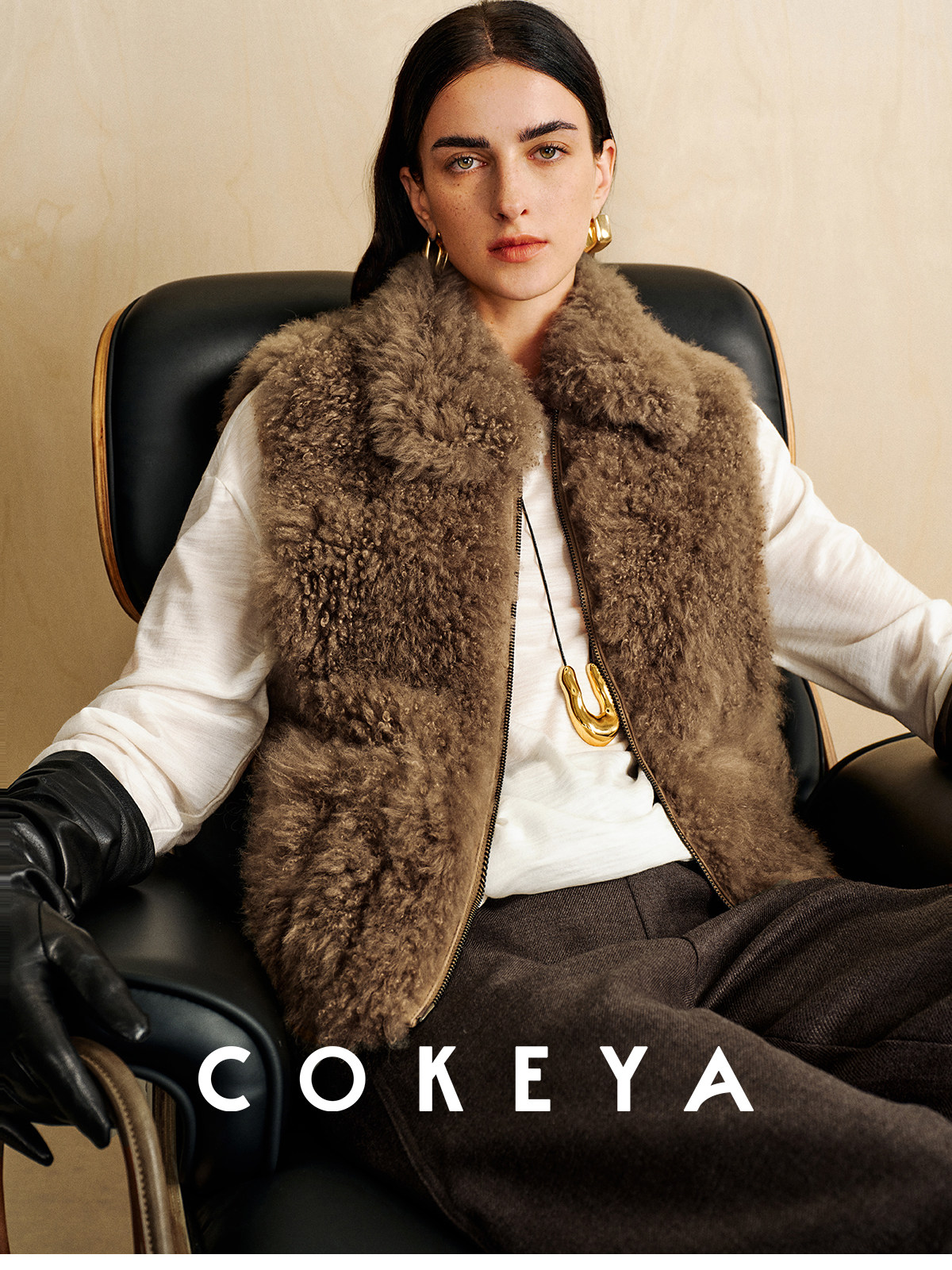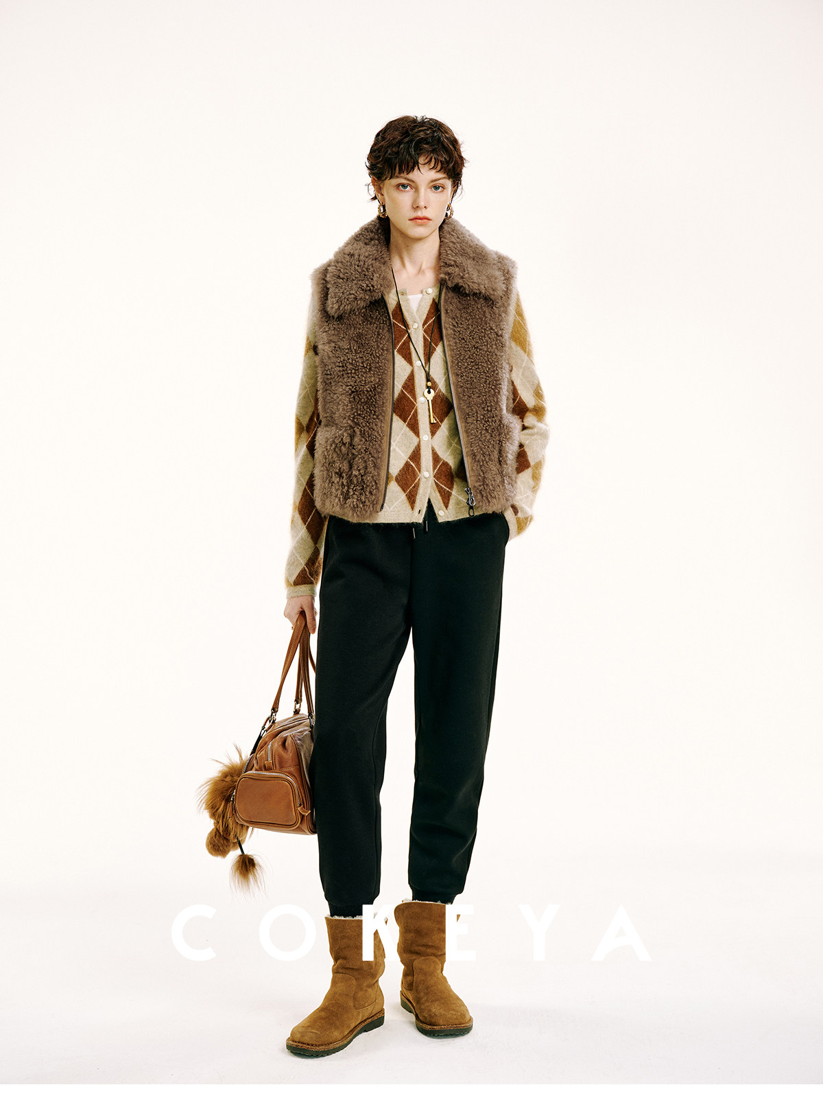 Cokeya/Velvet "Hot Cocoa"~Cashmere Fur Integrated Lapel Sleeveless Fur Vest Jacket for Women Winter