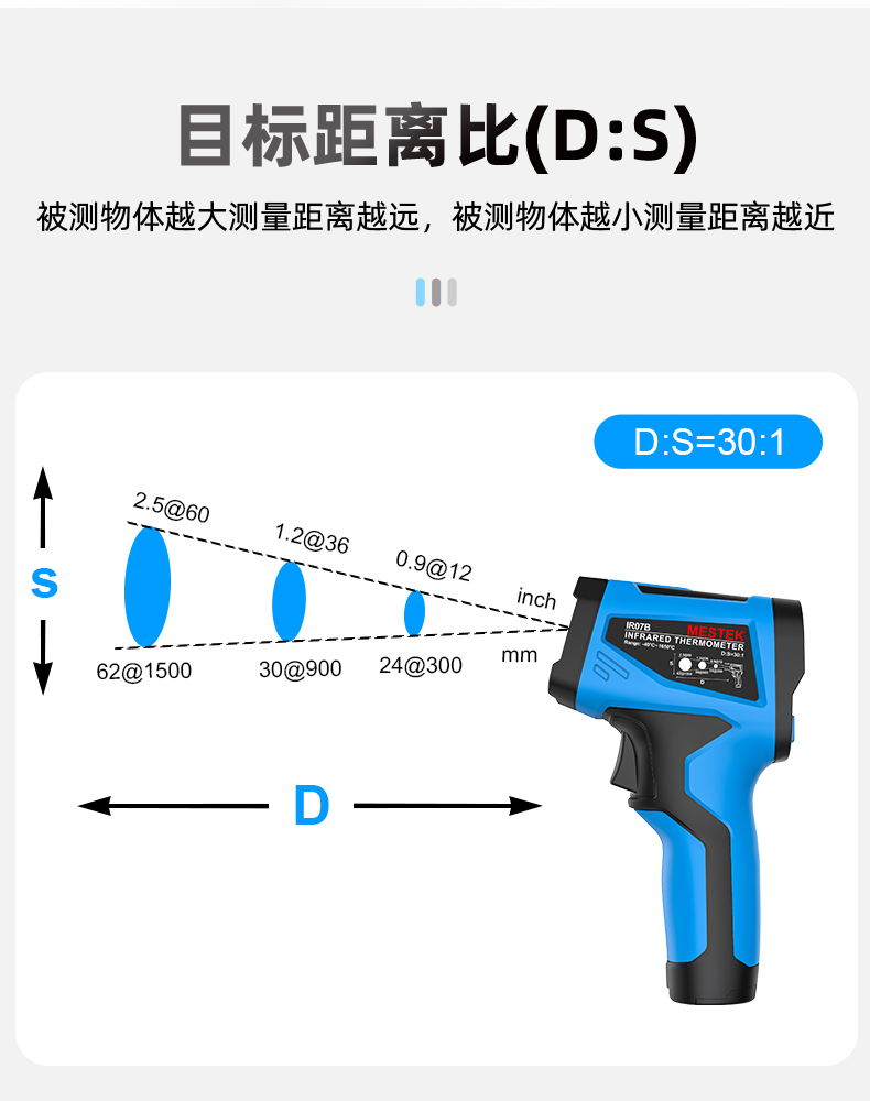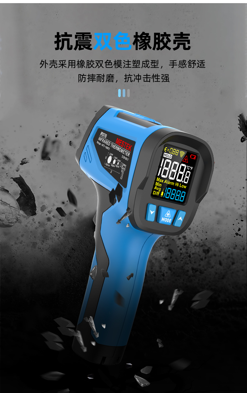 Mestek Ir07 Series High Temperature Digital Display Non-Contact Infrared Thermometer -50~1650 ℃