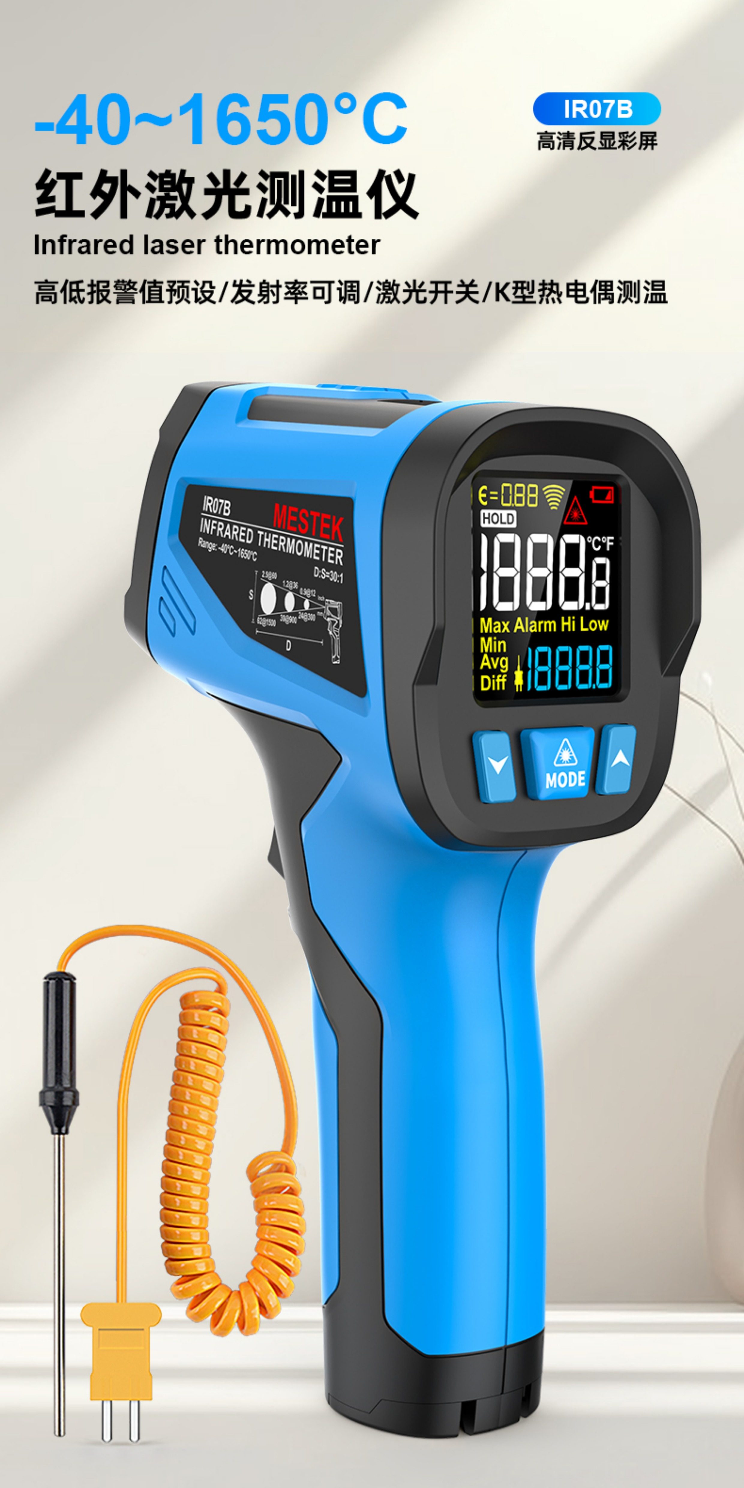 Color Classification Ir07 [Measuring Range-40~1050℃/K Type Contact Temperature Measurement],Ir07A [Measuring Range-40~1350 ℃ /K Type Contact Temperature Measurement],Ir07B [Measuring Range-40~1650℃/K Type Contact Temperature Measurement]
