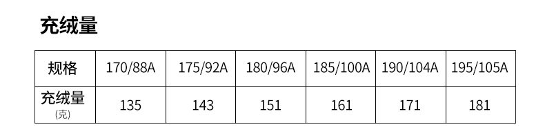 Fleece filling amount 135-181g