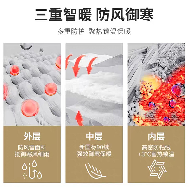 Color Khaki (down jacket + sweater + fleece jeans),Off-white (down jacket + sweater + fleece jeans),Black (down jacket + sweater + fleece jeans),Khaki (down jacket + fleece jeans),Off-white (down jacket + fleece jeans),Black (down jacket + fleece jeans),Khaki (down jacket + sweater),Off-white (down jacket + sweater),Black (down jacket + sweater),Khaki (single down jacket),Off-white (single down jacket),Black (single down jacket)
