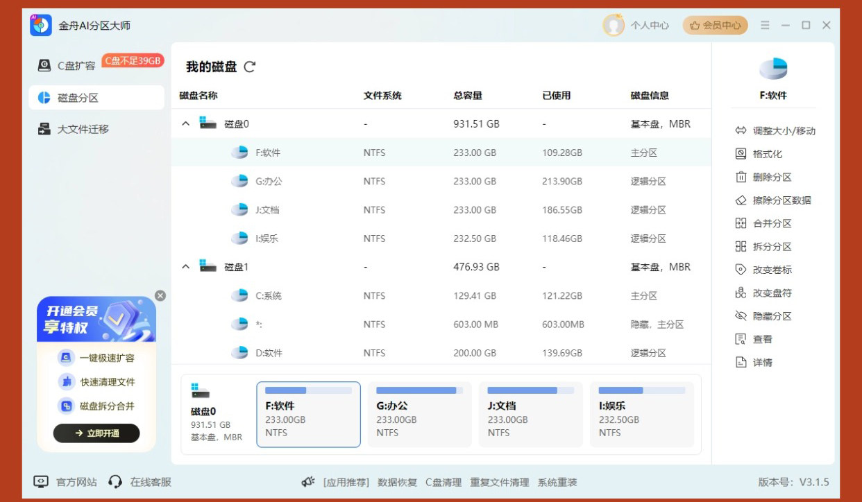 Jinzhou Ai Partition Master Computer C Drive Expansion Software Win System Desktop Hard Drive Disk Space Partition Expansion