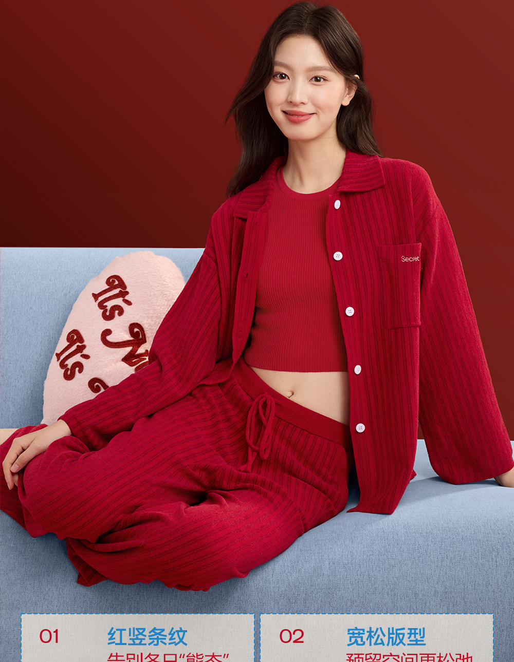 Secretworld Original New Autumn and Winter Red Pajamas Women's Long-Sleeved Home Wear Set Newlywed's Zodiac Year