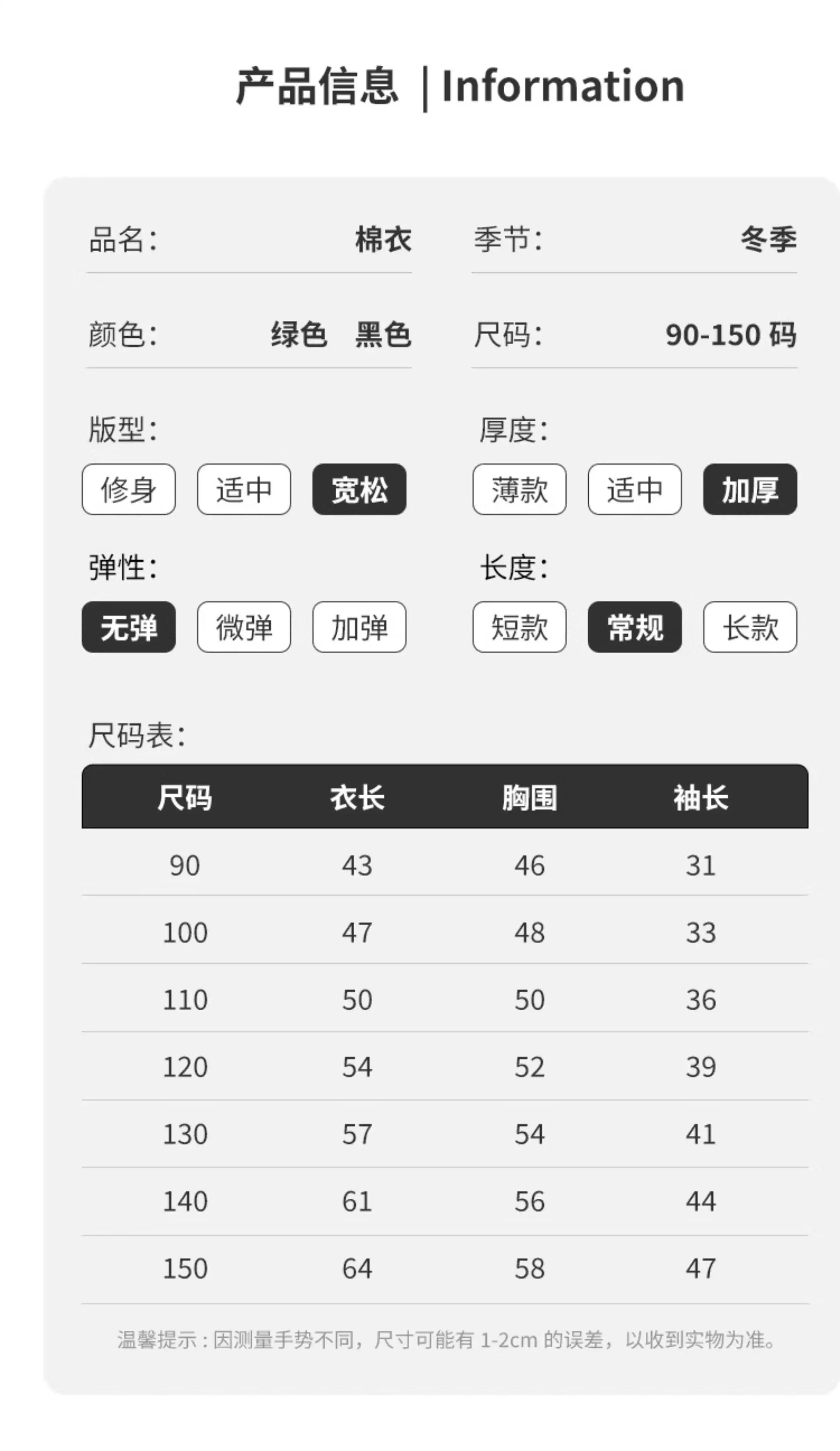 Size (cm) 42 44 46 48 50