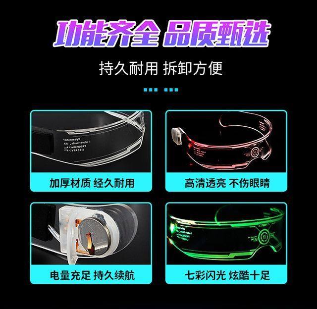 Children's Luminous Glasses, Color-Changing, Luminous, Technological, Futuristic Glasses, Hip-Hop Performance Accessories, Trendy and Fashionable Ledll