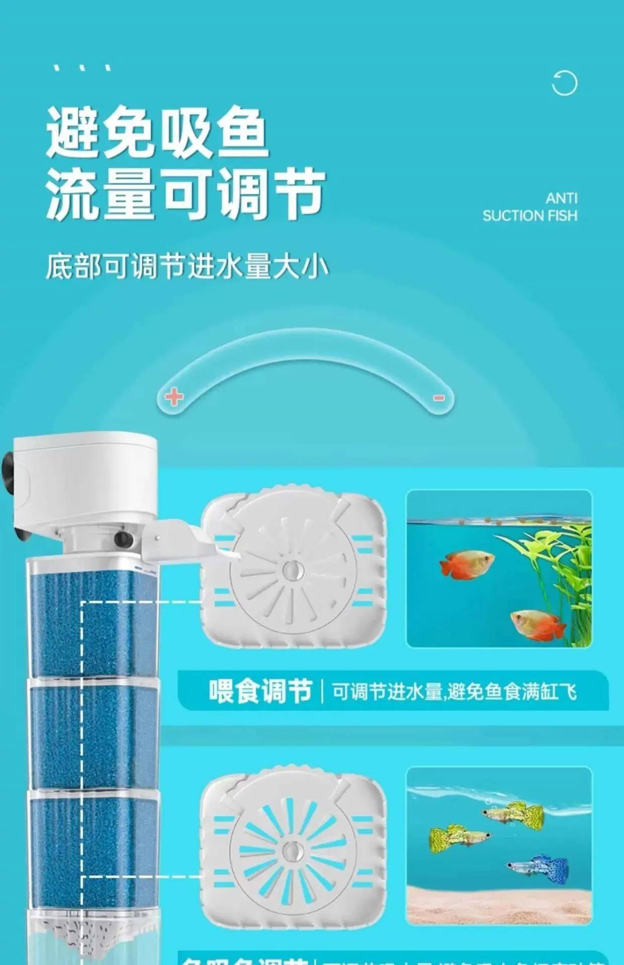 Fish Tank Filter Ultra-Quiet Oxygenation Integrated Three-In-One Water Purification Circulation Pump for Home Use, Small New Model for Fish Keeping and Waste Removal
