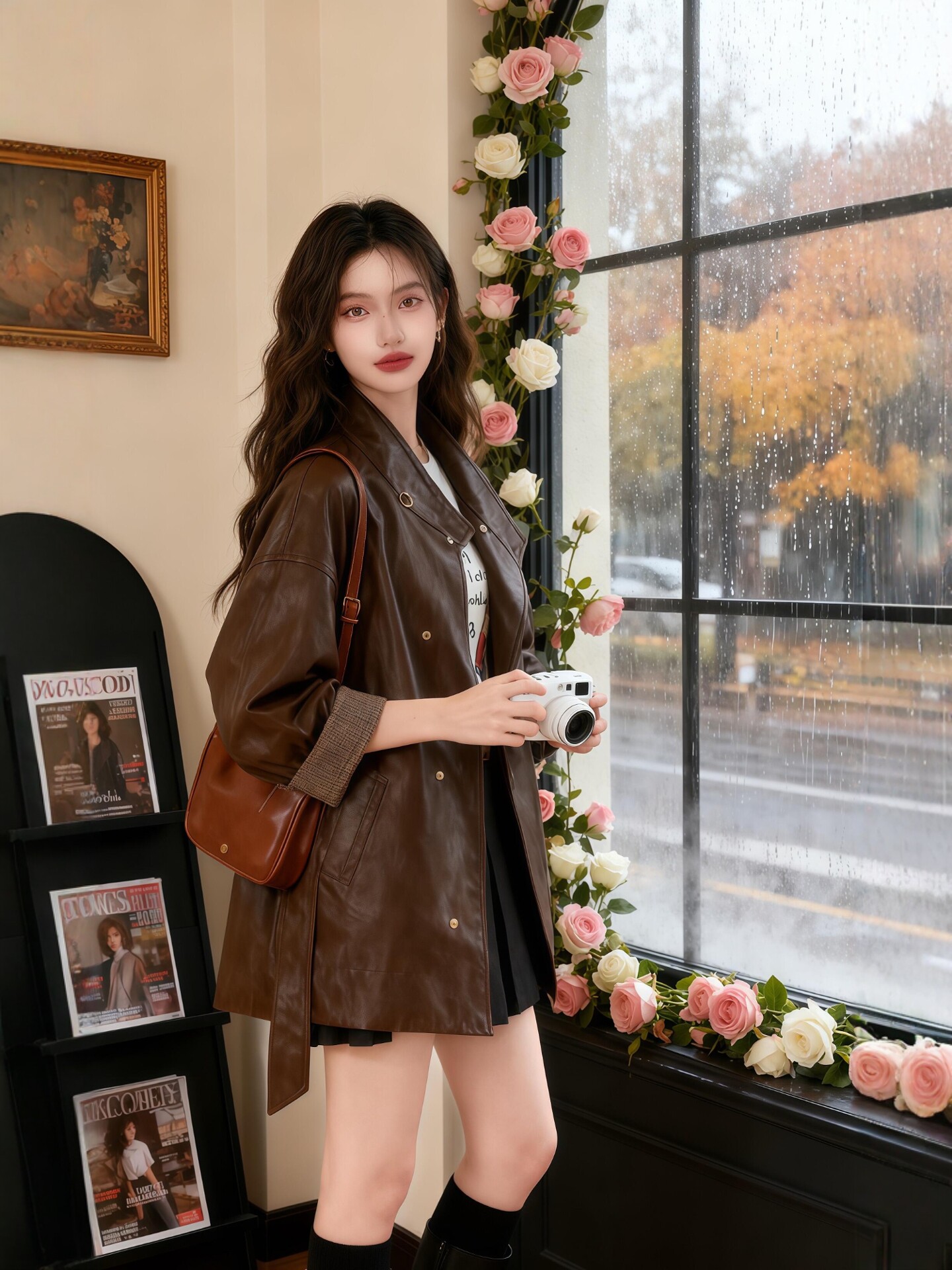 Hugely good-looking, unique and beautiful early winter leather jacket for women, new autumn and winter style, hot style, high-end, petty bourgeoisie, Korean style top