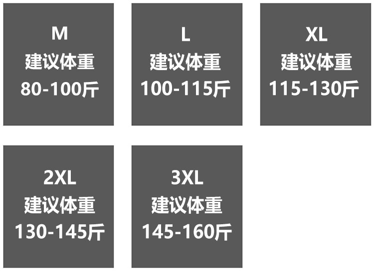 China (cm) 165 / 88-90 170 / 96-98 175 / 108-110 180 / 118-122 185 / 126-130