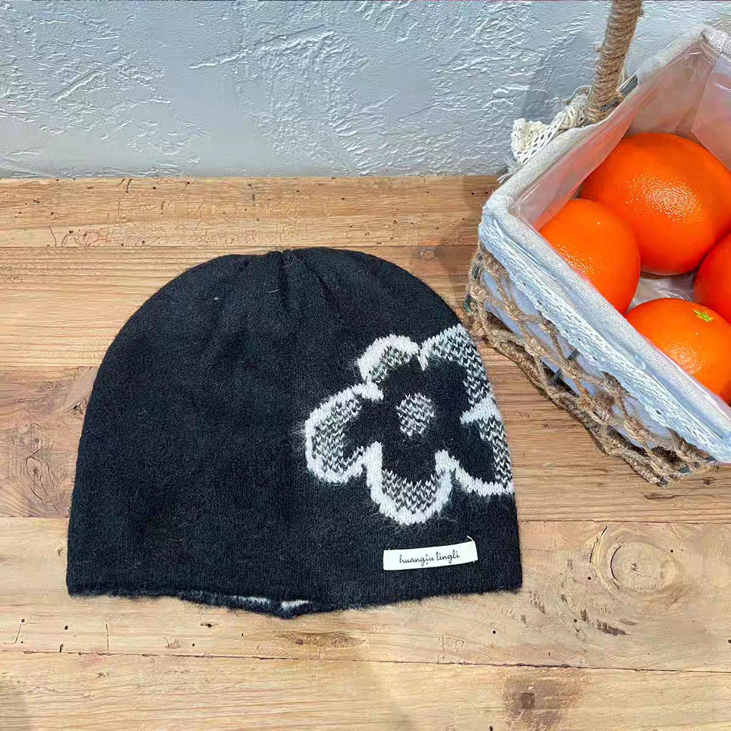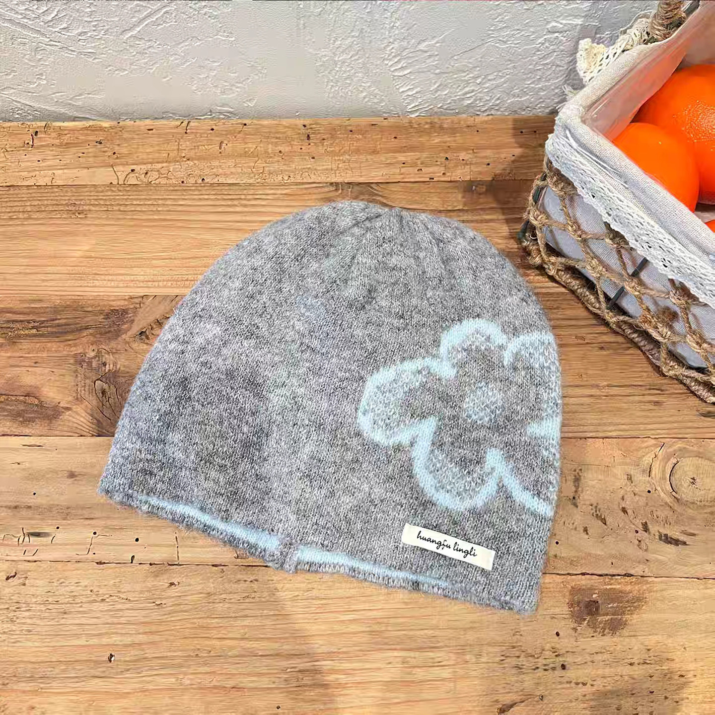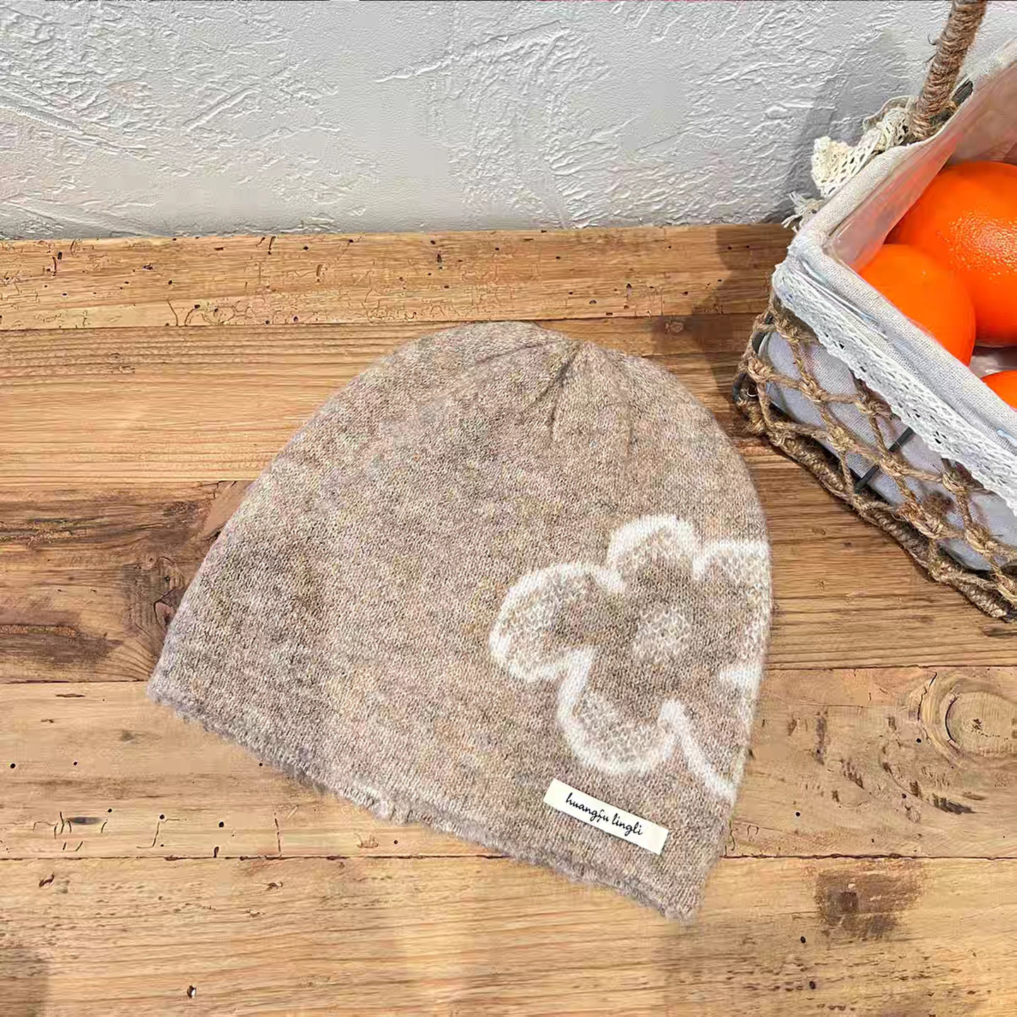 Korean-Style Retro Jacquard Knit Hat for Women, Autumn and Winter, Niche Versatile Warm Ear-Protecting Headwrap Hat, Face-Slimming Beanie