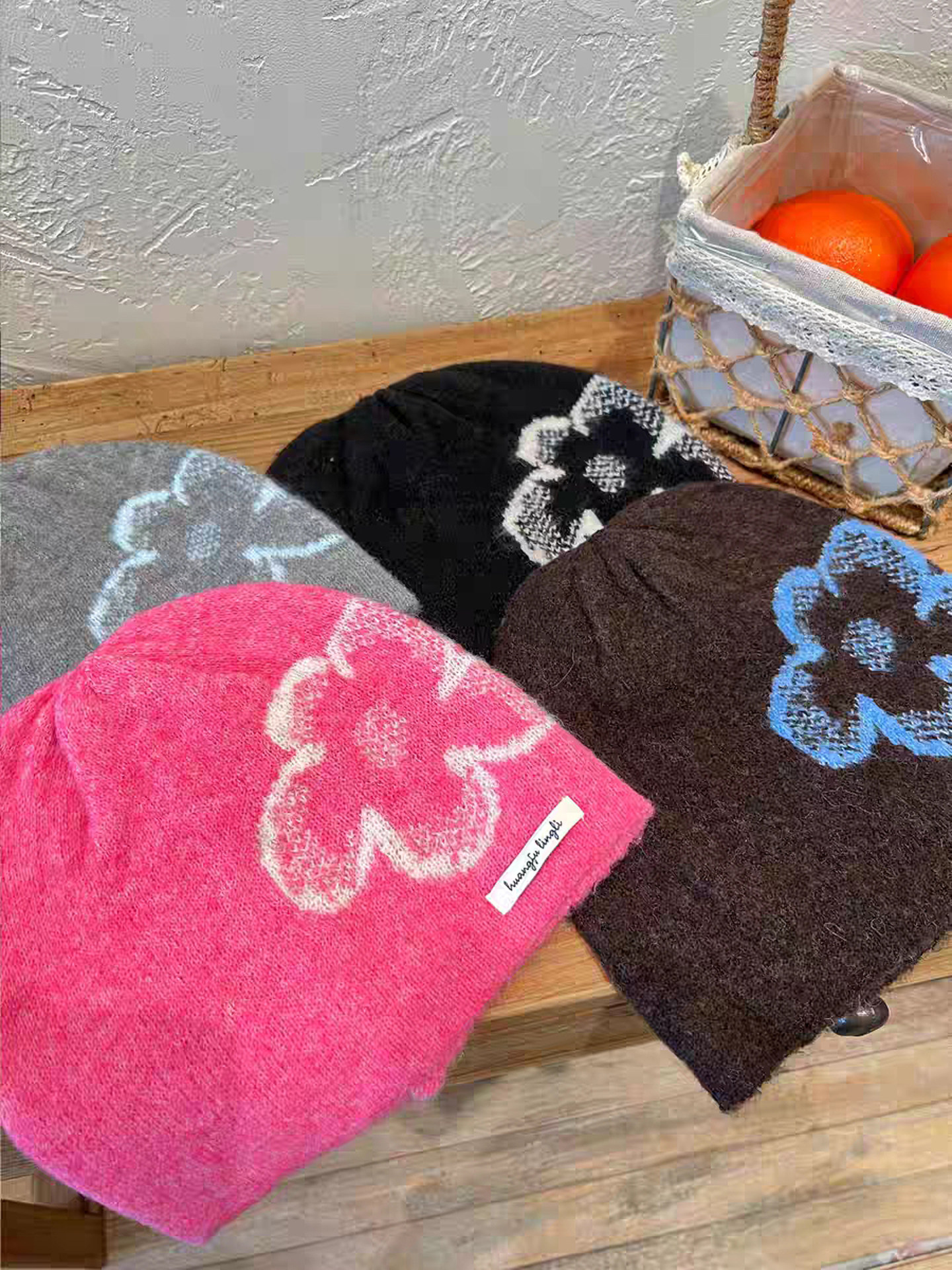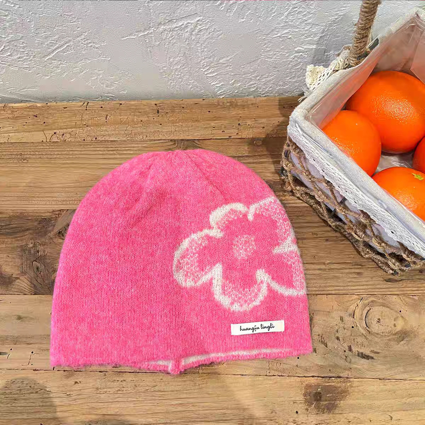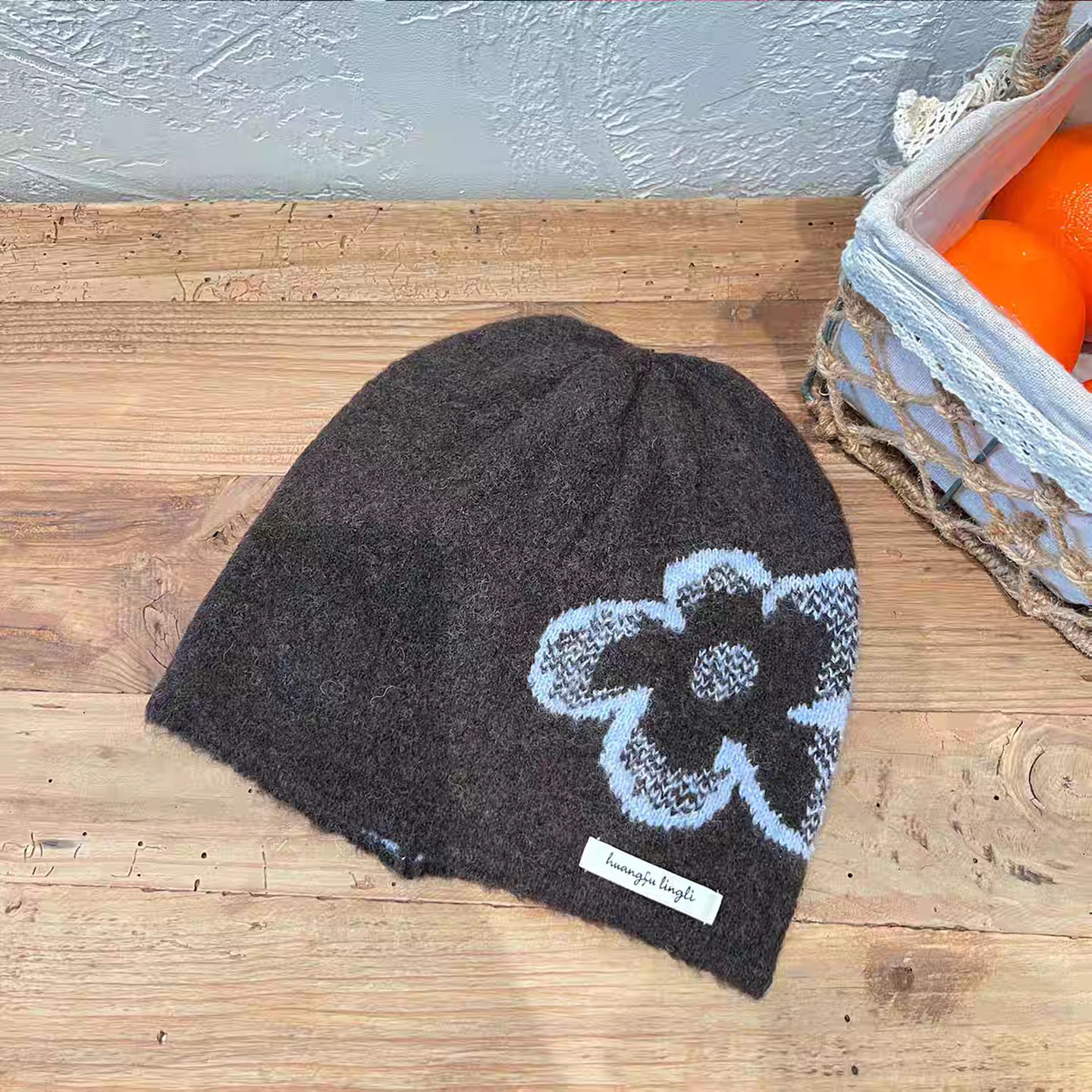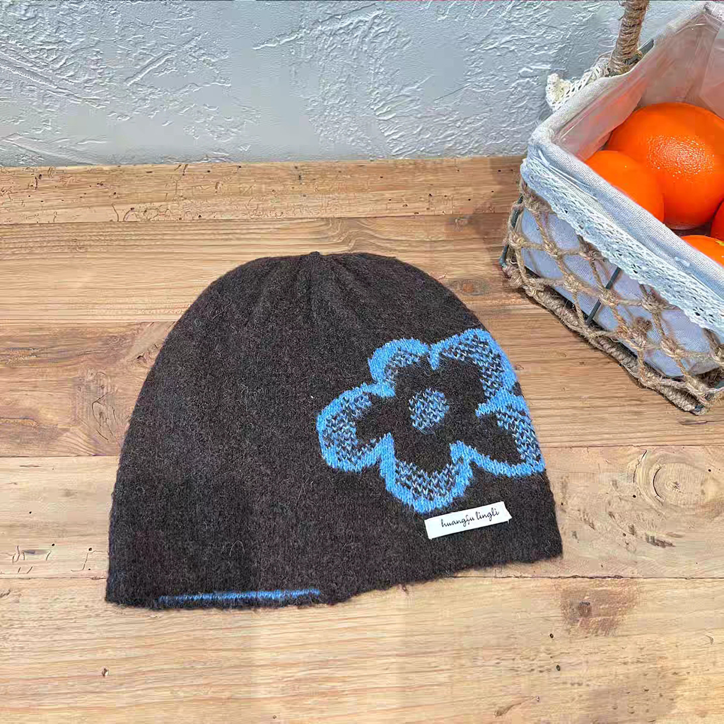 Korean-Style Retro Jacquard Knit Hat for Women, Autumn and Winter, Niche Versatile Warm Ear-Protecting Headwrap Hat, Face-Slimming Beanie