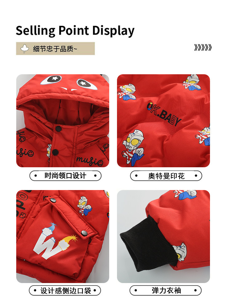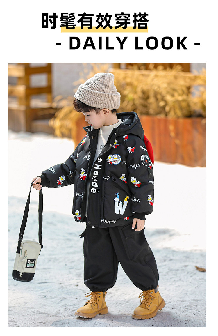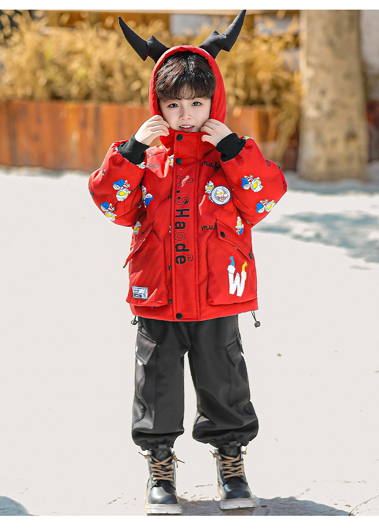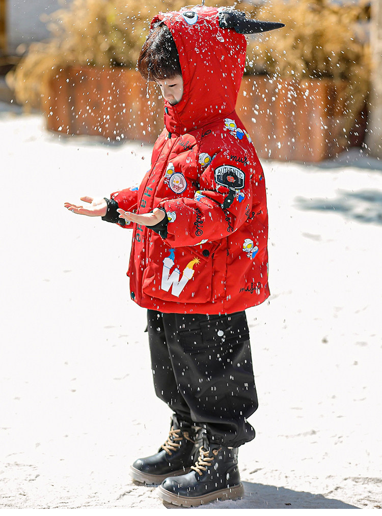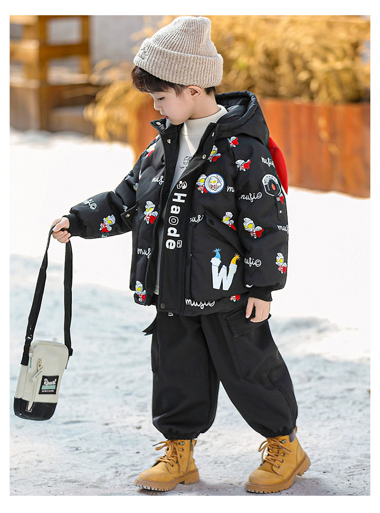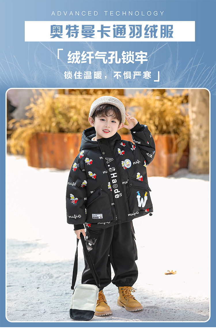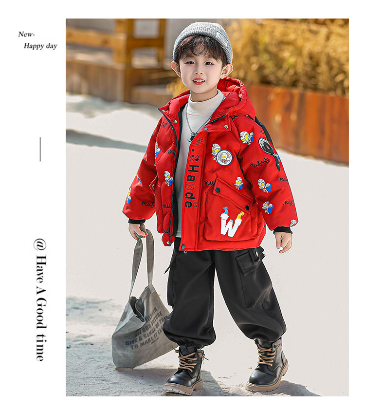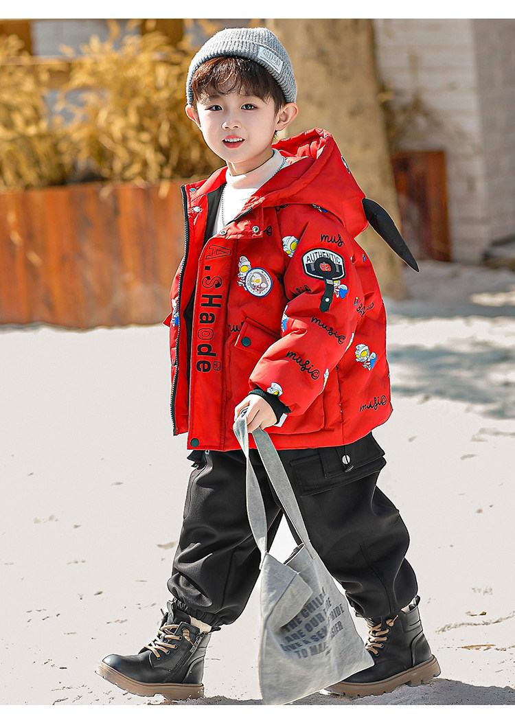 Children's down Jacket for Boys, Winter Thickened Cartoon Hooded 90% White Duck down Warm Coat, 25 New Models for New Year Celebrations