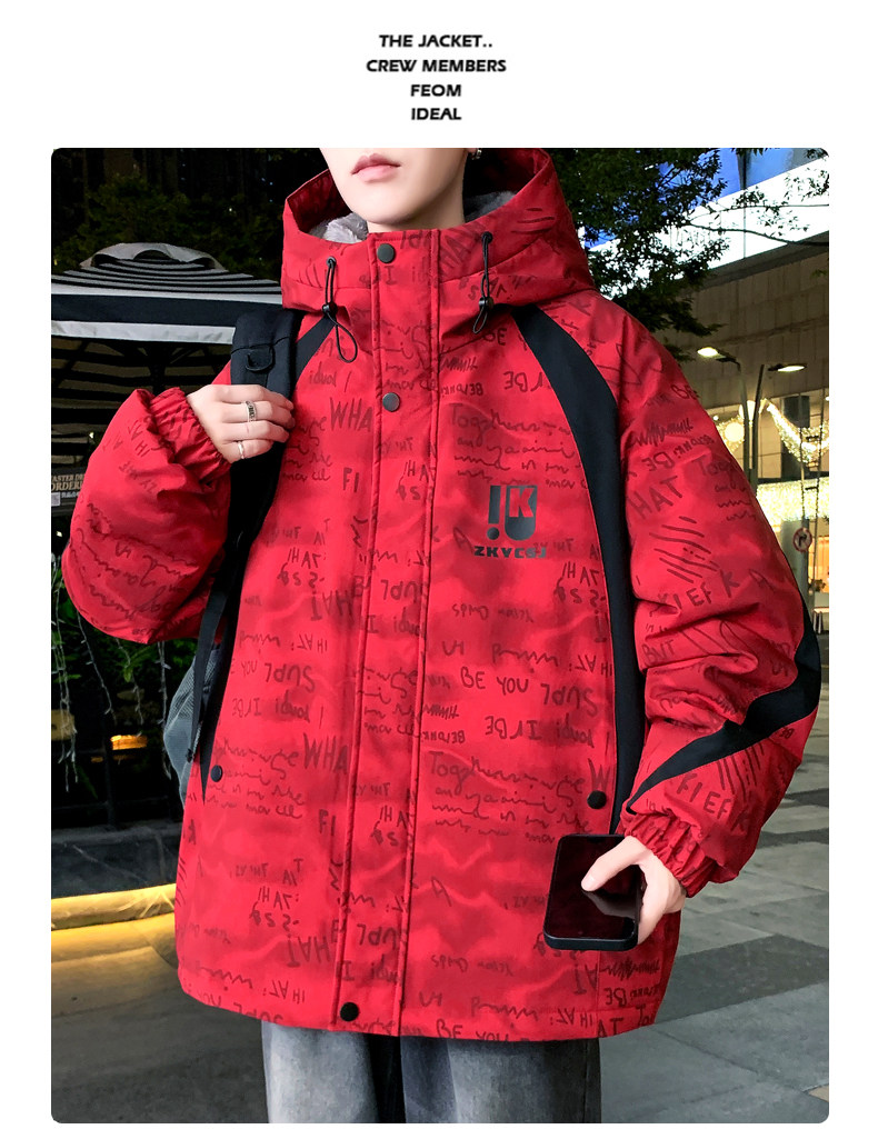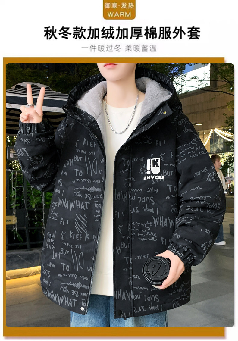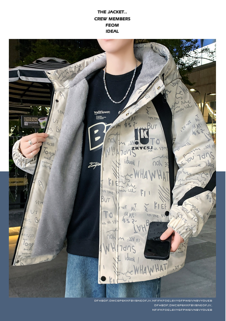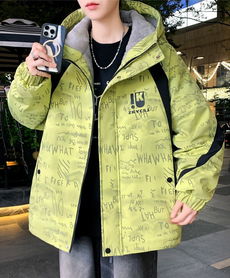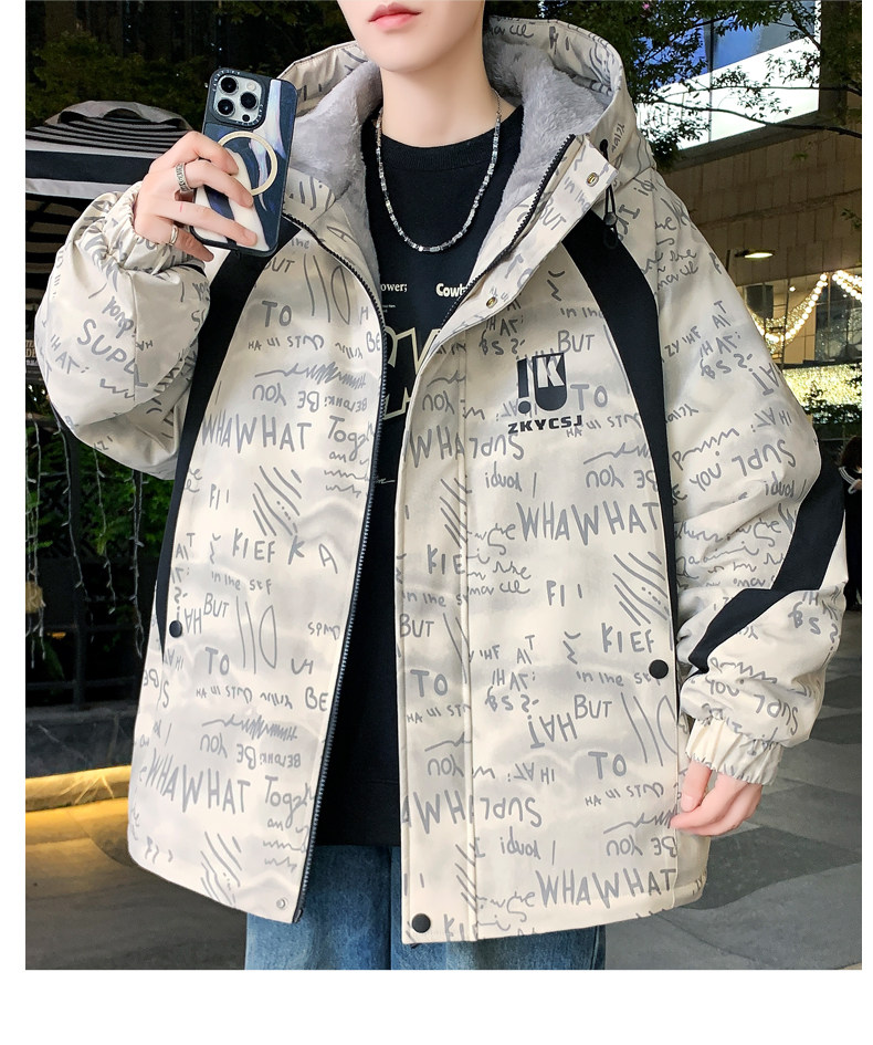 Winter Fleece-Lined Thickened Jacket for Teenagers and Men, Stylish Hooded Coat, Fashionable and Versatile Warm Parka