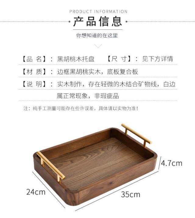North American black walnut tea tray solid wood tray rectangular wooden tray coffee simple wooden dinner tray hotel home use