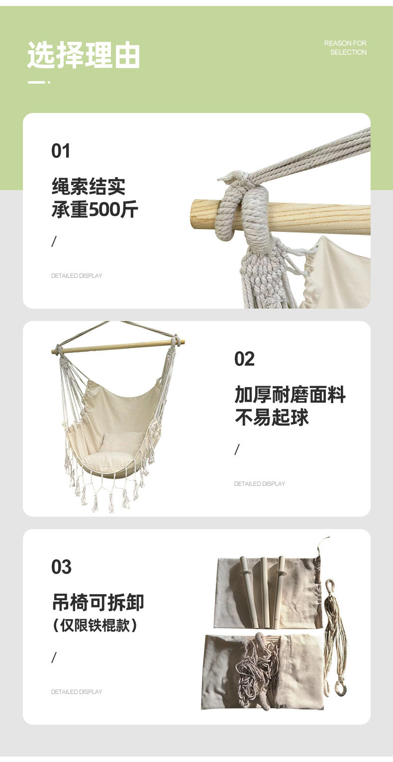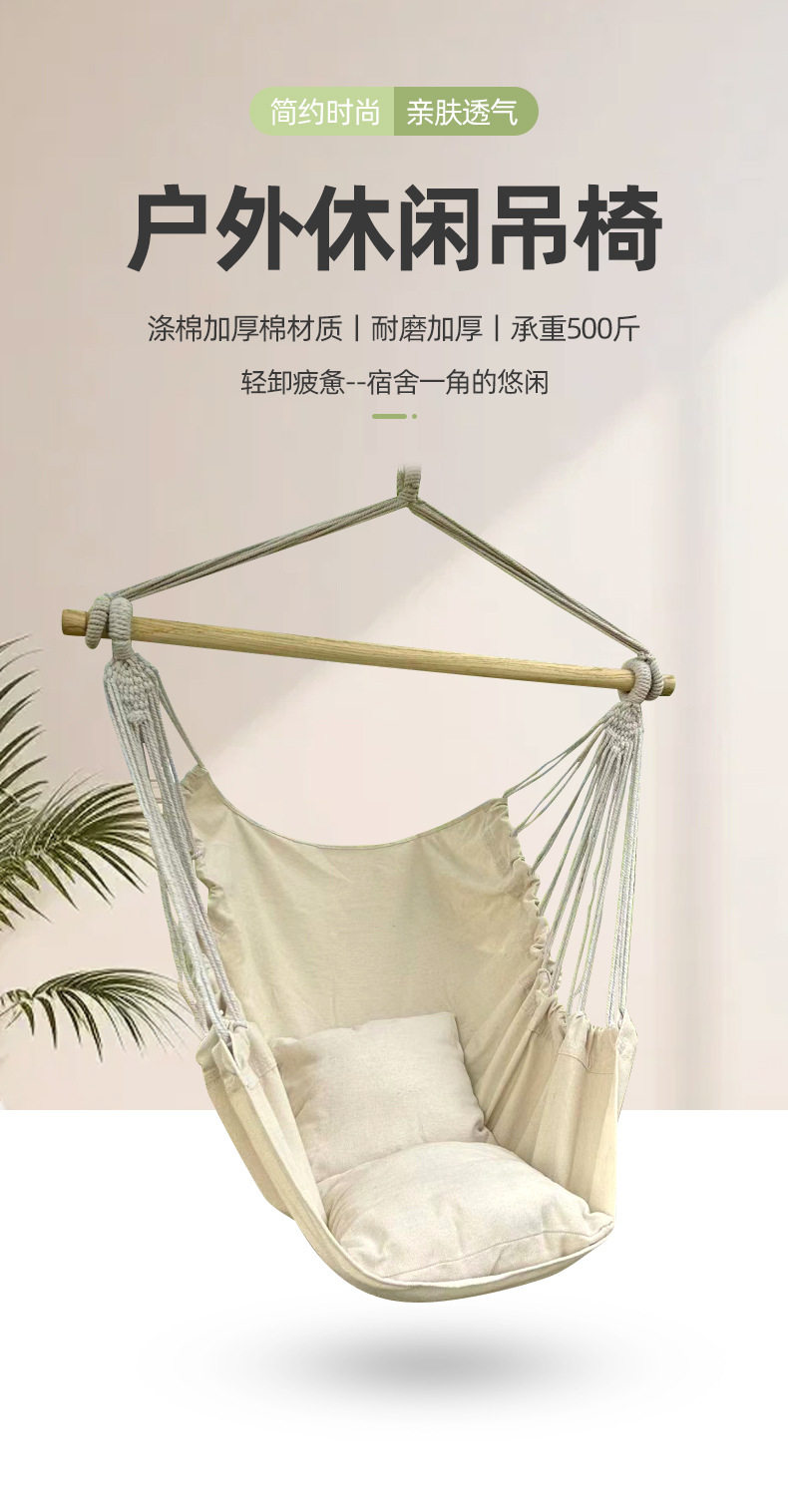 Reclining Patio Hammock under the Eaves, Outdoor Swing Hanging Basket, Foldable Student Dormitory Hanging Chair, Single Person Lazy Leisure Chair