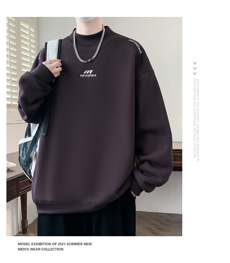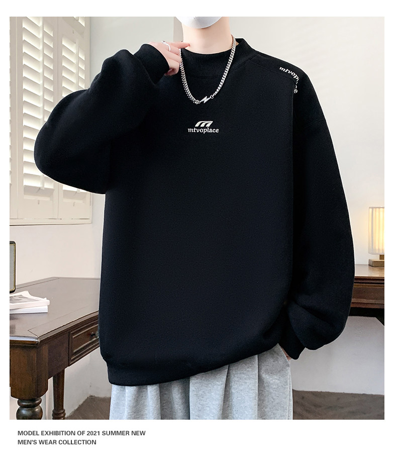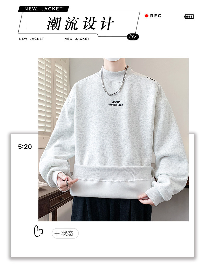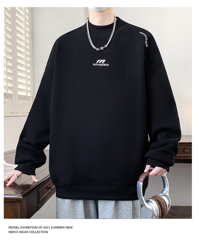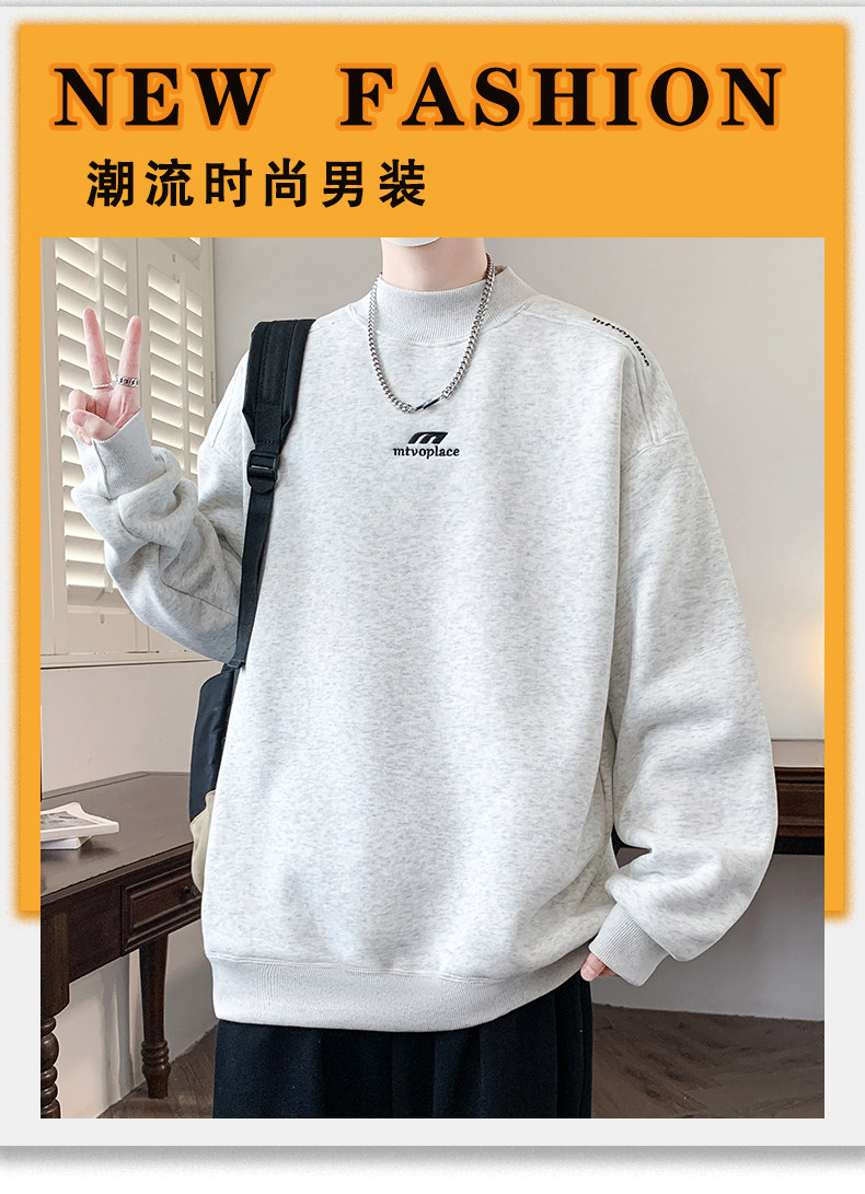American casual deconstructed half turtleneck sweatshirt for men in autumn and winter, velvet thickened top with bottoming shirt, trendy brand long sleeves