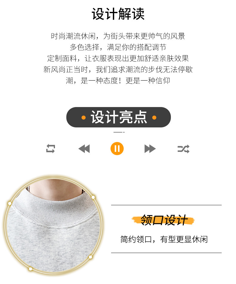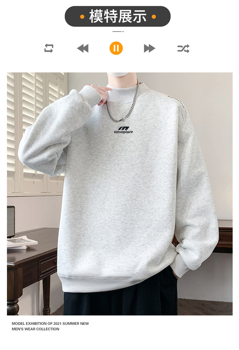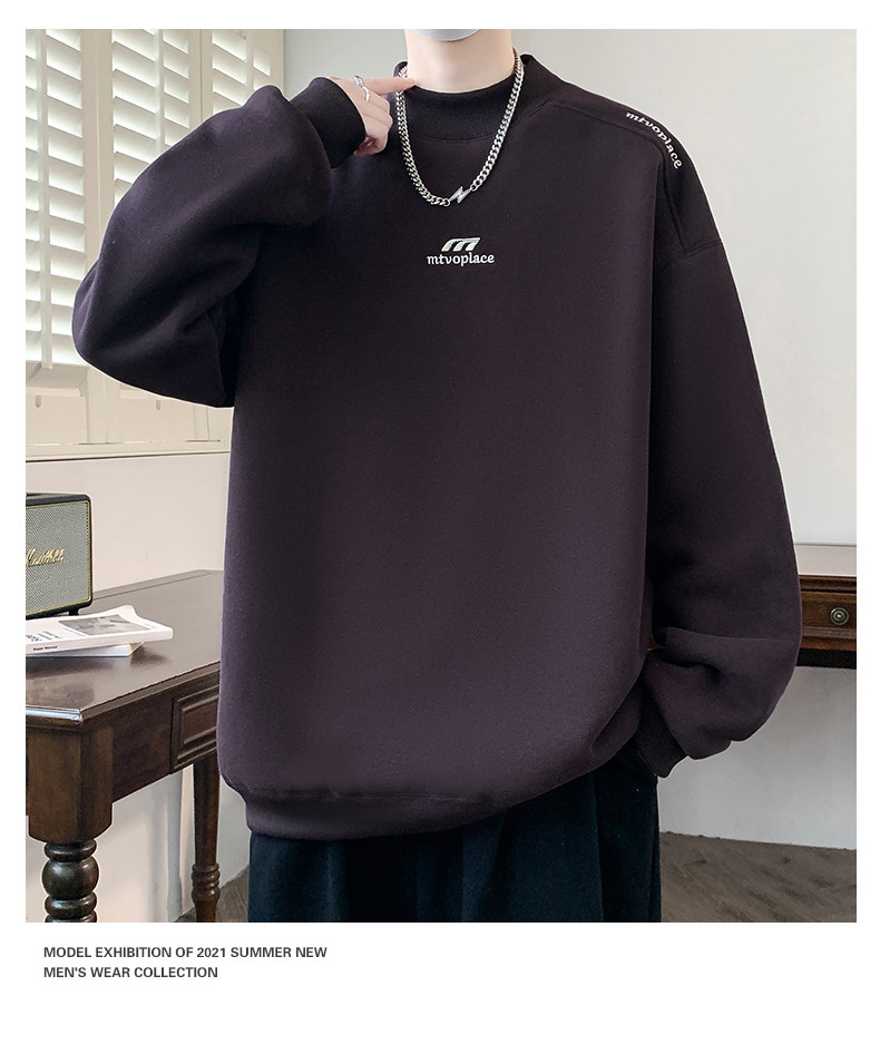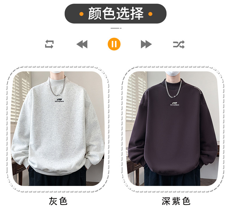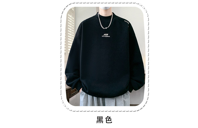 American casual deconstructed half turtleneck sweatshirt for men in autumn and winter, velvet thickened top with bottoming shirt, trendy brand long sleeves
