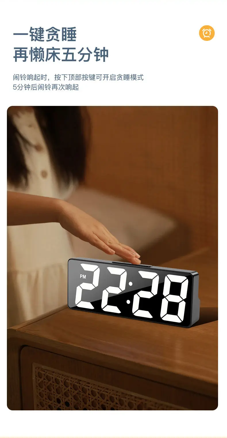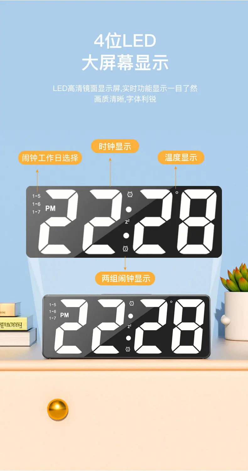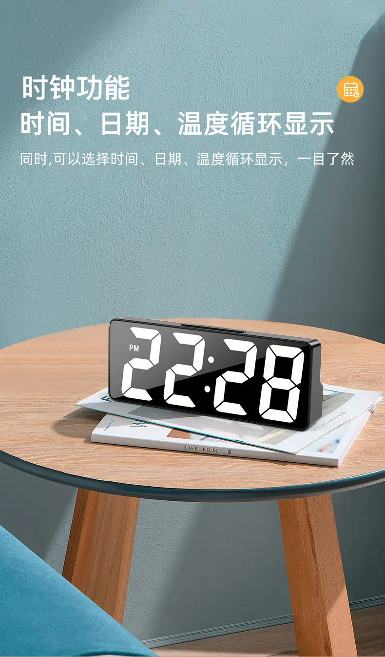 Simple Large Digital Electronic Clock for Living Room Tv Cabinet, Luminous Silent Led Alarm Clock with Perpetual Calendar and Temperature