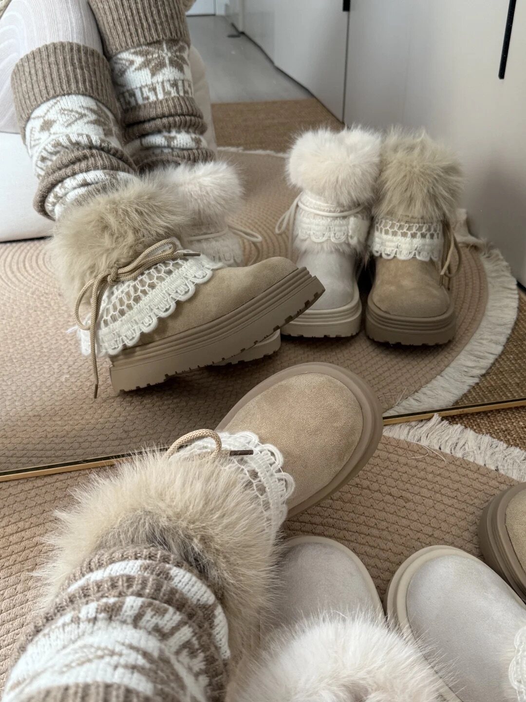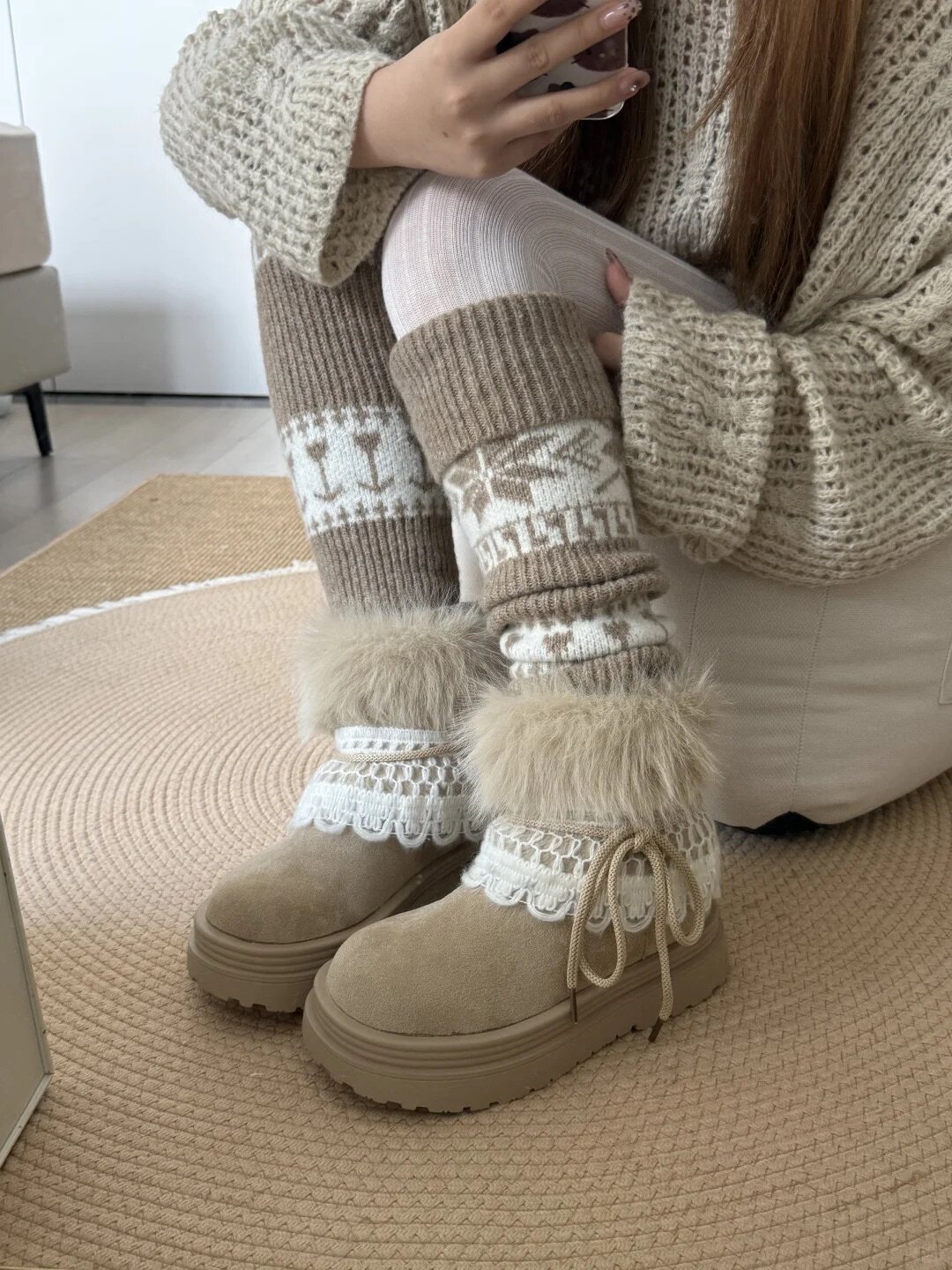 Sock Covers for Women's Snow Boots, Autumn and Winter Khaki Fair Isle Slouch Socks, Warm and Thick Retro Calf Warmers