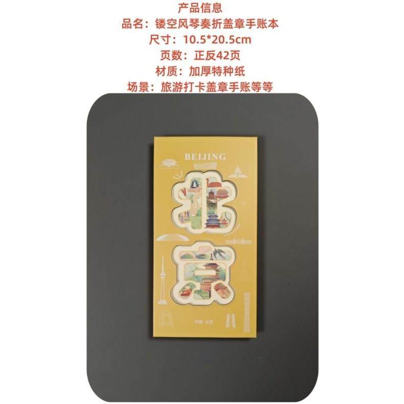 Beijing Forbidden City Tianjin Stamp Book Hollow-Out Document Notebook Foldable Page Attraction Check-In Book Travel Check-In Collection Manufacturer