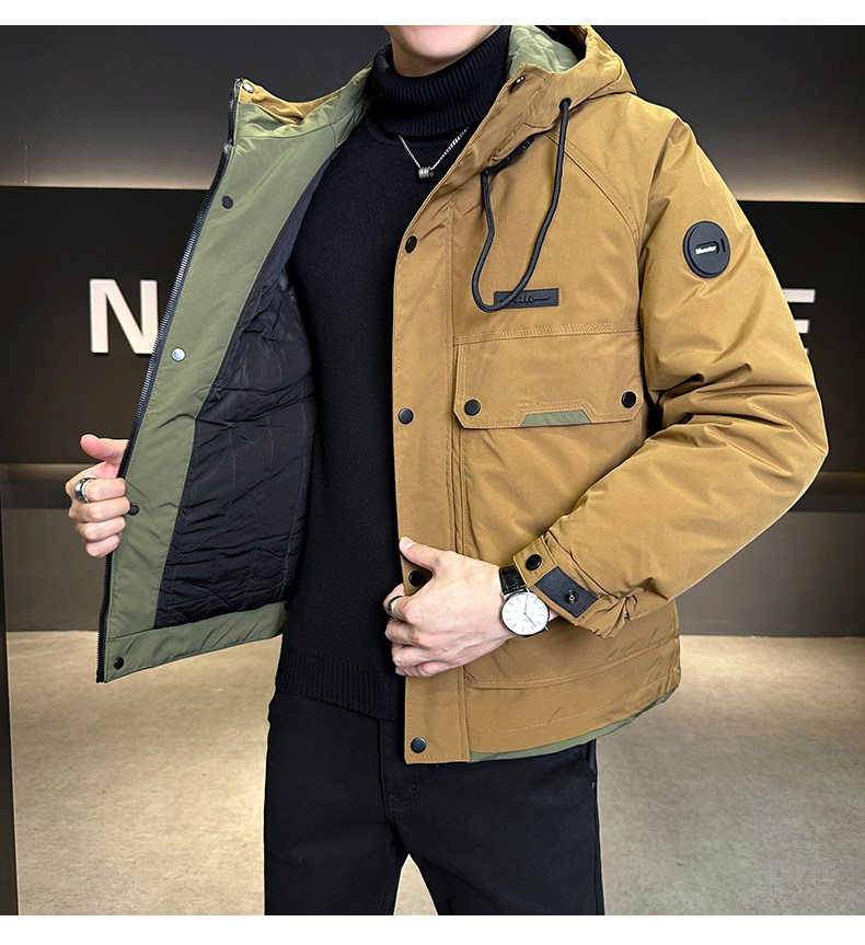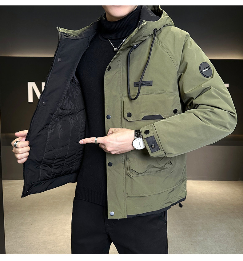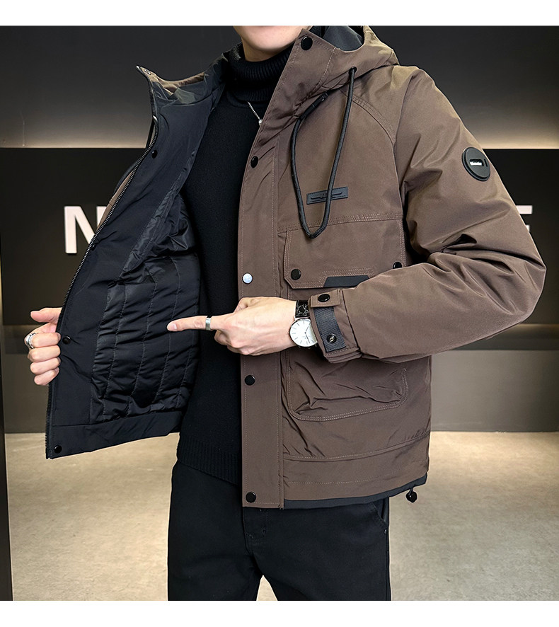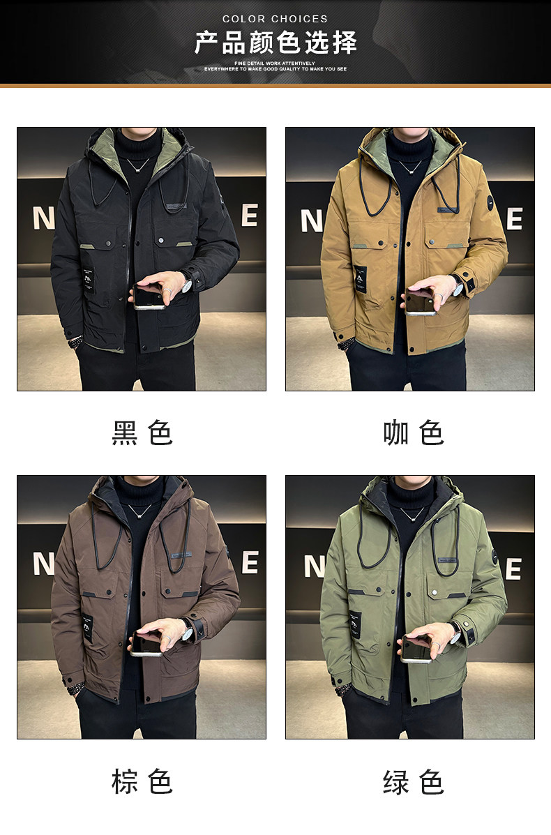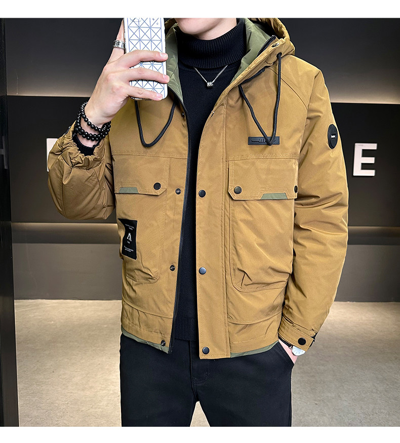 Hooded Cotton Youth Jacket Winter Men's Casual High-End Trendy Thickened Workwear Cotton Fashion Coat