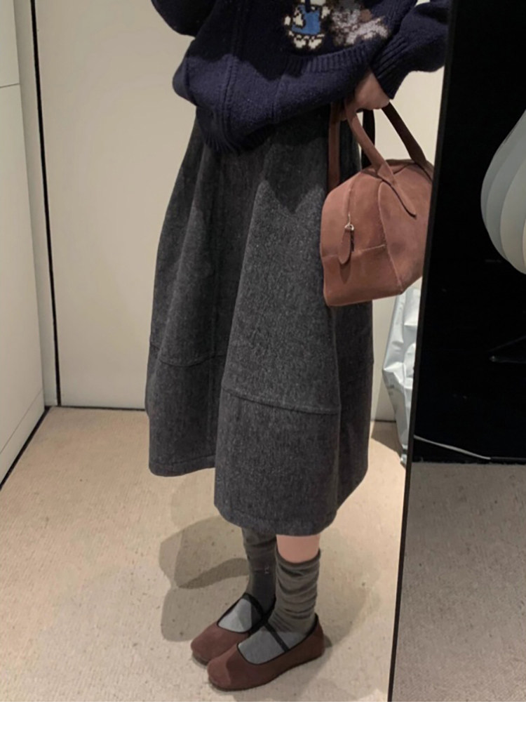 Dark Gray Woolen A-Line Skirt for Pear-Shaped Body, Hip-Covering Mid-Length Skirt for Women, Autumn and Winter Miu Style Retro Loose Skirt