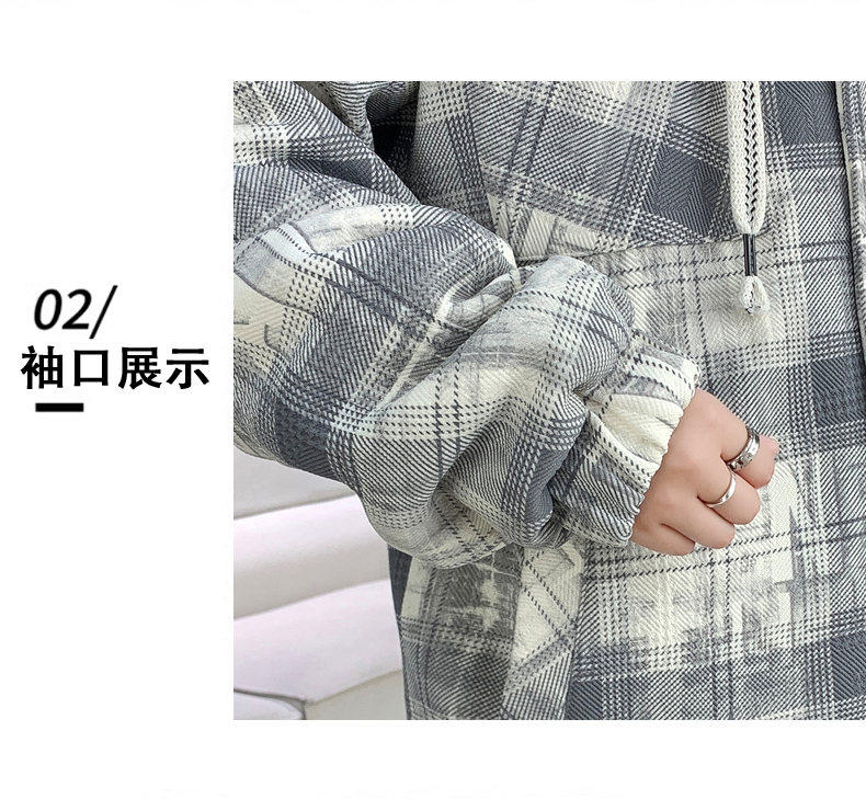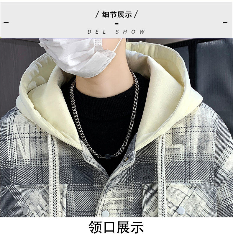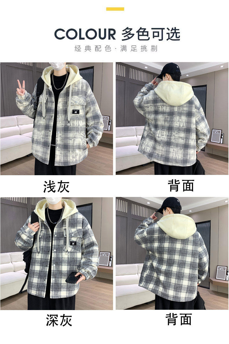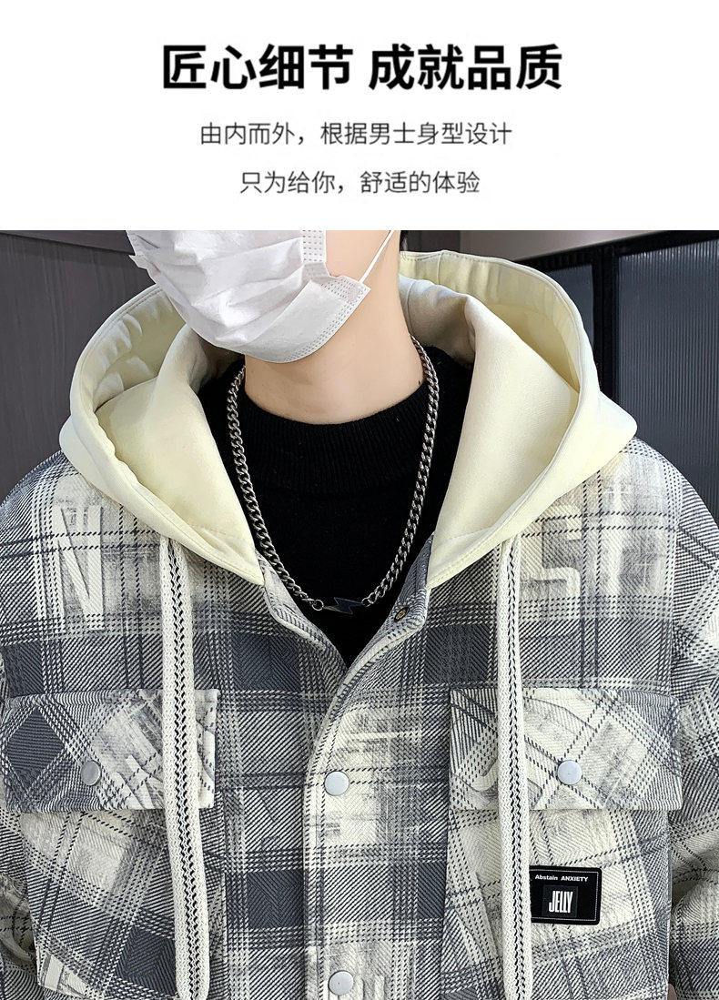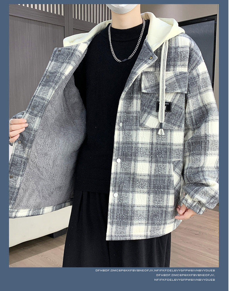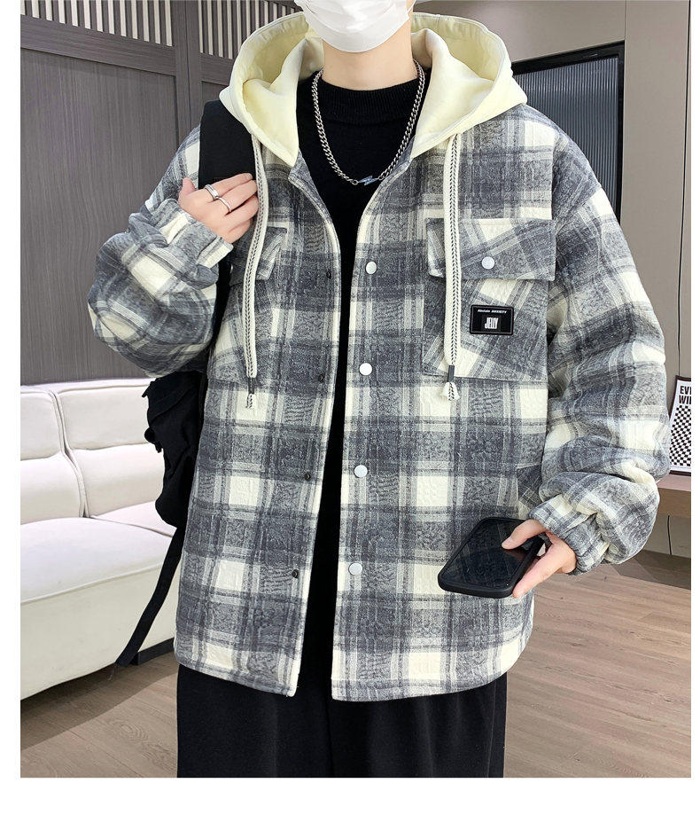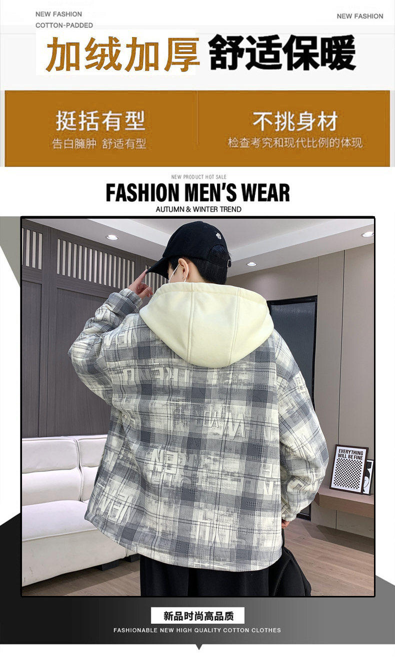 Woodpecker Design Plaid Jacket Autumn and Winter New Style Fleece-Lined Thick Stylish Jacket for Boys and Teenagers Warm Cotton Coat