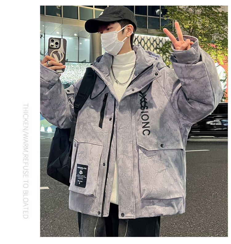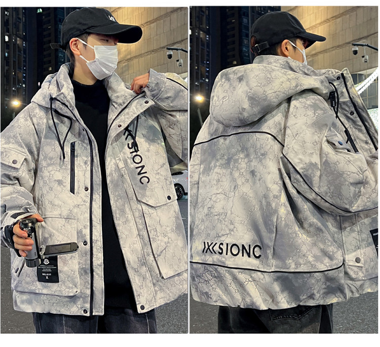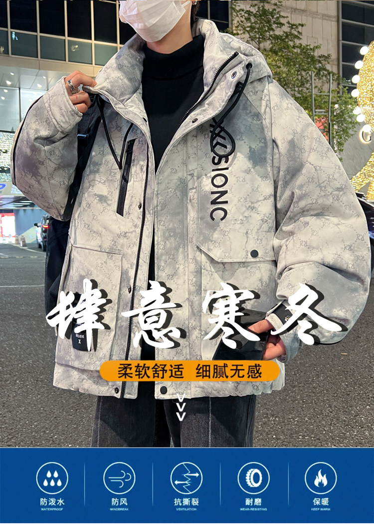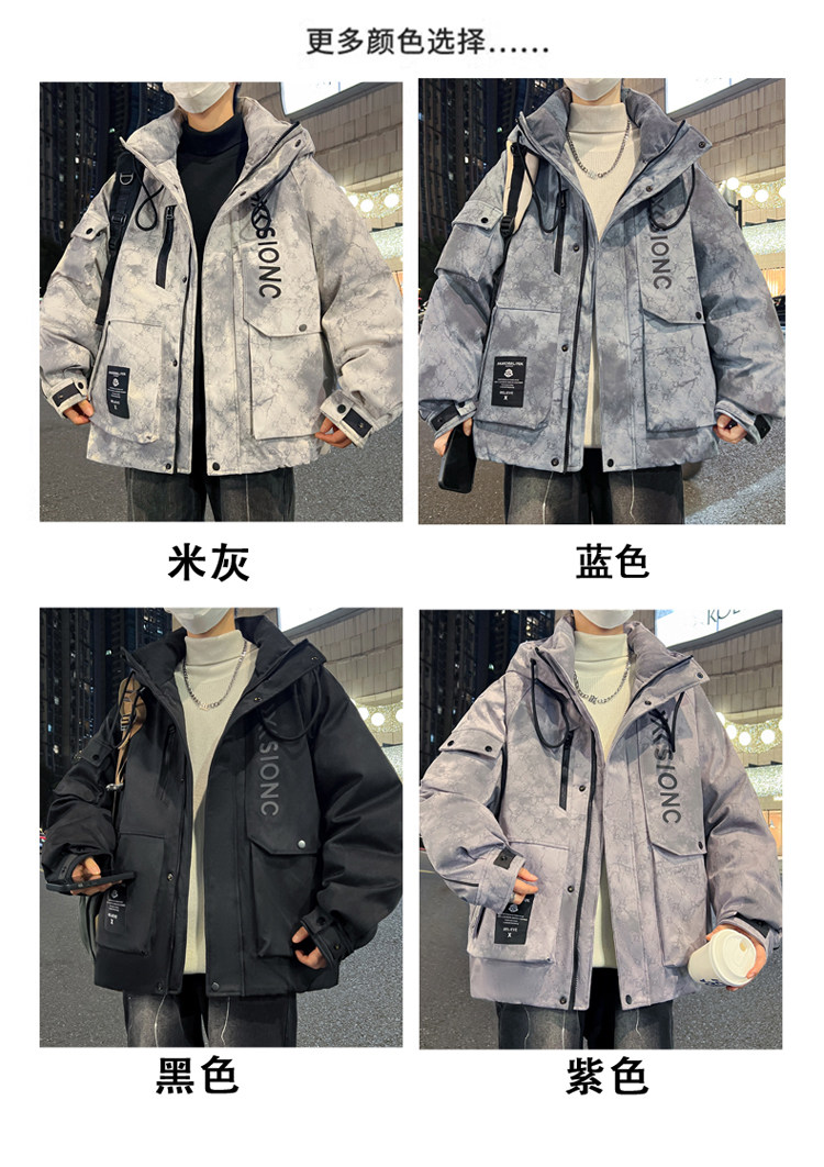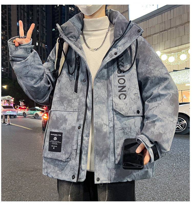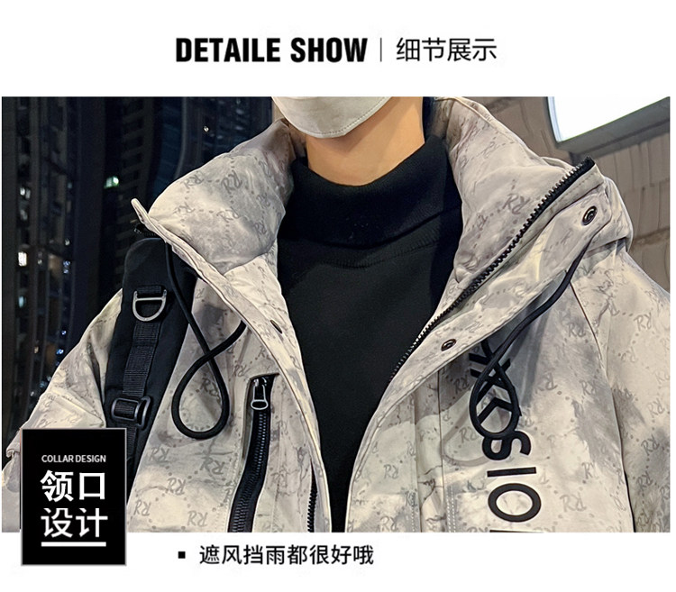 Winter youth white duck down jacket male junior high school and high school student thickened work jacket handsome older children winter clothing