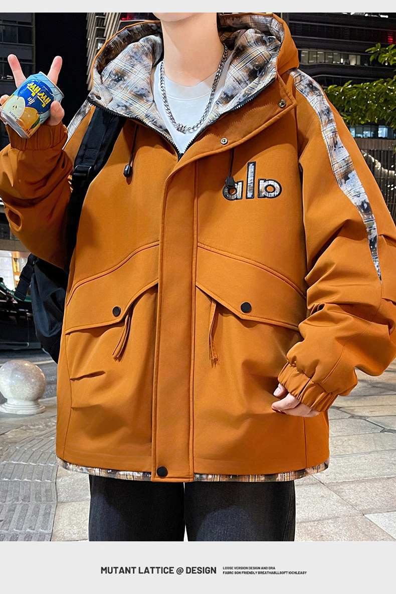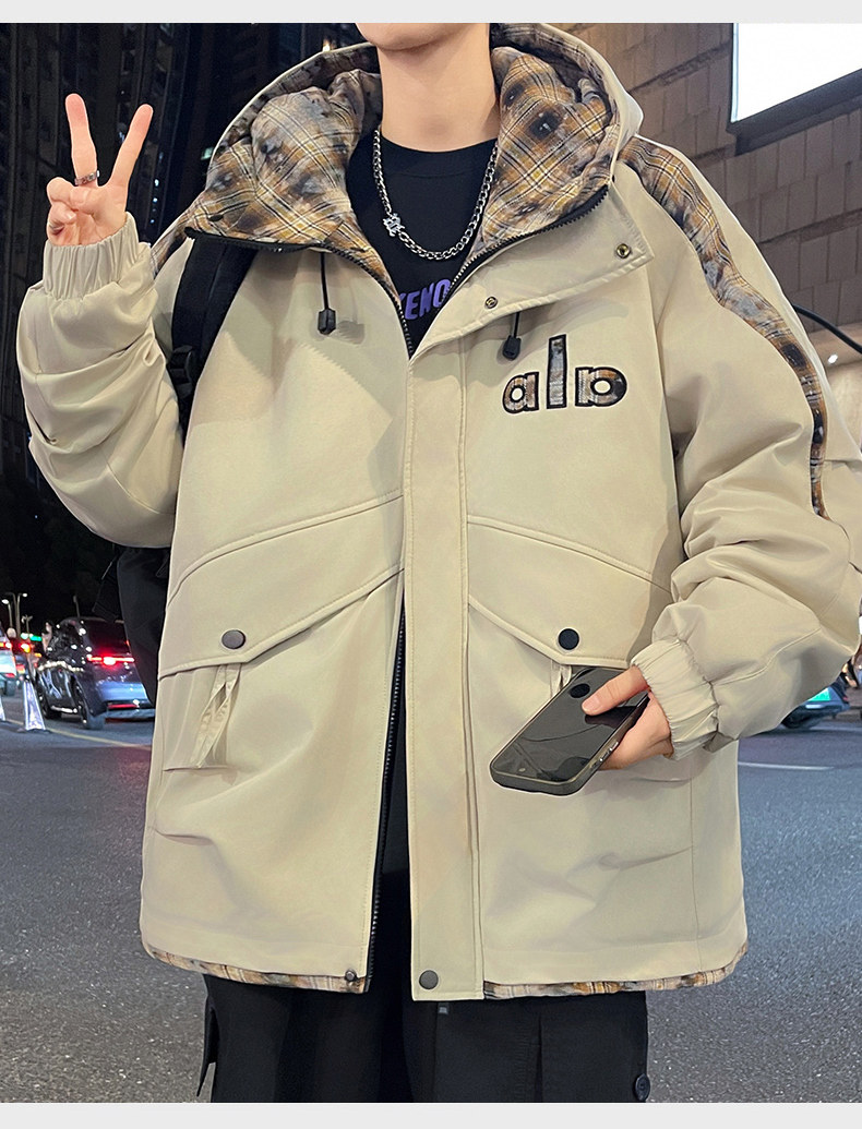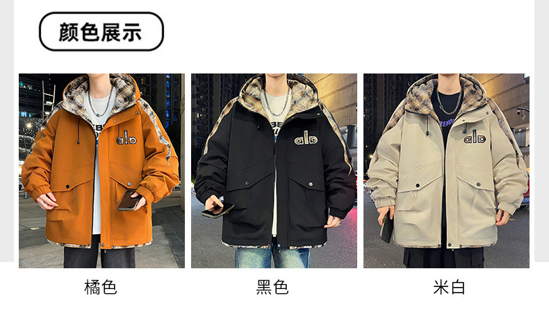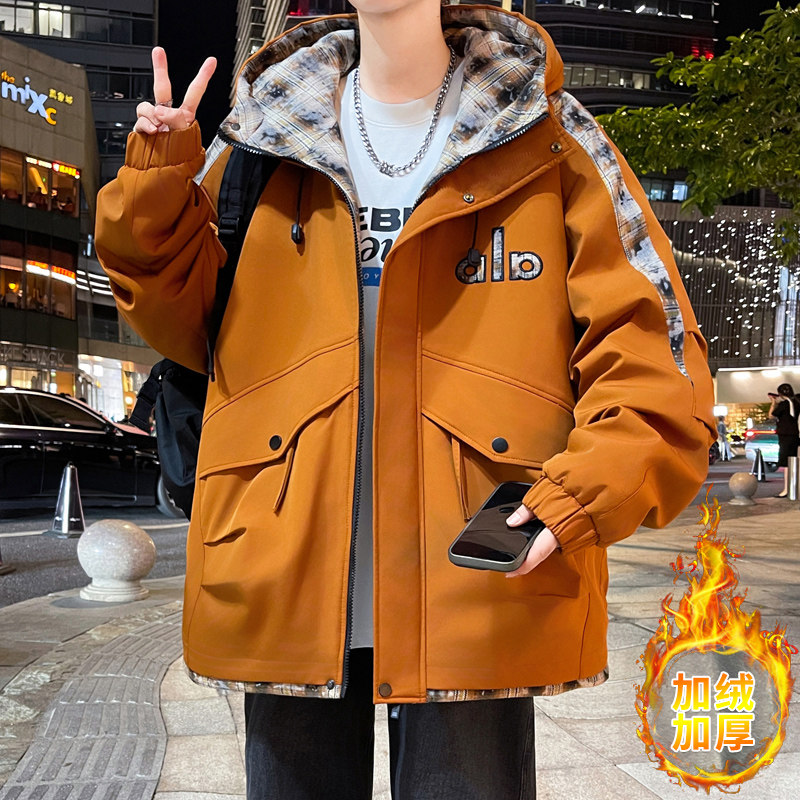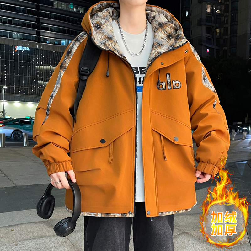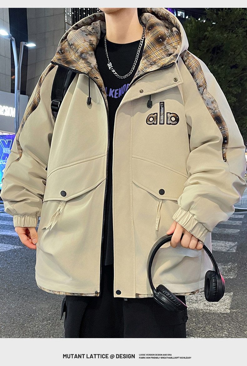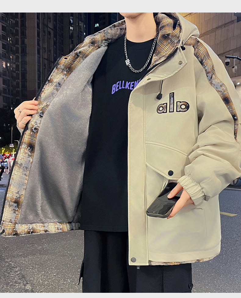 Winter Hooded Parka Cotton Jacket for Men, Workwear Style, Fleece-Lined, Thickened, Warm Cotton Coat, Casual Outdoor Jacket, Trendy Cotton Outerwear