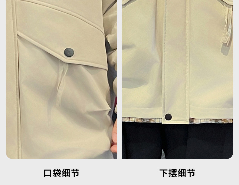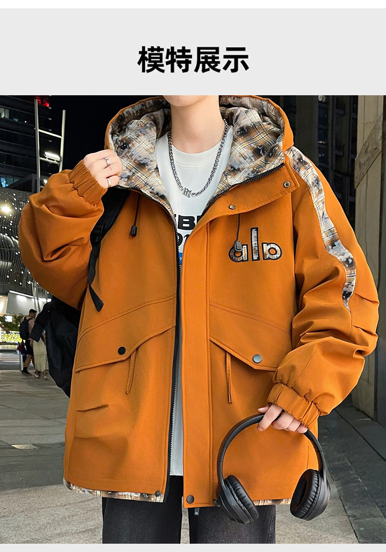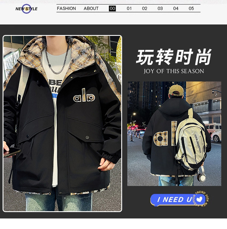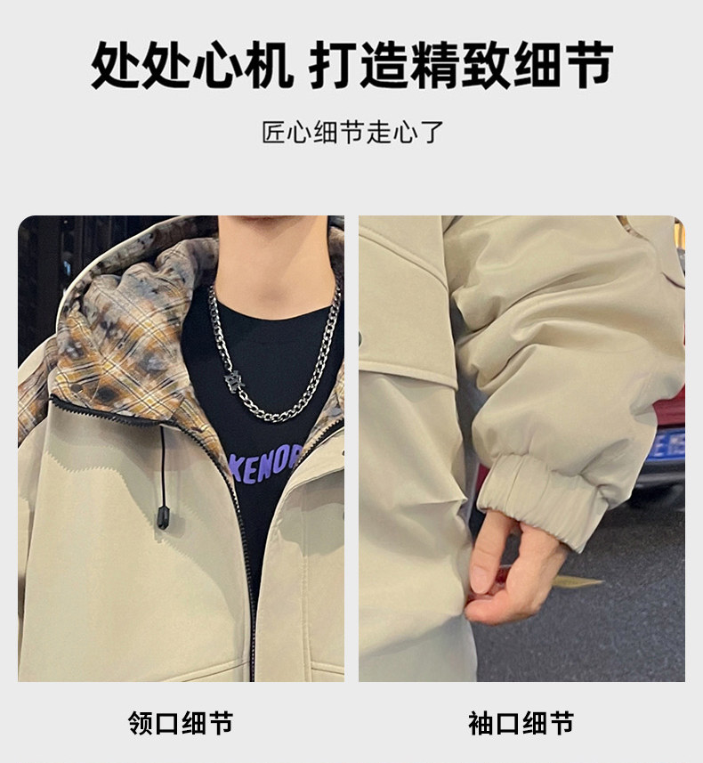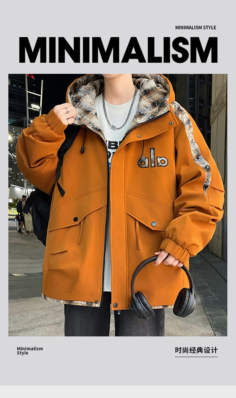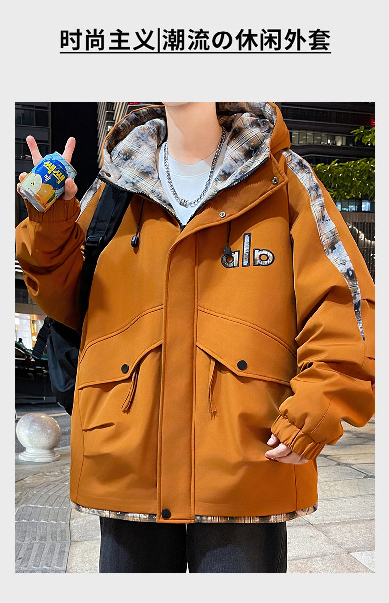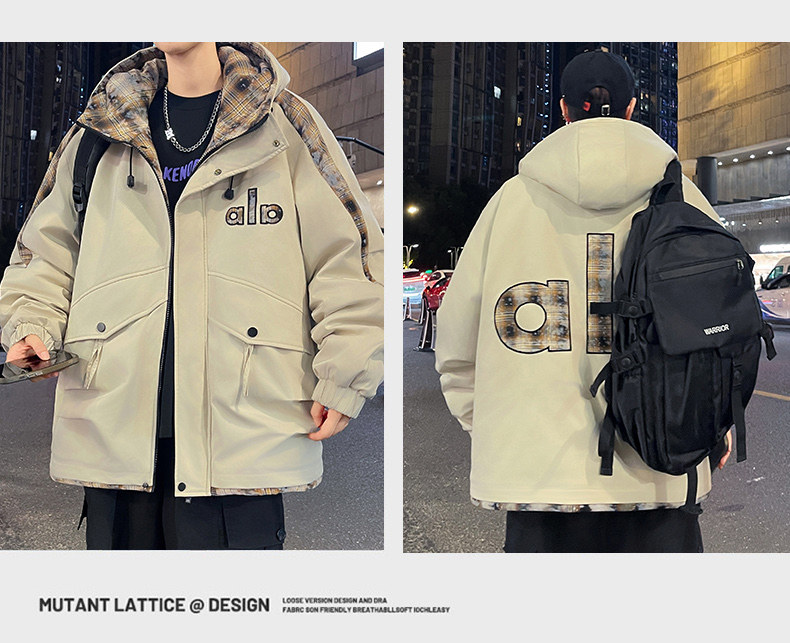 Winter Hooded Parka Cotton Jacket for Men, Workwear Style, Fleece-Lined, Thickened, Warm Cotton Coat, Casual Outdoor Jacket, Trendy Cotton Outerwear
