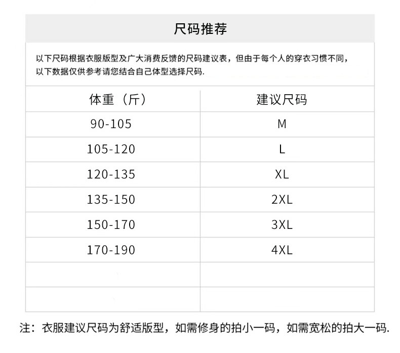 China (cm) 165 / 88-90 170 / 96-98 175 / 108-110 180 / 118-122 185 / 126-130