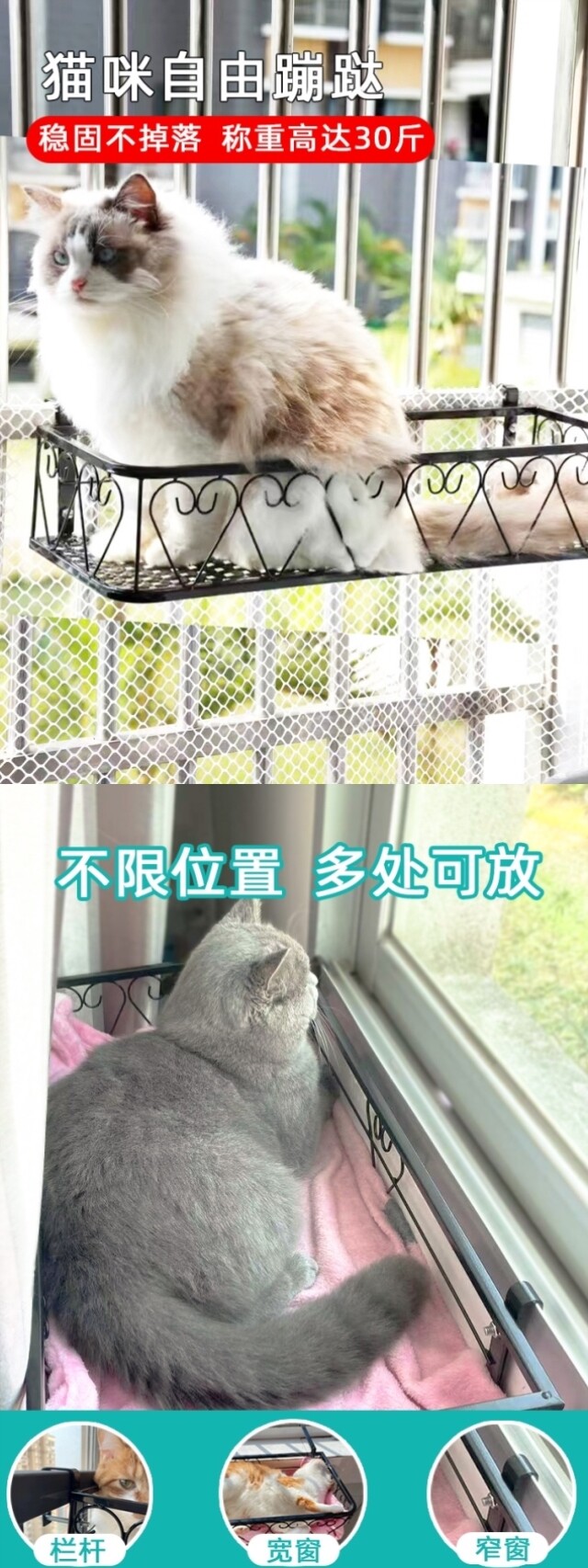 Cat hammock cat rack window glass balcony aerial hanging iron hanging nest sunbathing artifact cat supplies
