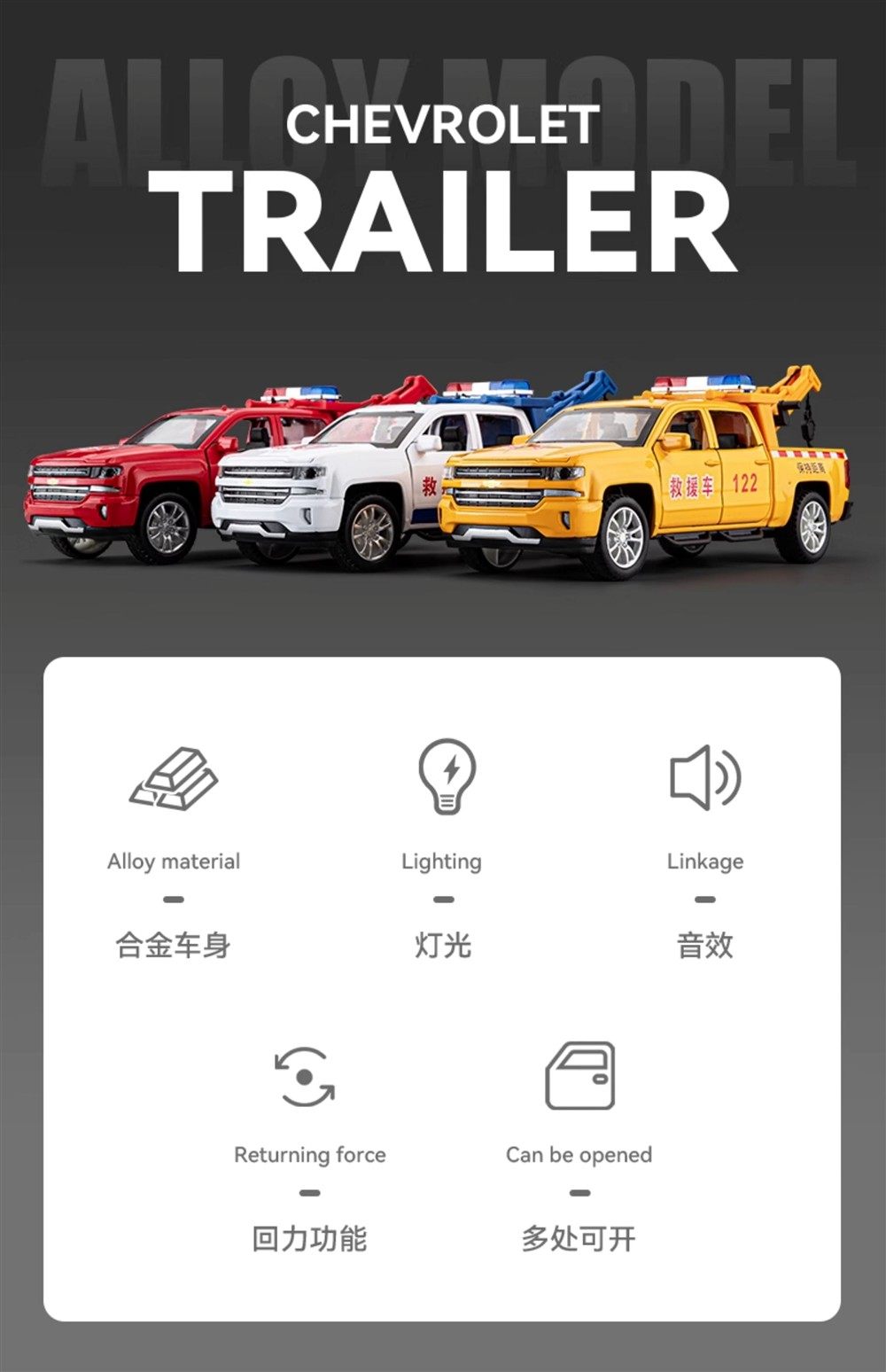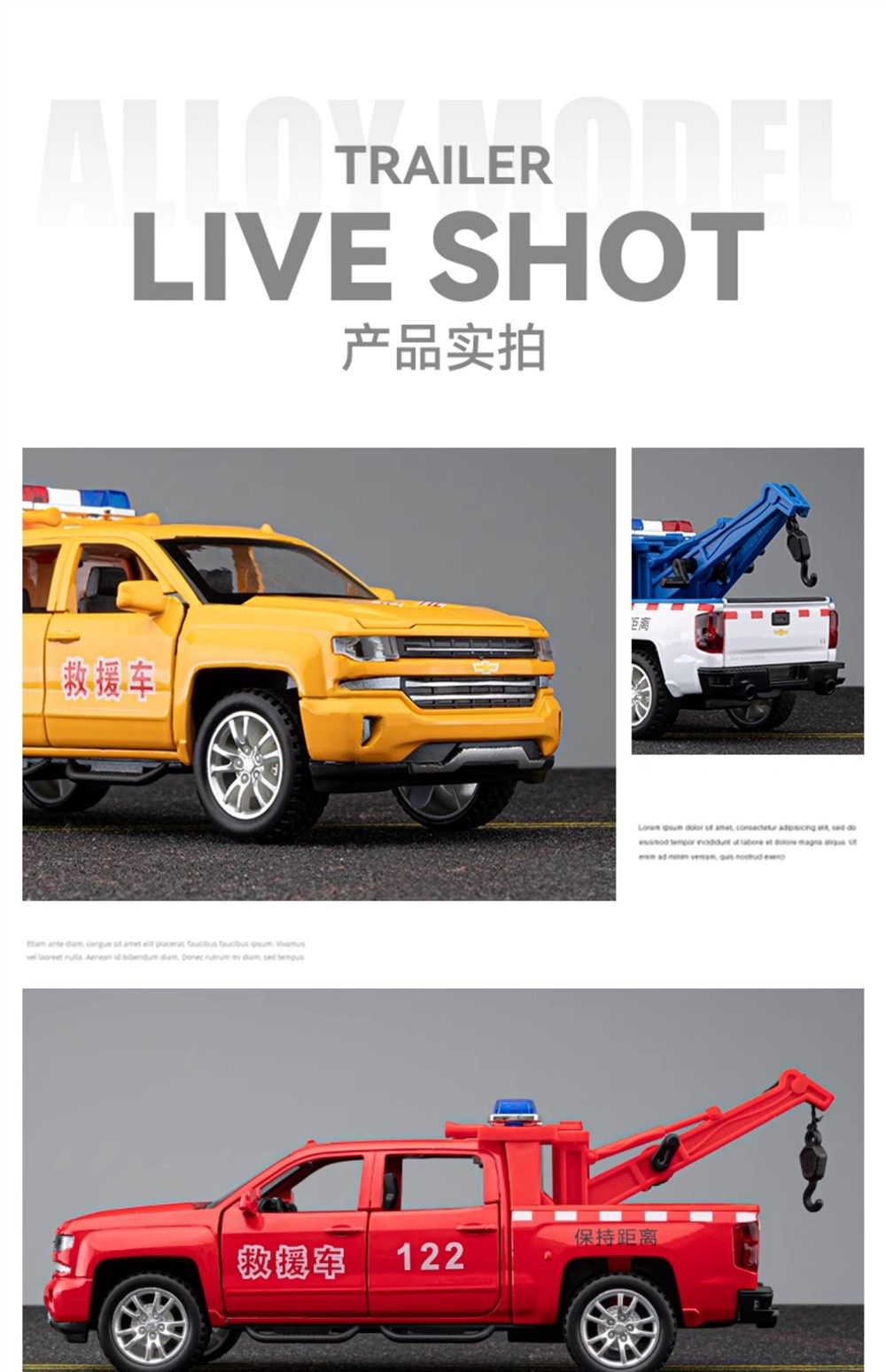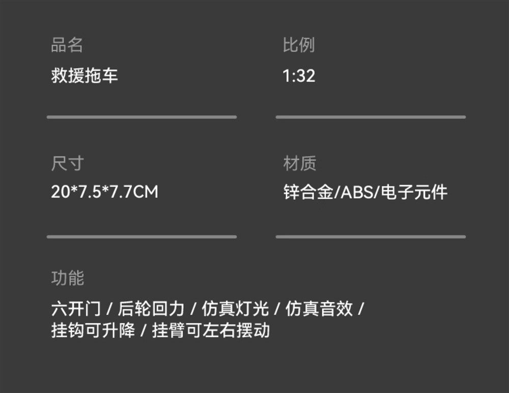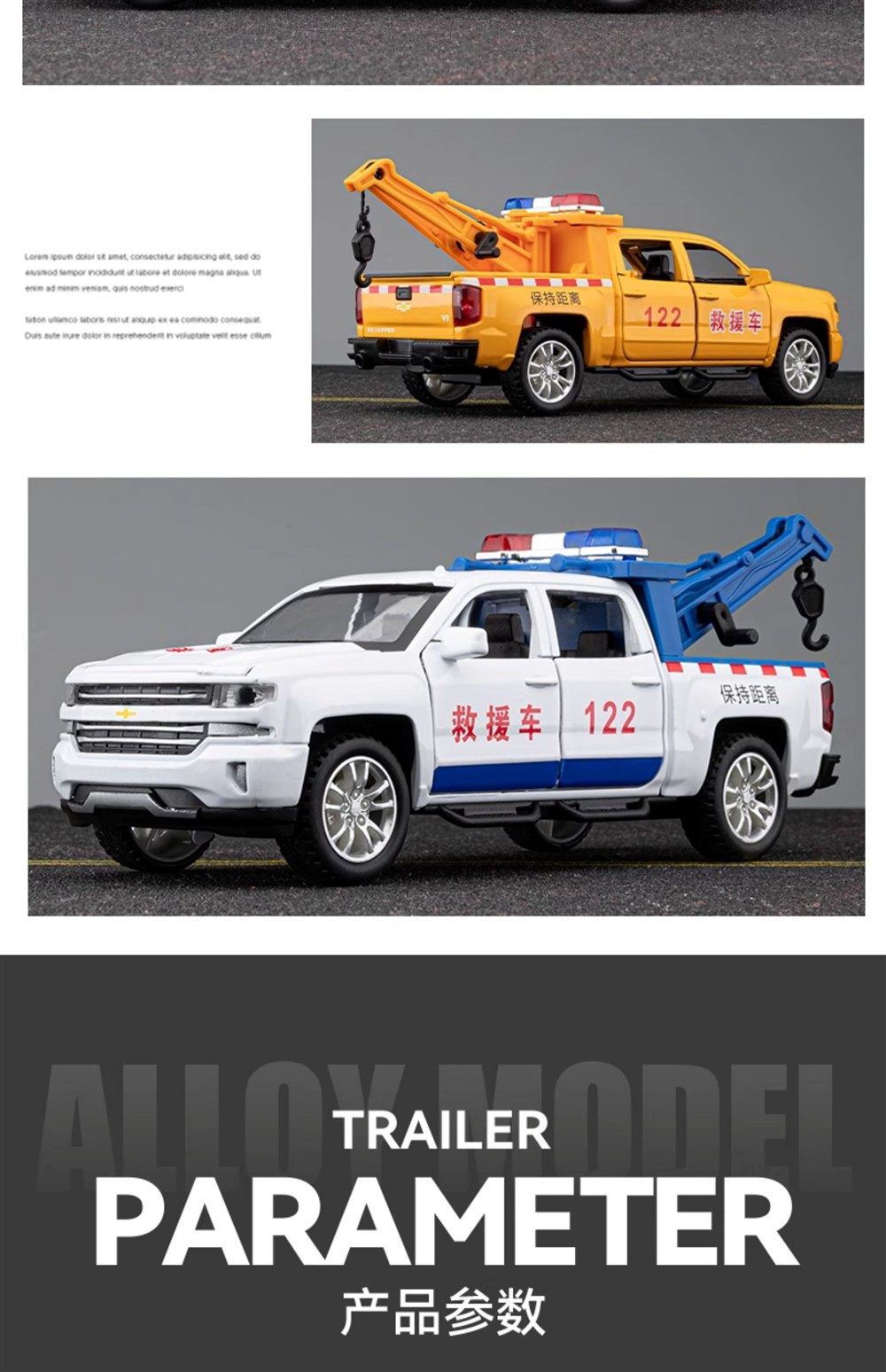 Color Classification Six-Door Rescue Vehicle Tow Truck - Yellow,Six-Door Rescue Vehicle Tow Truck - Red,Six-Door Rescue Vehicle Trailer - White,Six-Door Rescue Lift Truck - Yellow,Six-Door Rescue Lift Truck - Red,Power Emergency Repair-Yellow,Six-Door Rescue Lift Truck - White,Road Rescue-Red,Urban Management-White,Swat--Black,Flatbed Police Car Trailer,[Pack of Two] Rescue Vehicle + Volkswagen Police Car,[Pack of Two] Rescue Vehicle + Fire Truck,[Pack of Two] Rescue Vehicle + Ambulance