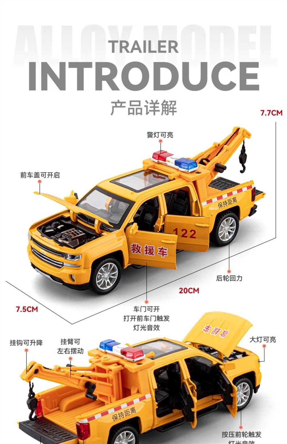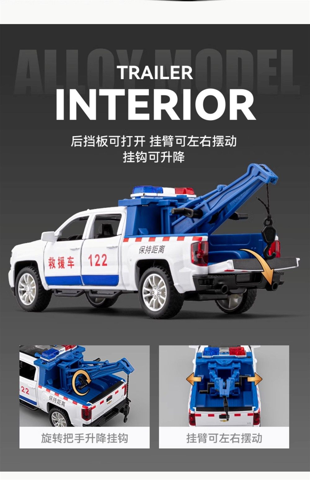 110 Alloy Pickup Rescue Vehicle Police Car Tow Truck Children's Toy Boy Engineering Lift Truck Toy Car Small Car