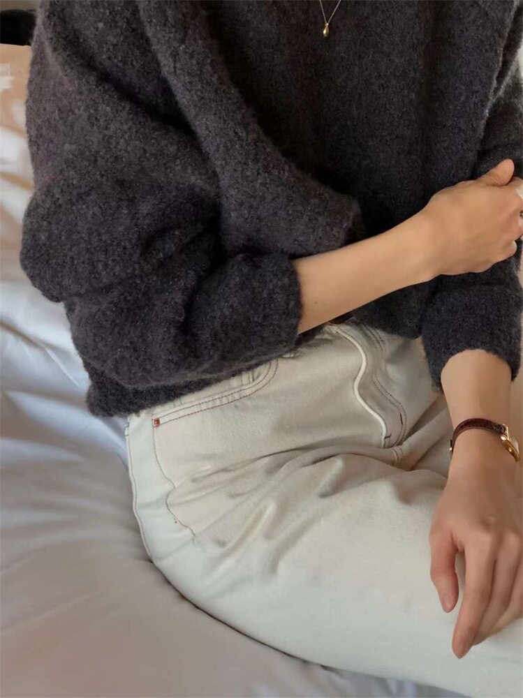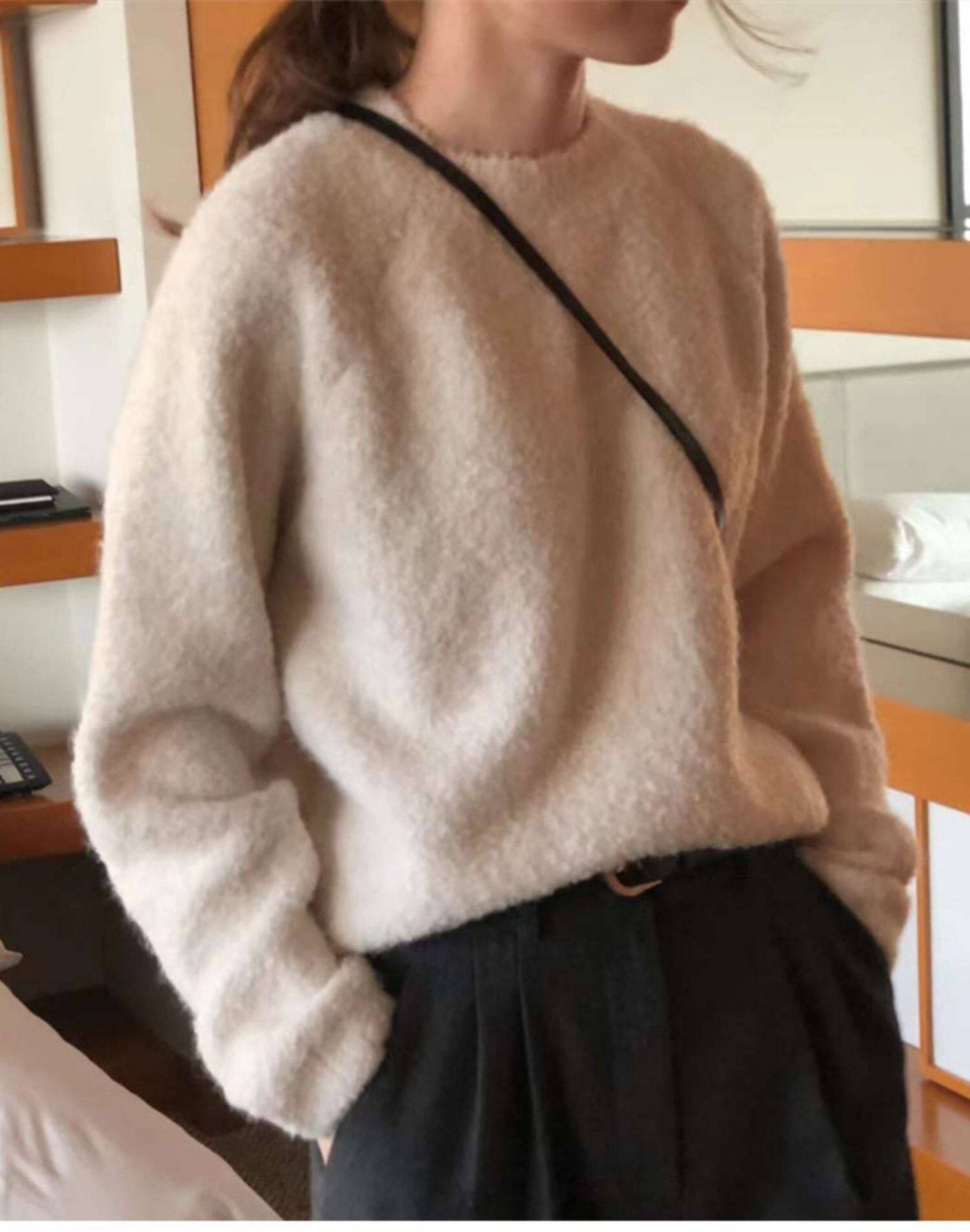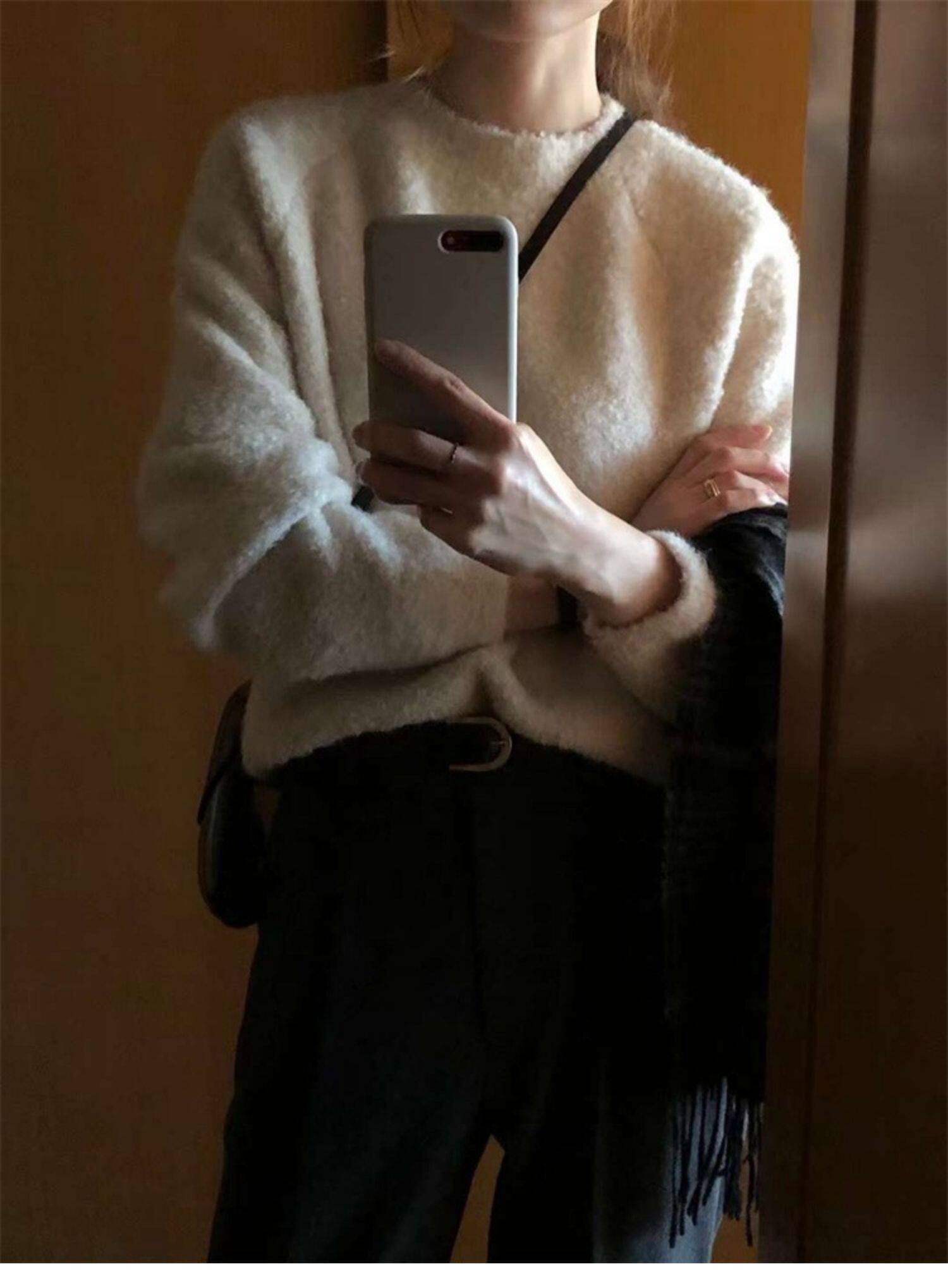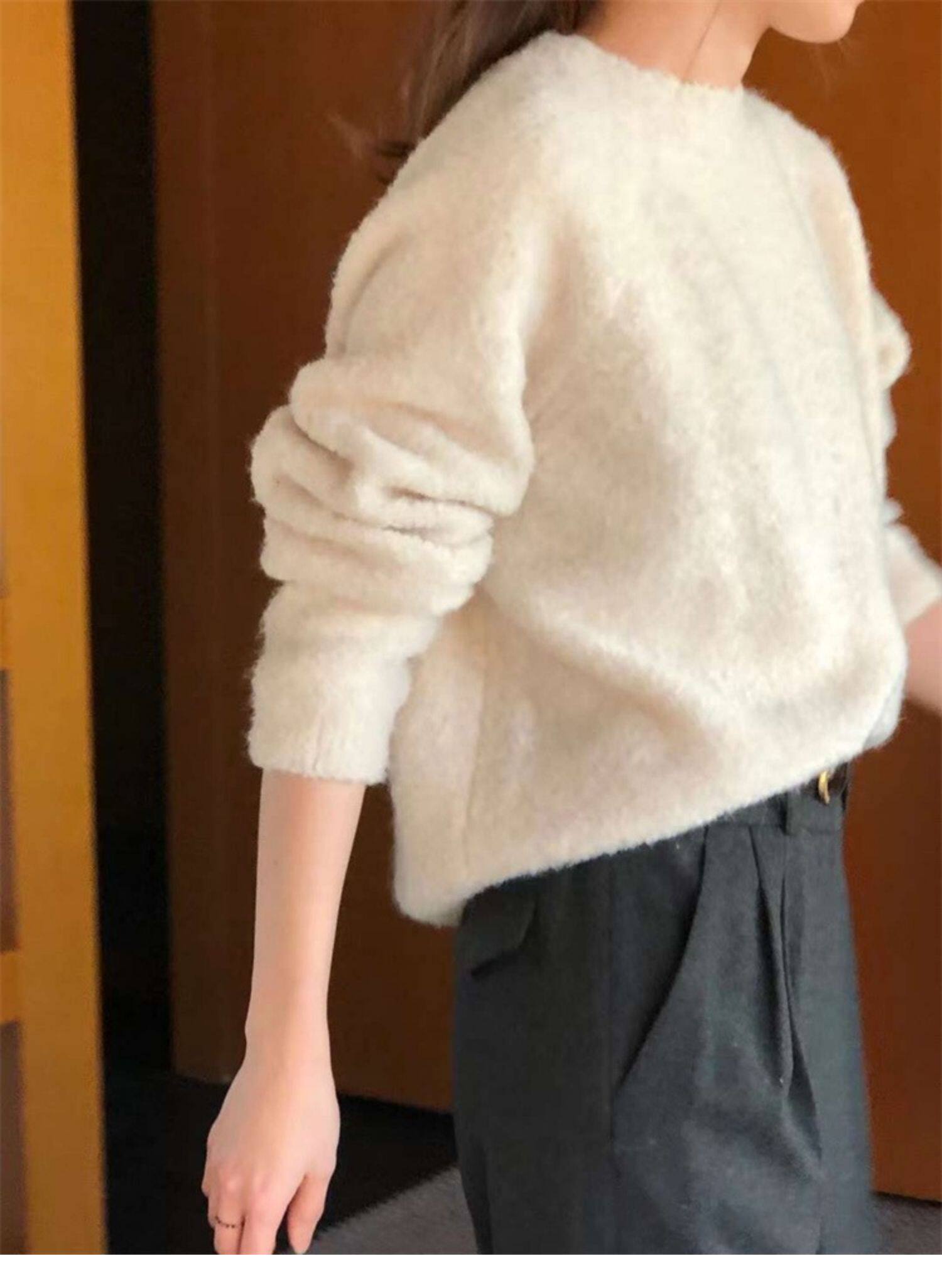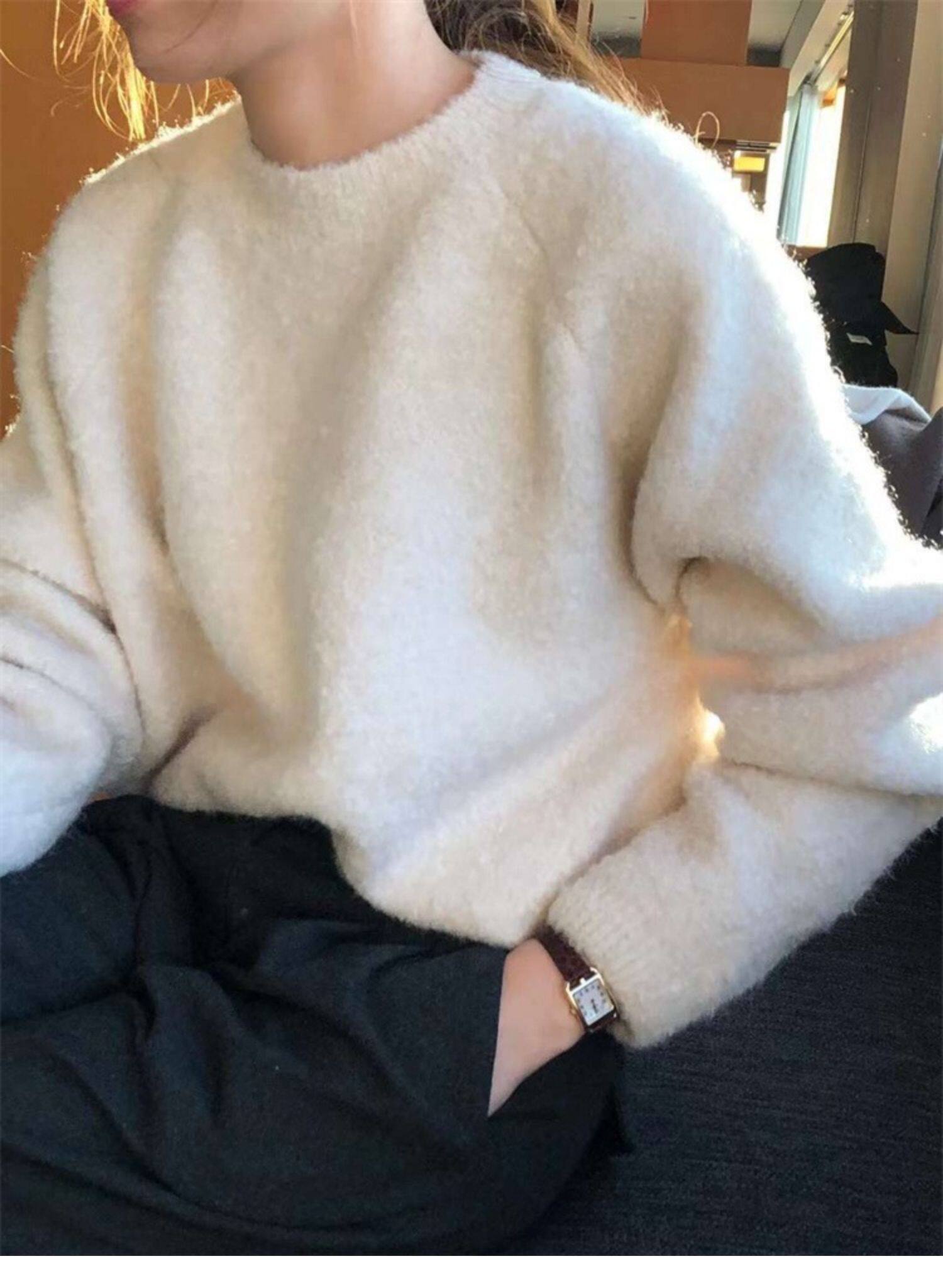 Breast fufu lazy pullover white circle yarn sweater women's autumn and winter simple and gentle knitted sweater loose soft waxy top