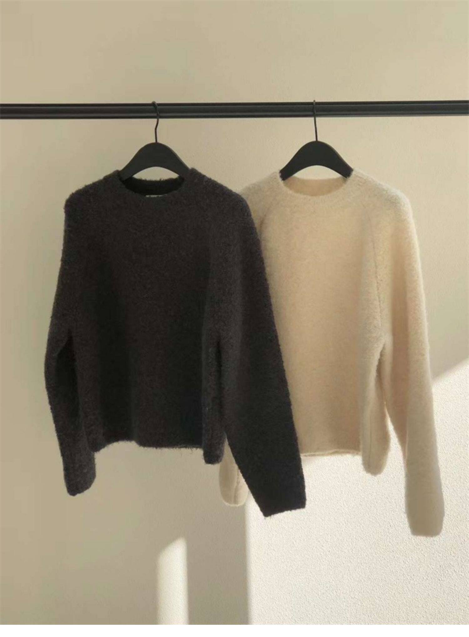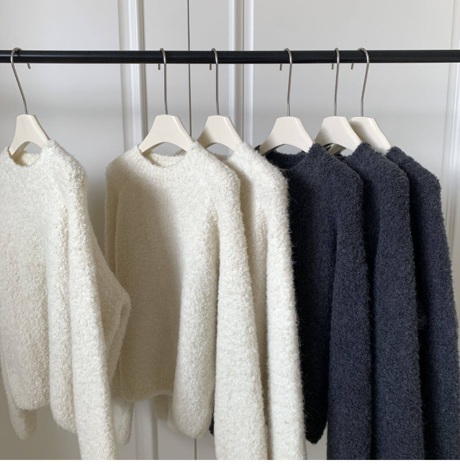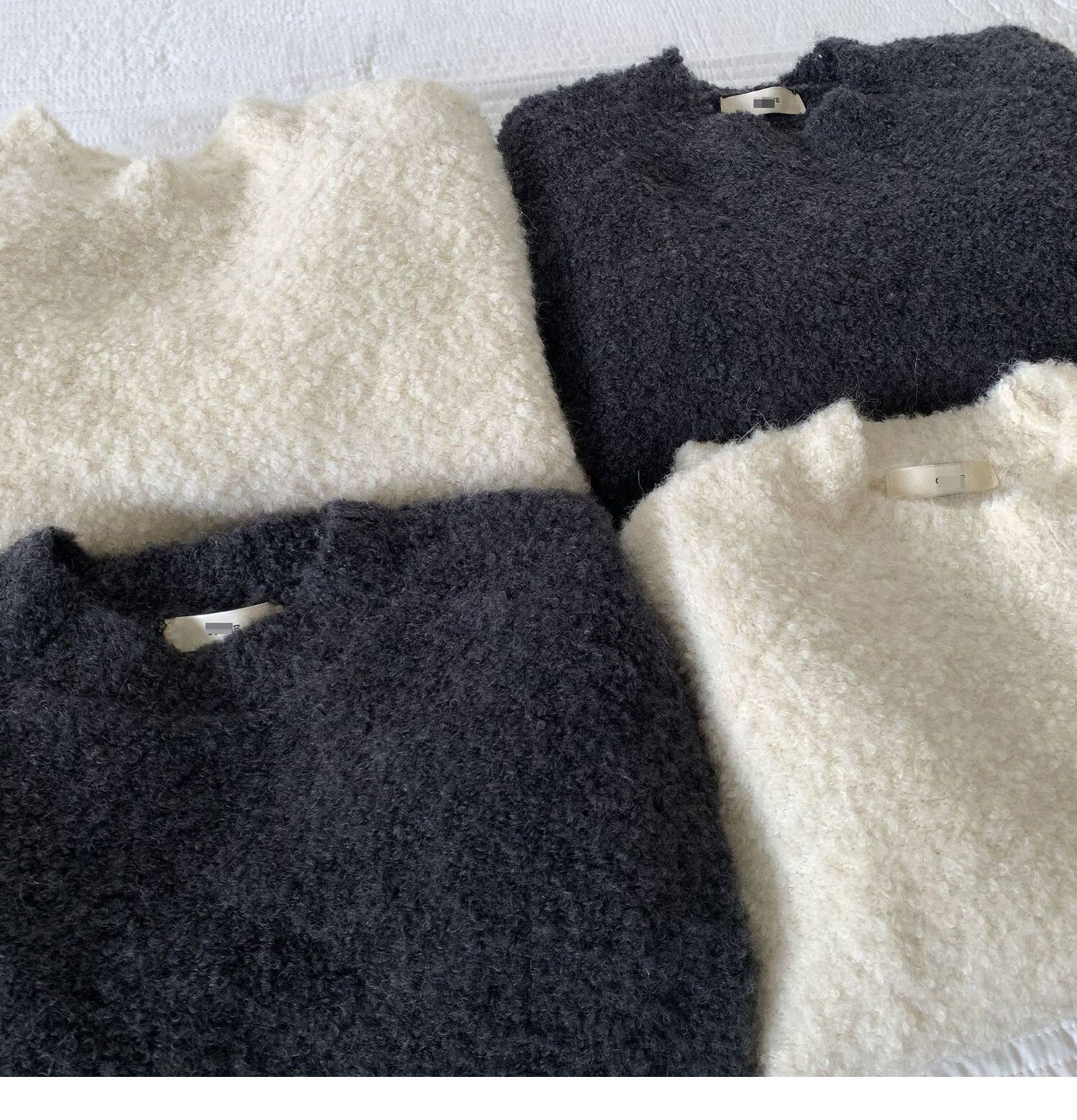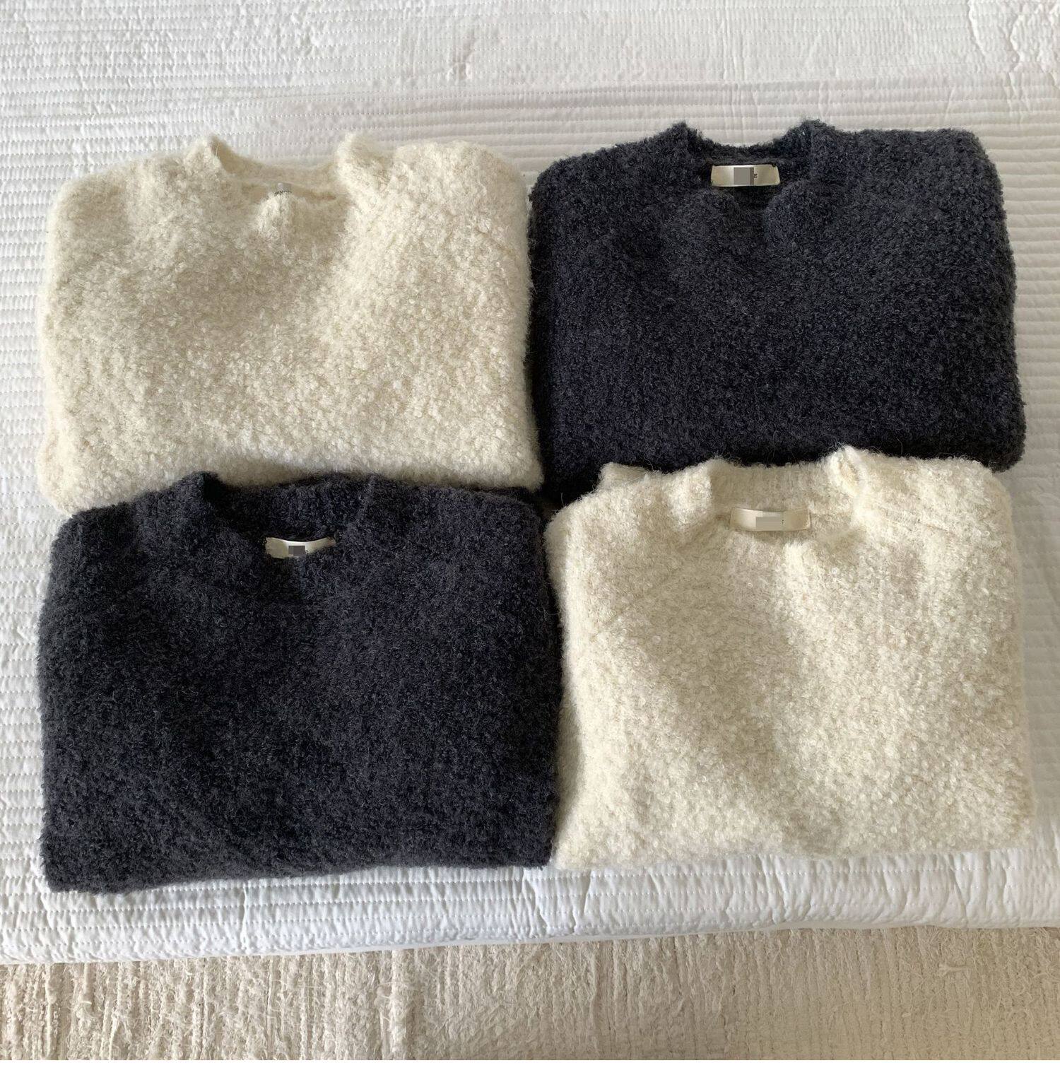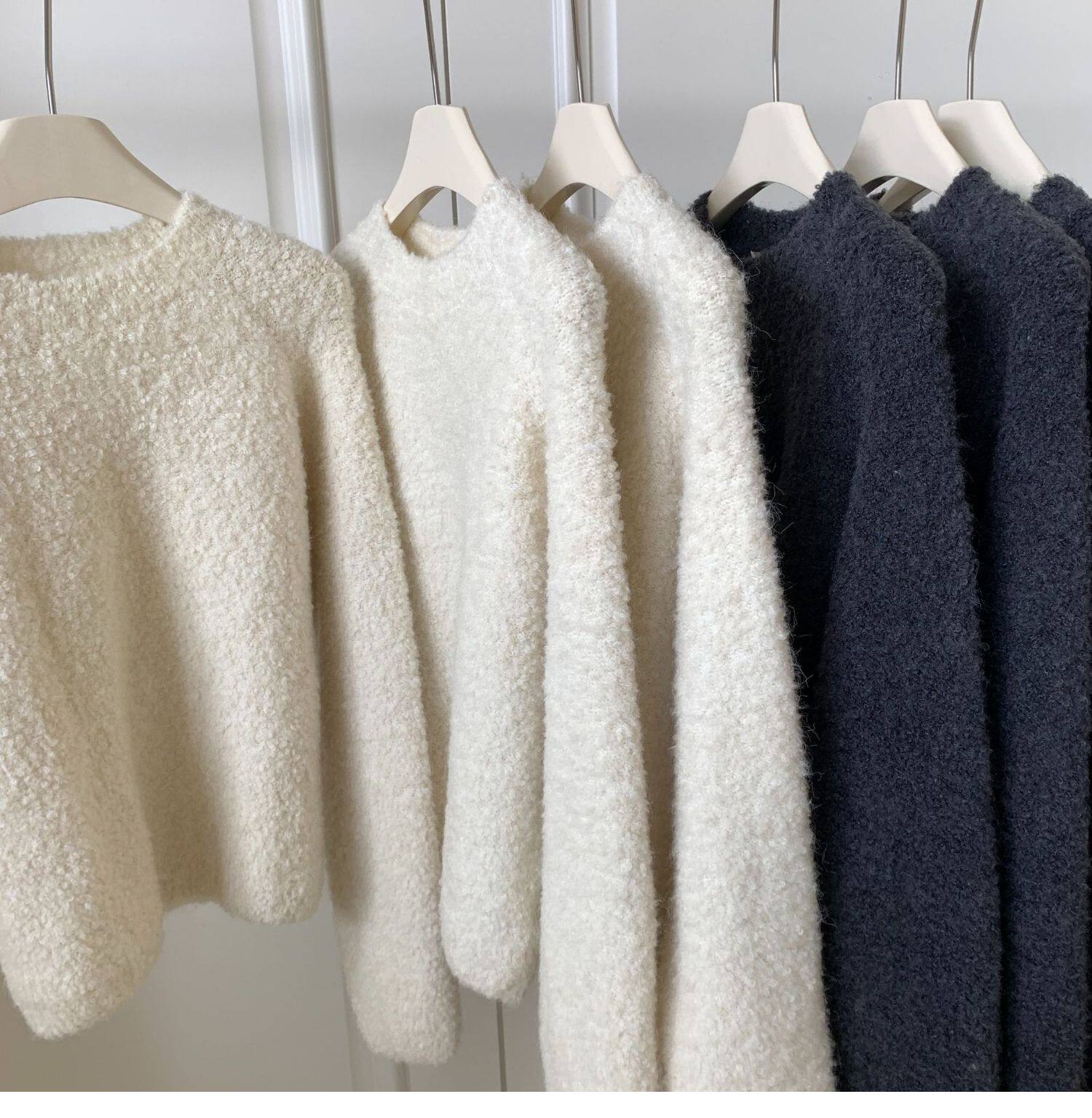 Breast fufu lazy pullover white circle yarn sweater women's autumn and winter simple and gentle knitted sweater loose soft waxy top