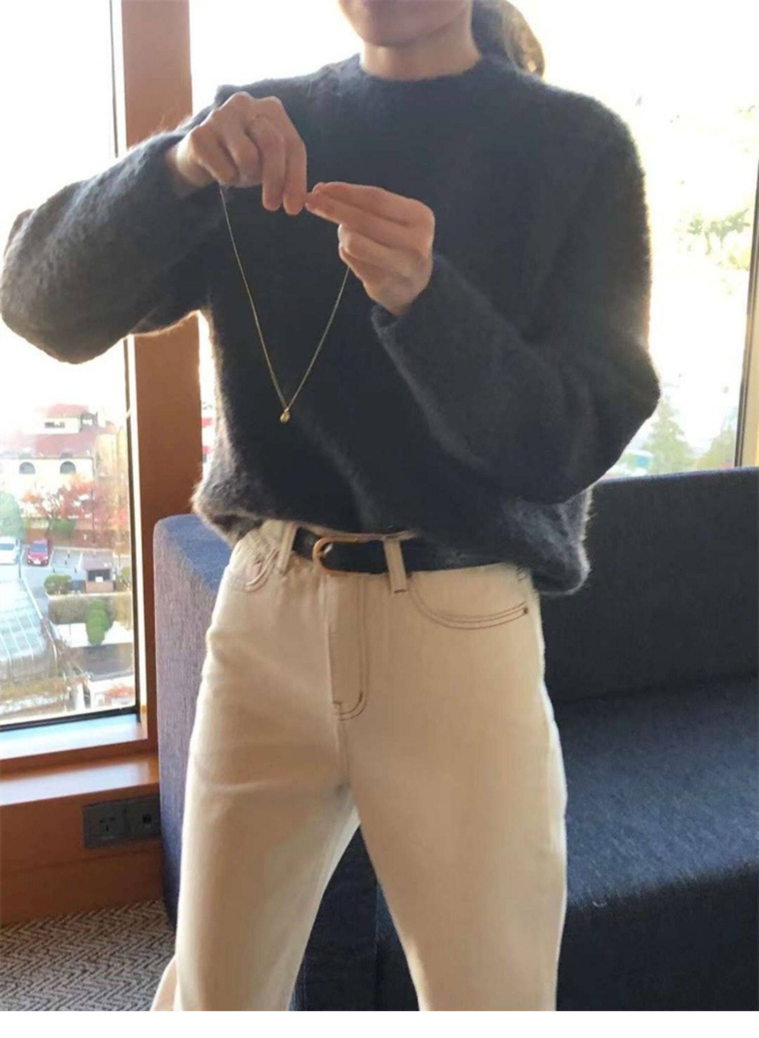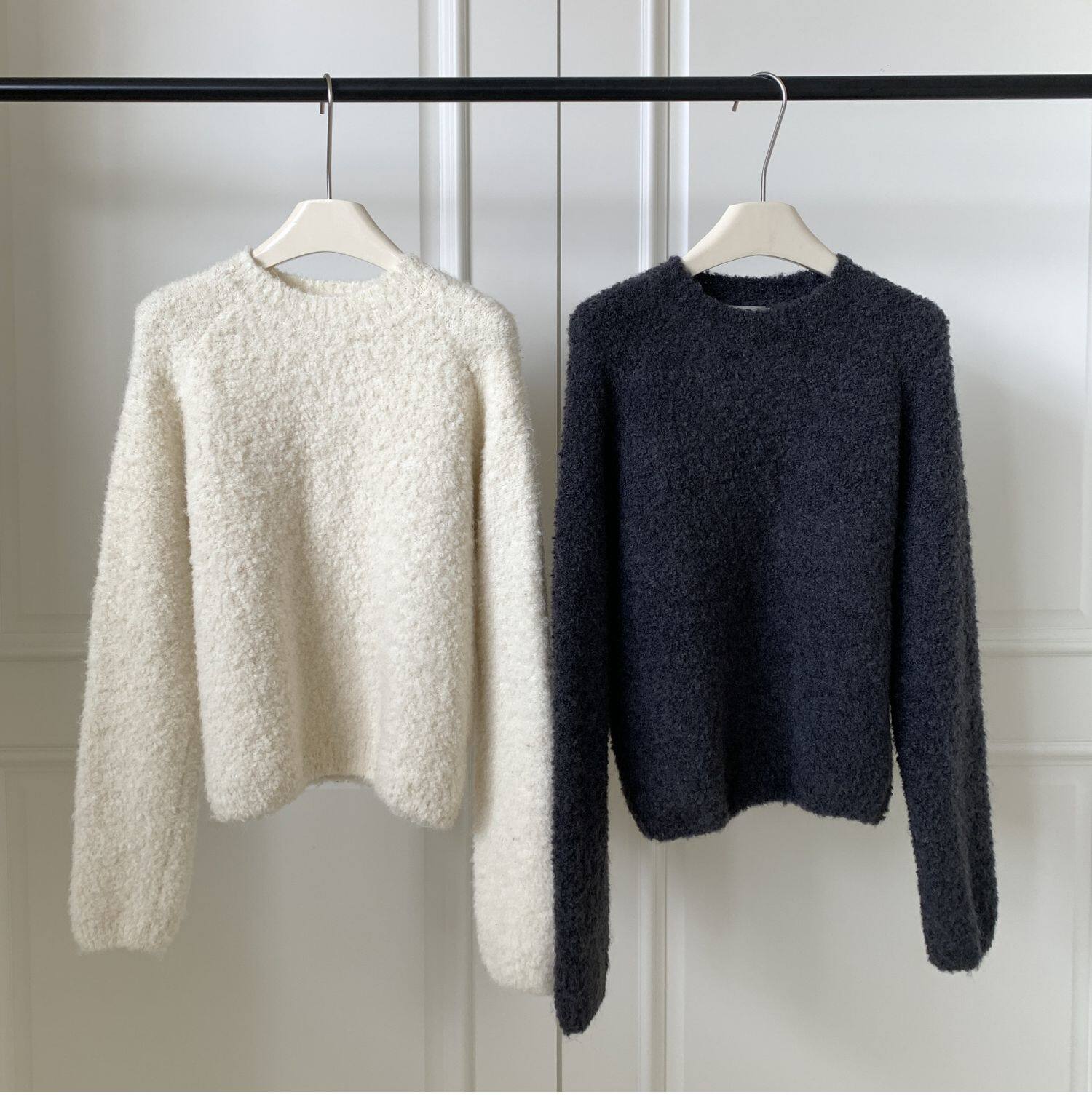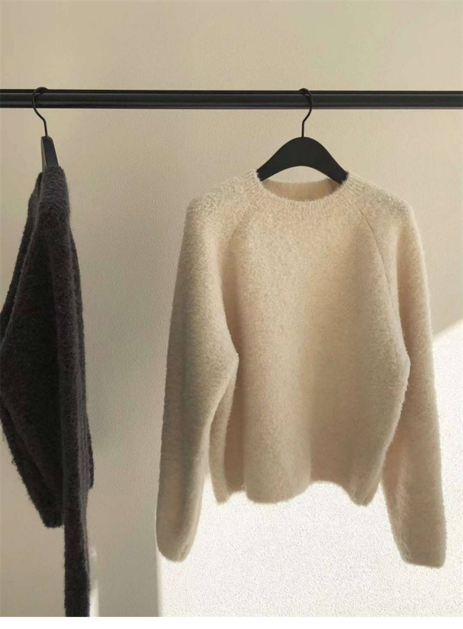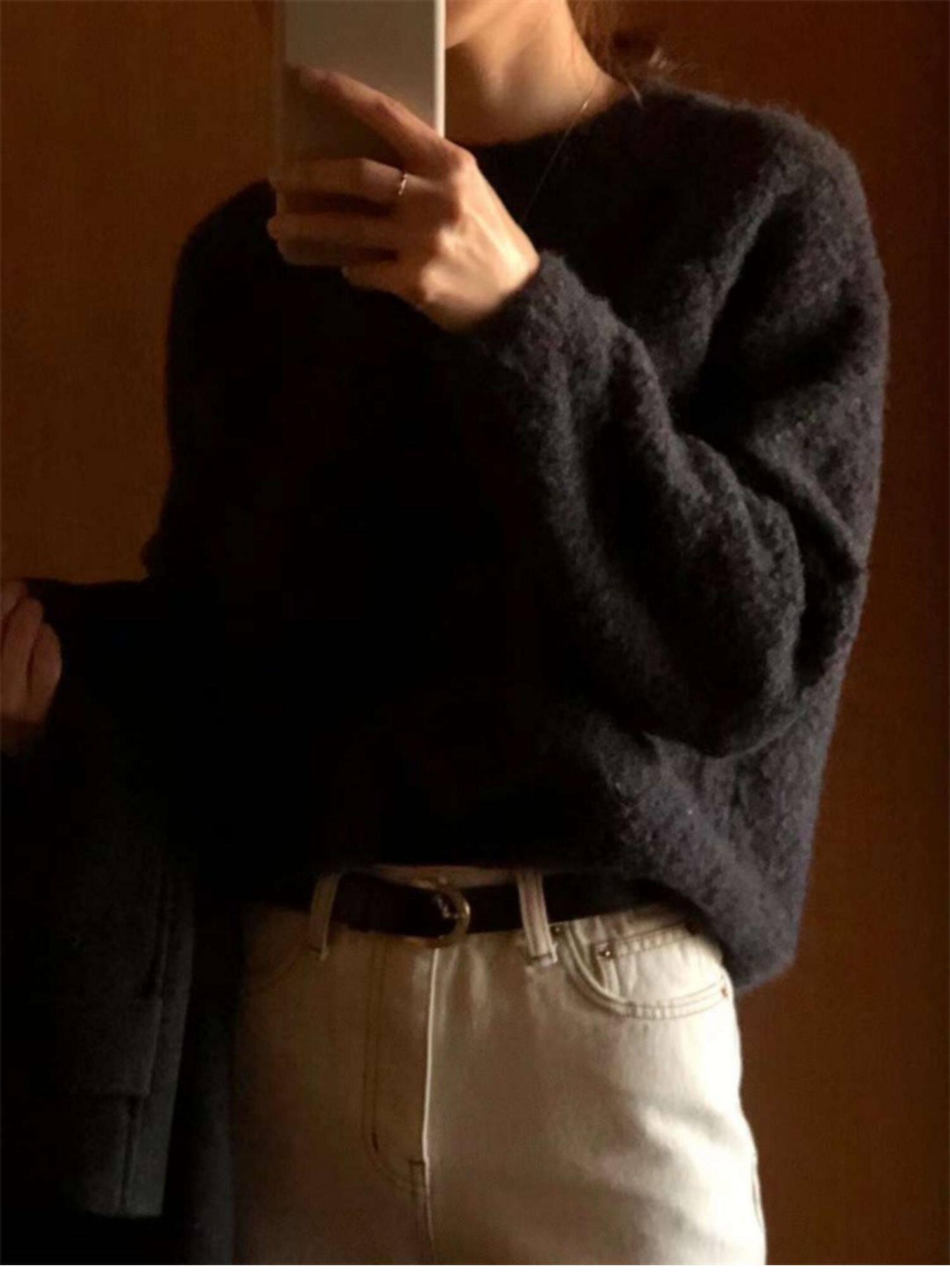Breast fufu lazy pullover white circle yarn sweater women's autumn and winter simple and gentle knitted sweater loose soft waxy top