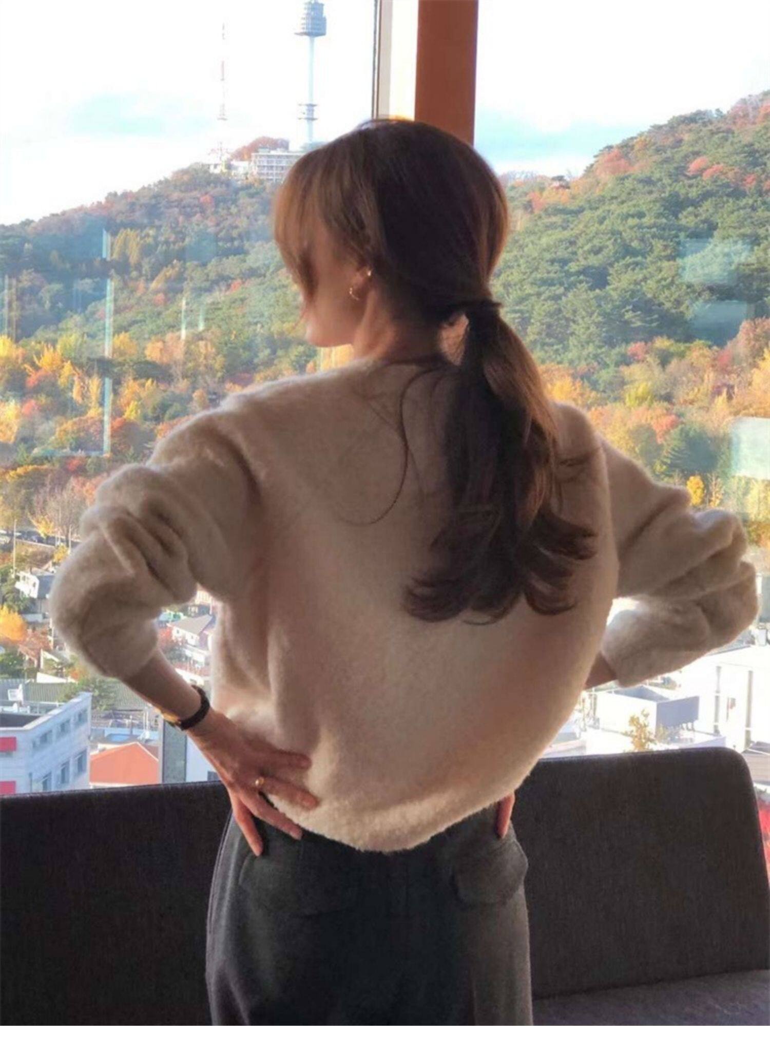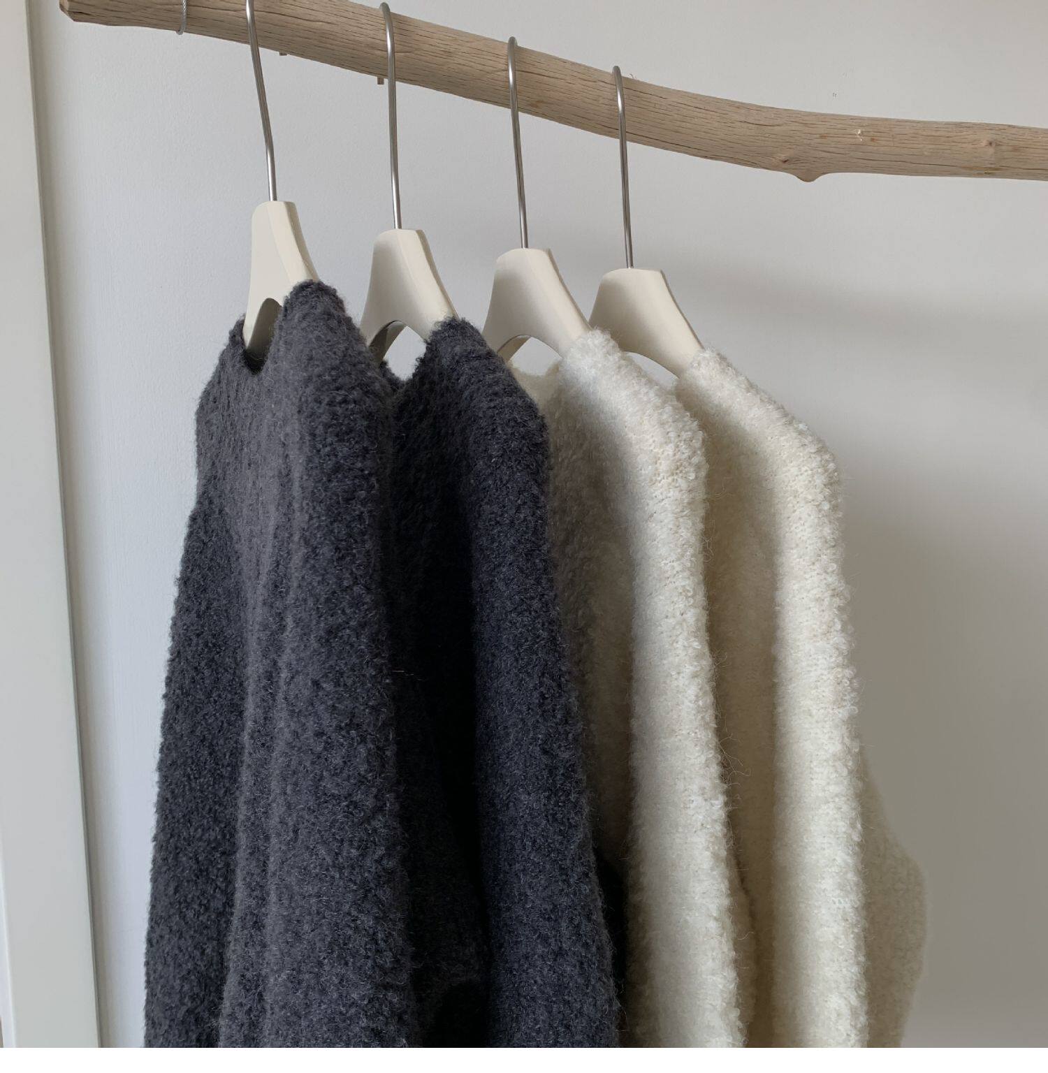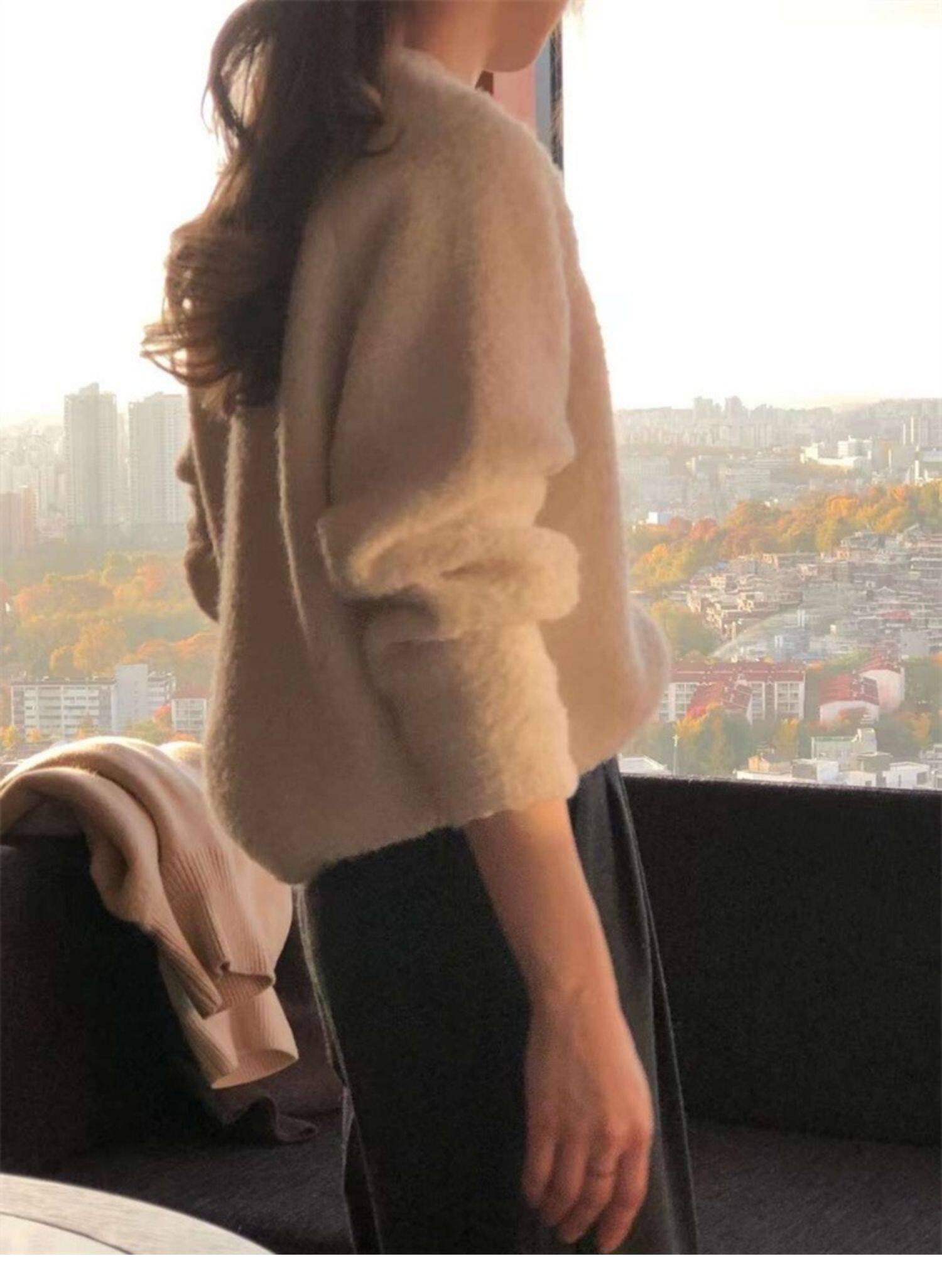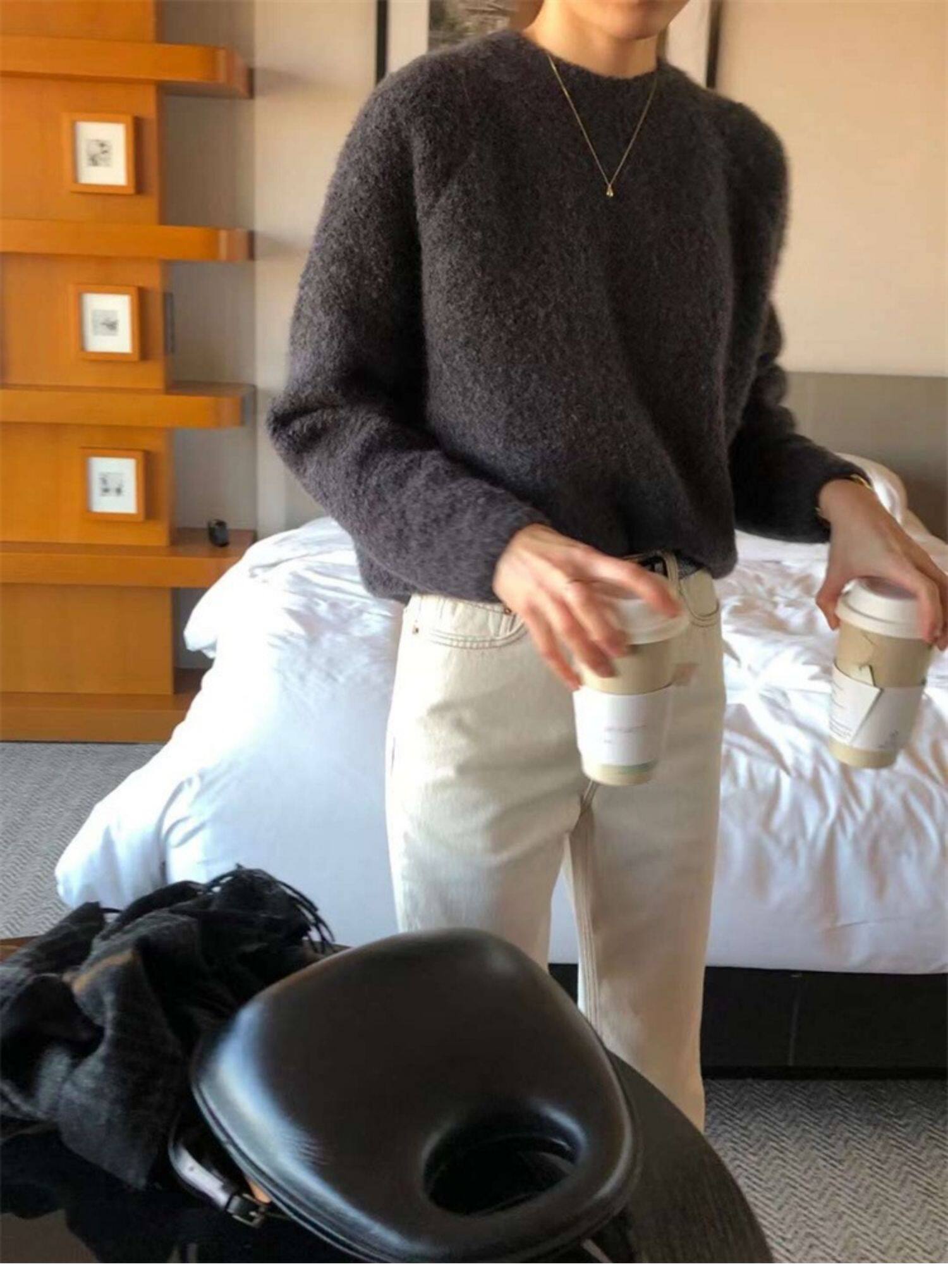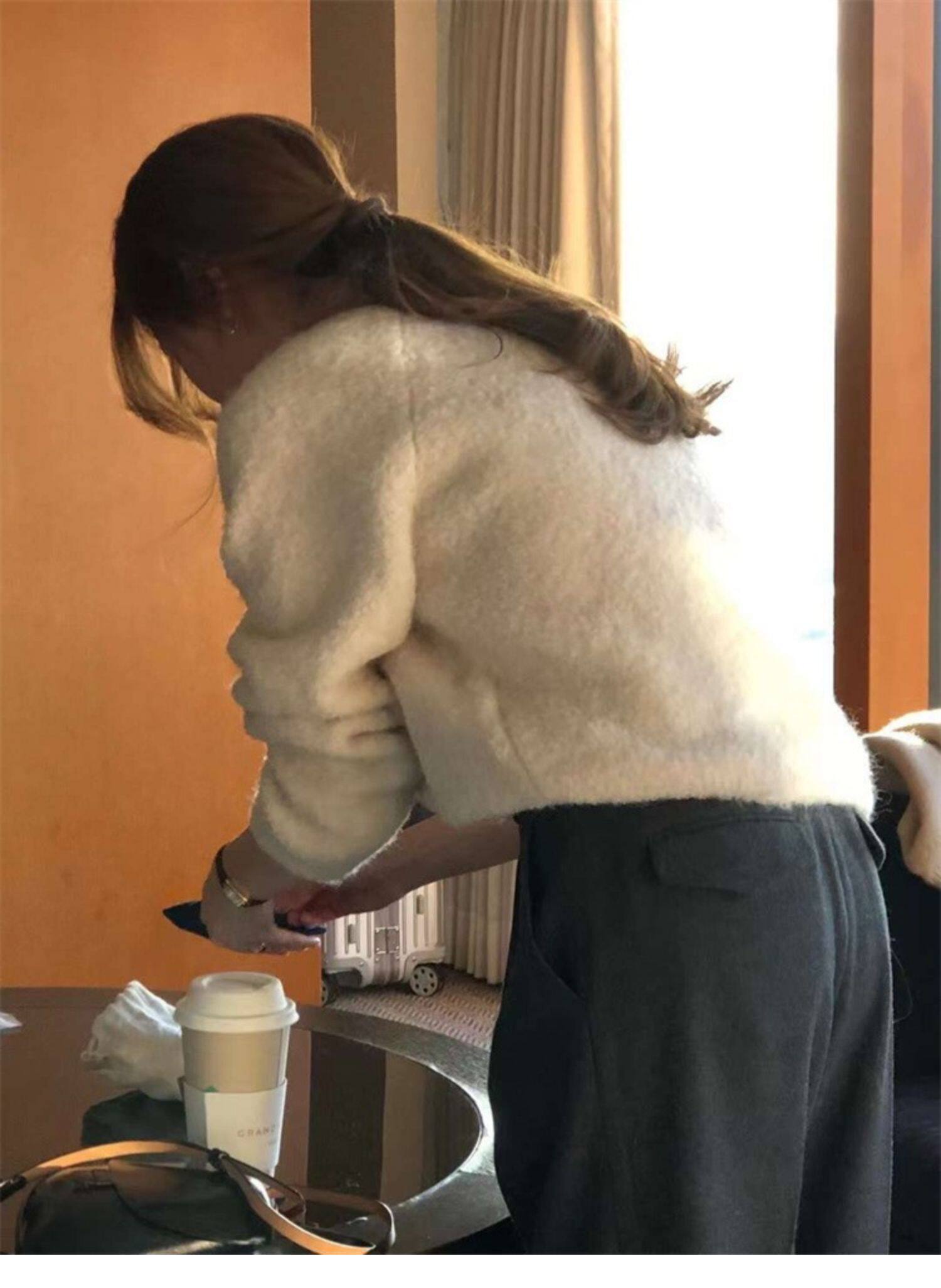 Breast fufu lazy pullover white circle yarn sweater women's autumn and winter simple and gentle knitted sweater loose soft waxy top
