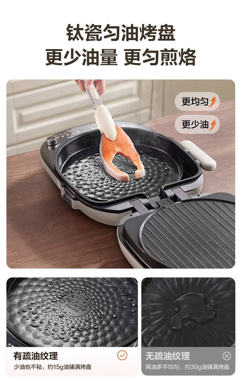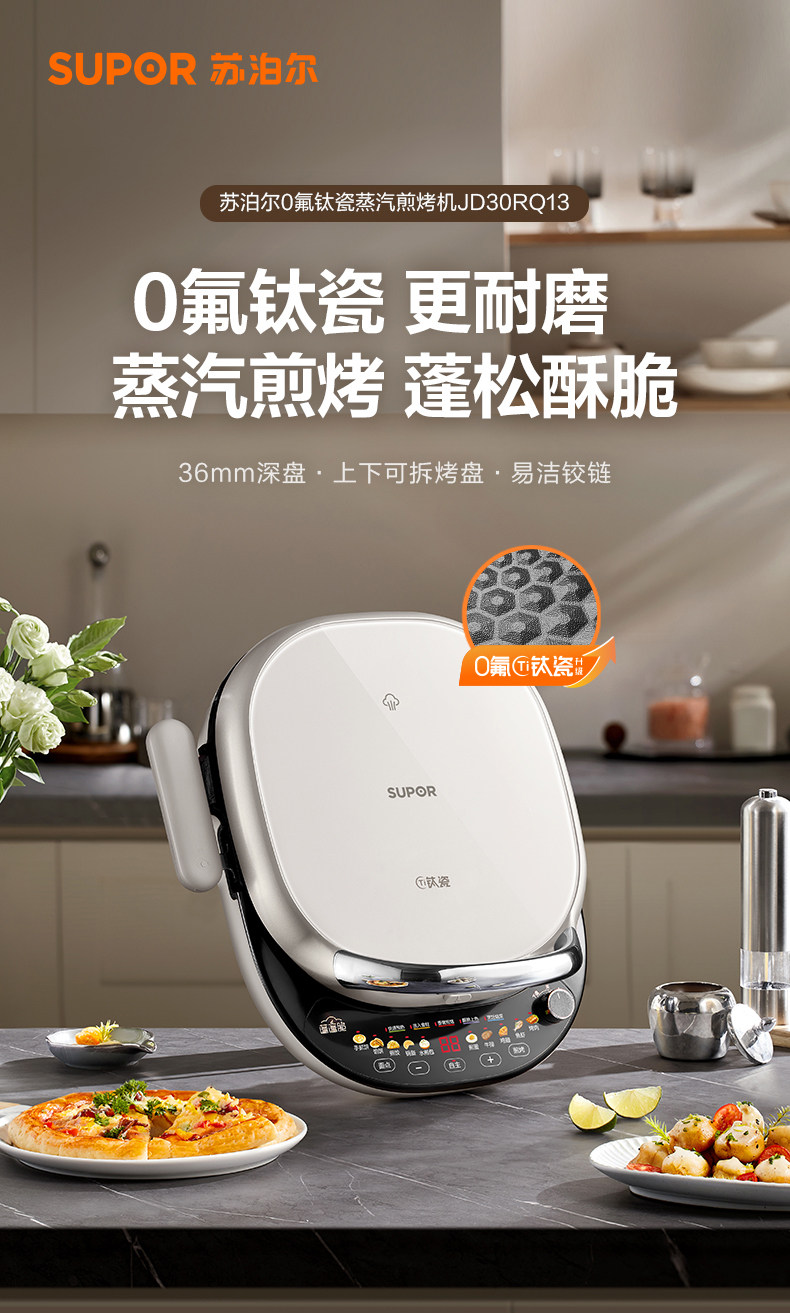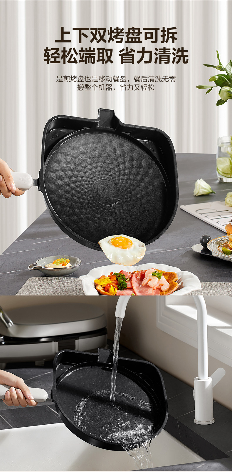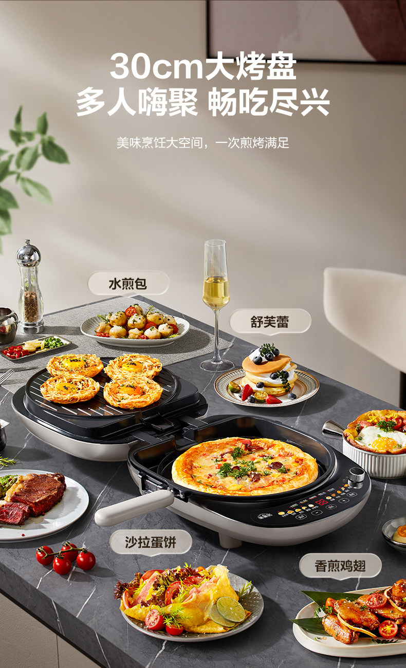 Supor's New Electric Griddle with Zero Fluorine Titanium Ceramic, Dual-Sided Heating, Detachable Steam Function, Multifunctional Electric Frying Pan, Genuine Product