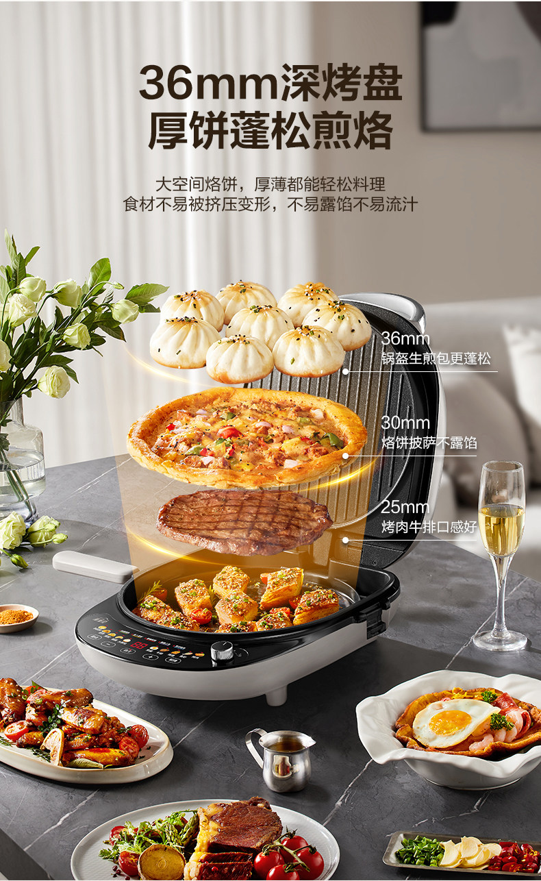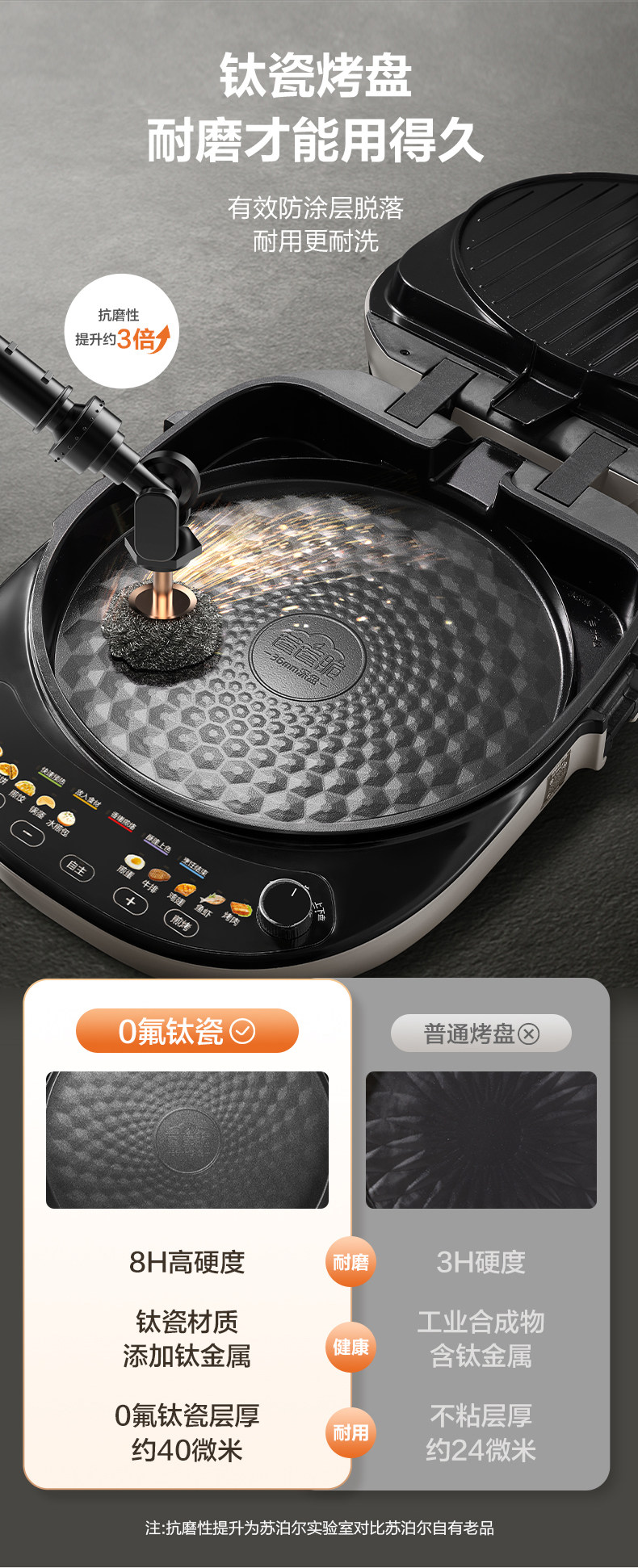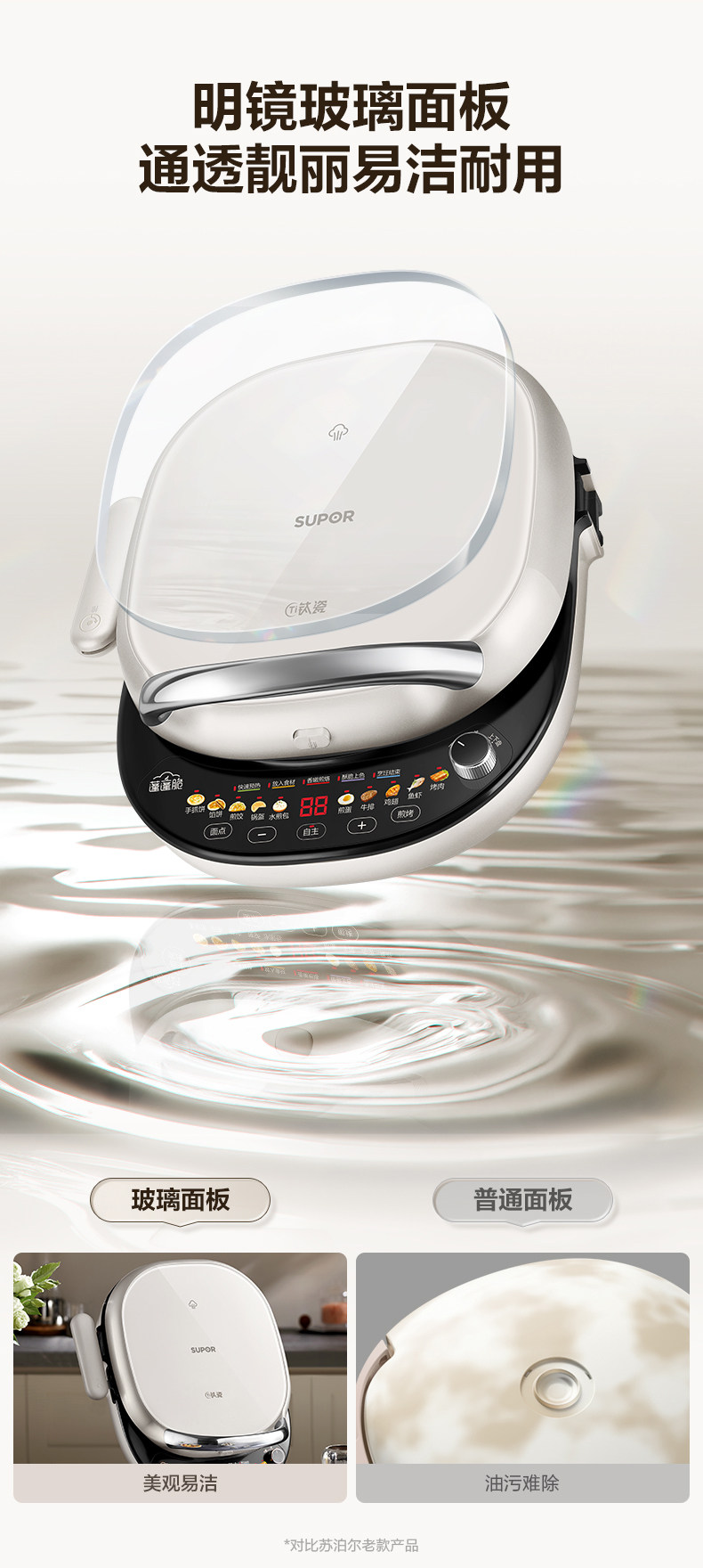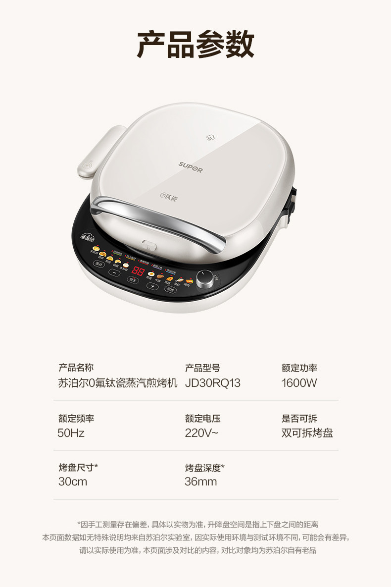 Supor's New Electric Griddle with Zero Fluorine Titanium Ceramic, Dual-Sided Heating, Detachable Steam Function, Multifunctional Electric Frying Pan, Genuine Product