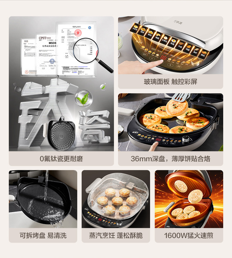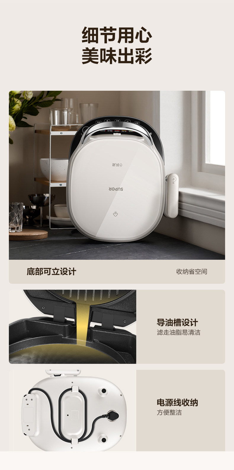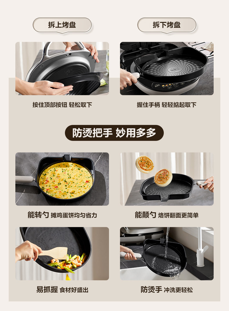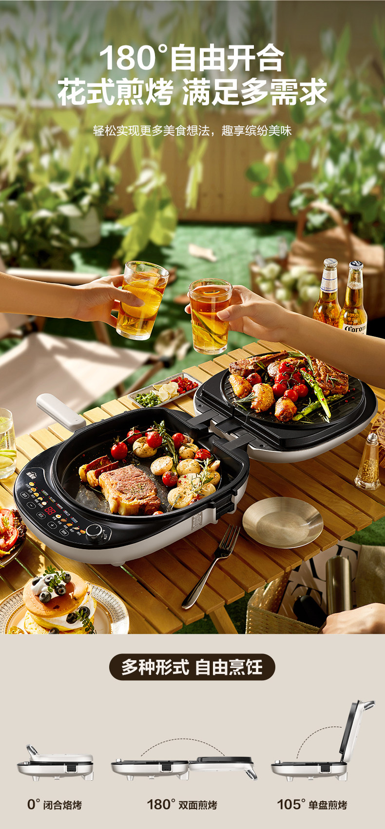 Supor's New Electric Griddle with Zero Fluorine Titanium Ceramic, Dual-Sided Heating, Detachable Steam Function, Multifunctional Electric Frying Pan, Genuine Product