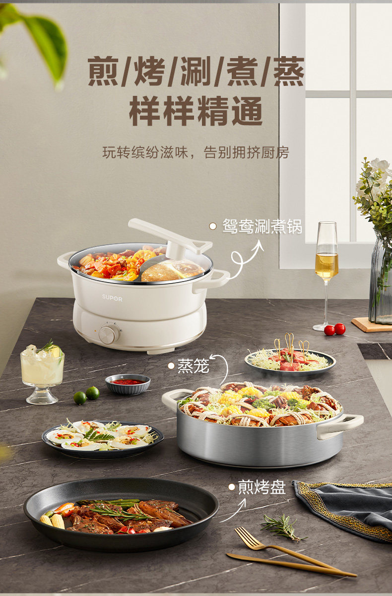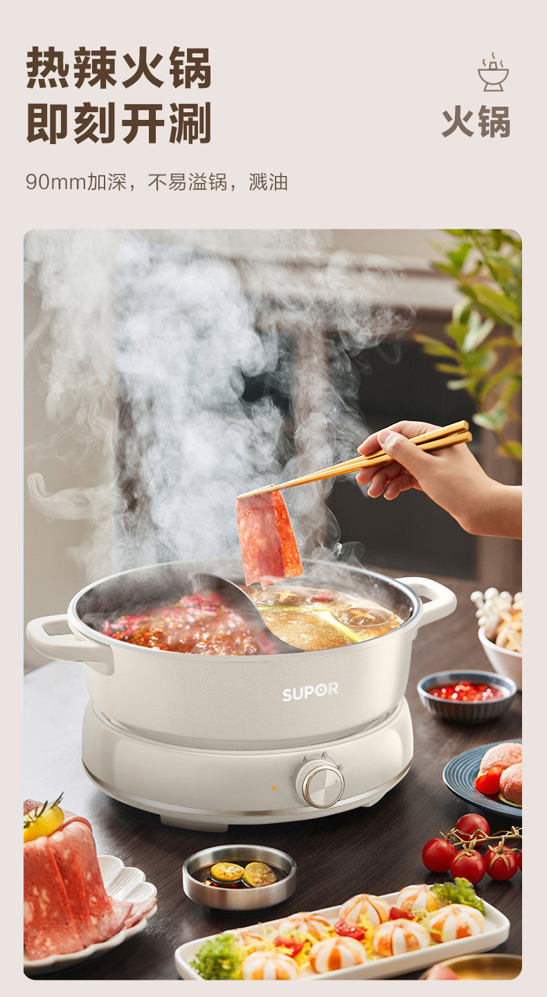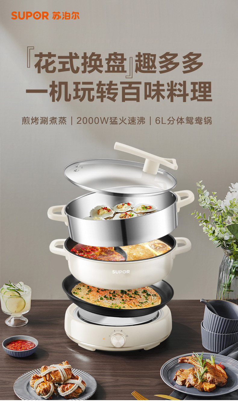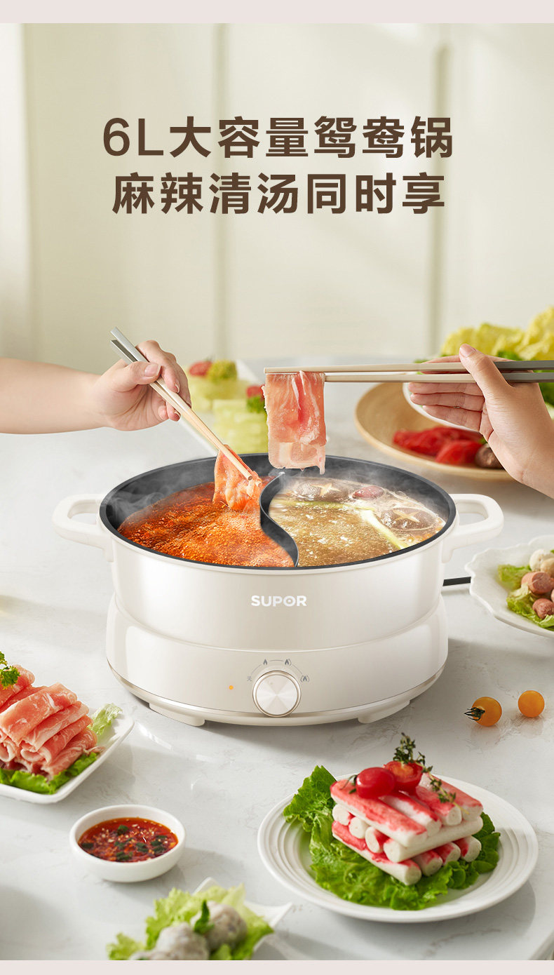 Supor New Model 2025 Dual-Purpose Electric Hot Pot 6L Large Capacity Multifunctional Frying, Grilling, Steaming Detachable Household Genuine Product