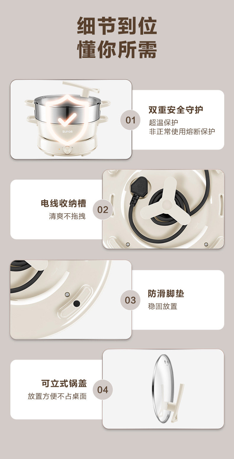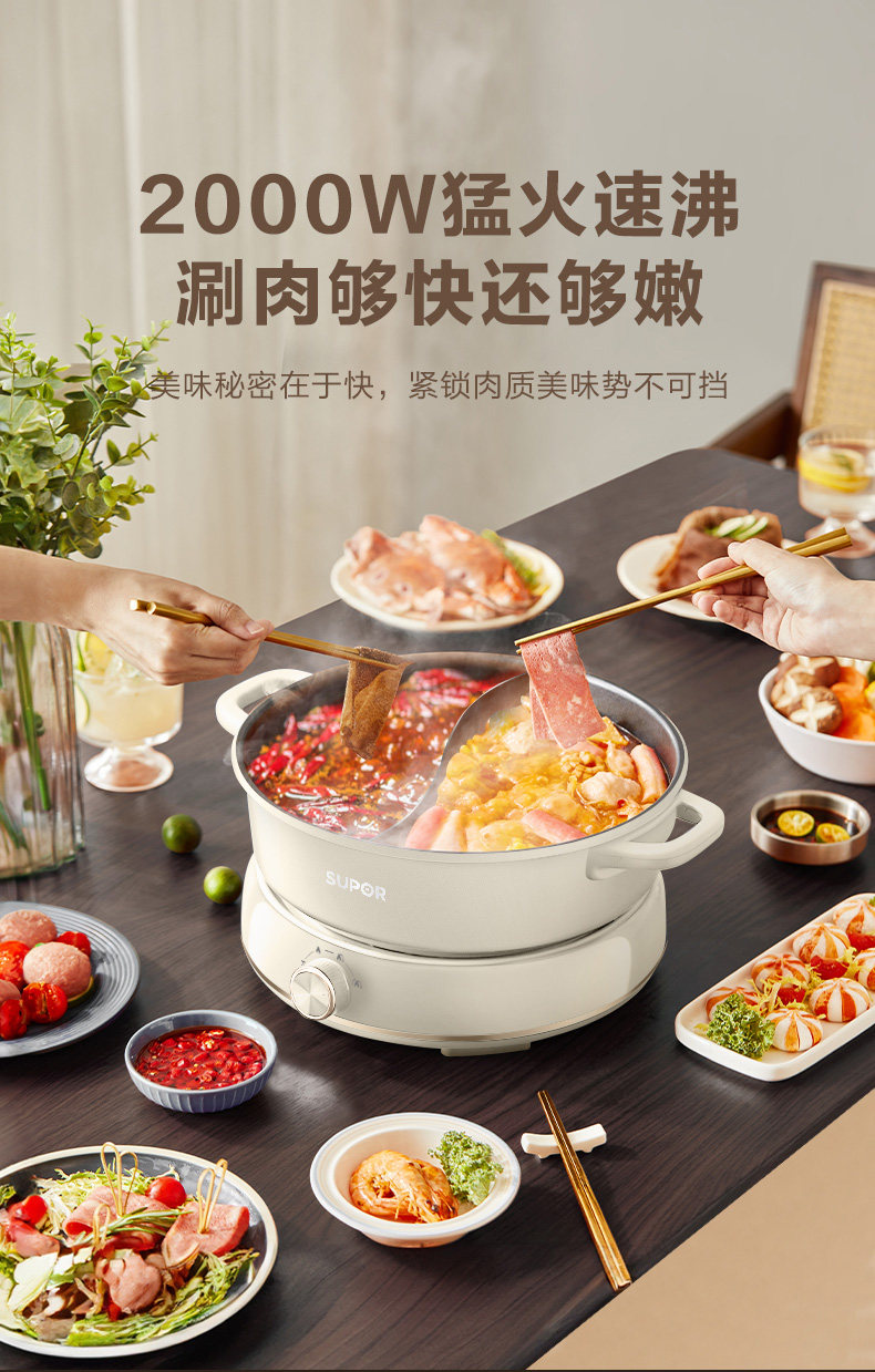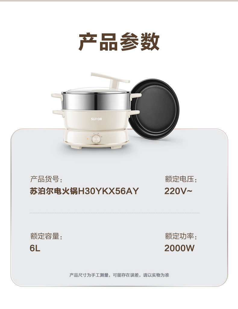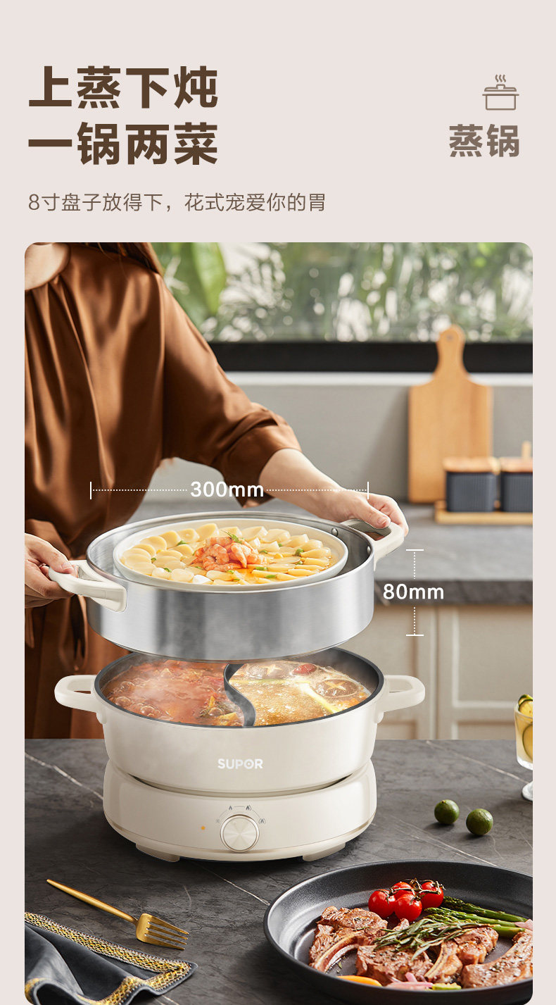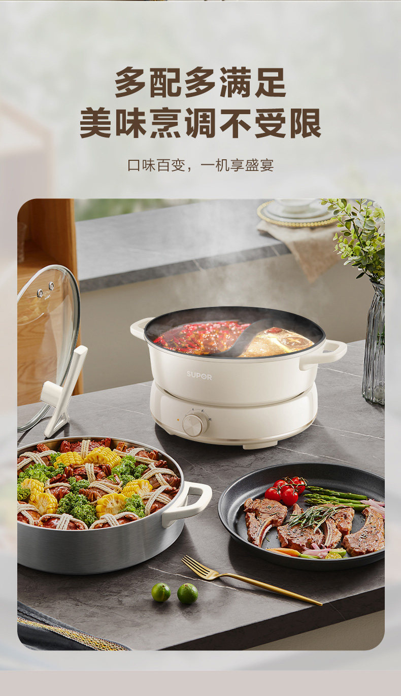 Supor New Model 2025 Dual-Purpose Electric Hot Pot 6L Large Capacity Multifunctional Frying, Grilling, Steaming Detachable Household Genuine Product