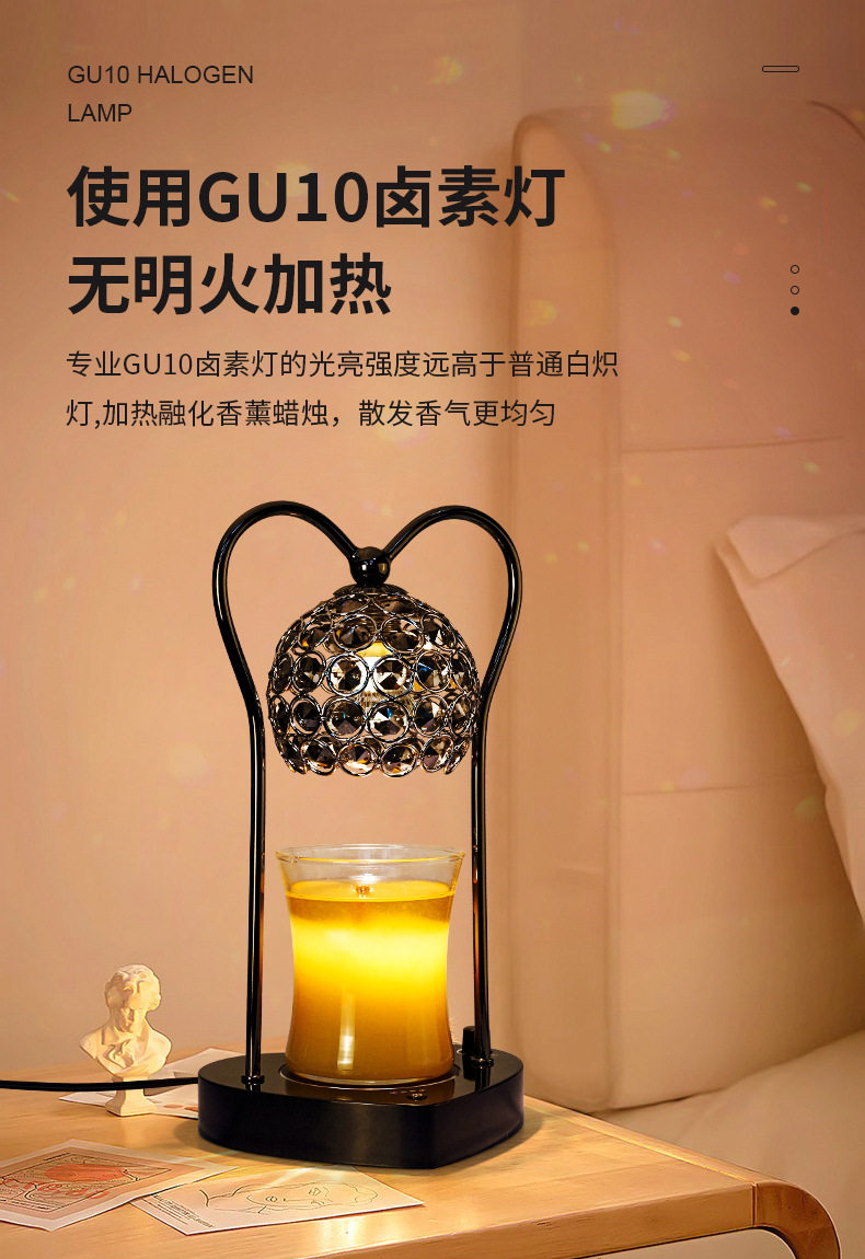ins Girly Aromatherapy Wax Melting Lamp Timed Candle Melting Lamp Bedroom Candle Table Lamp Light Luxury Crystal Atmosphere Night Light