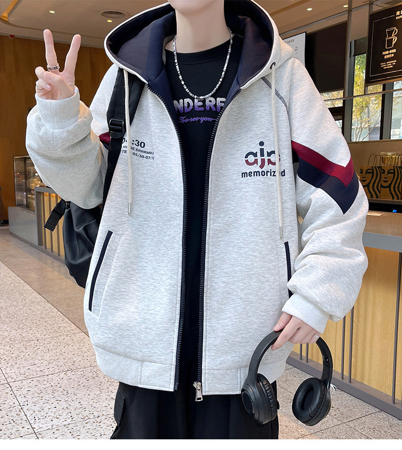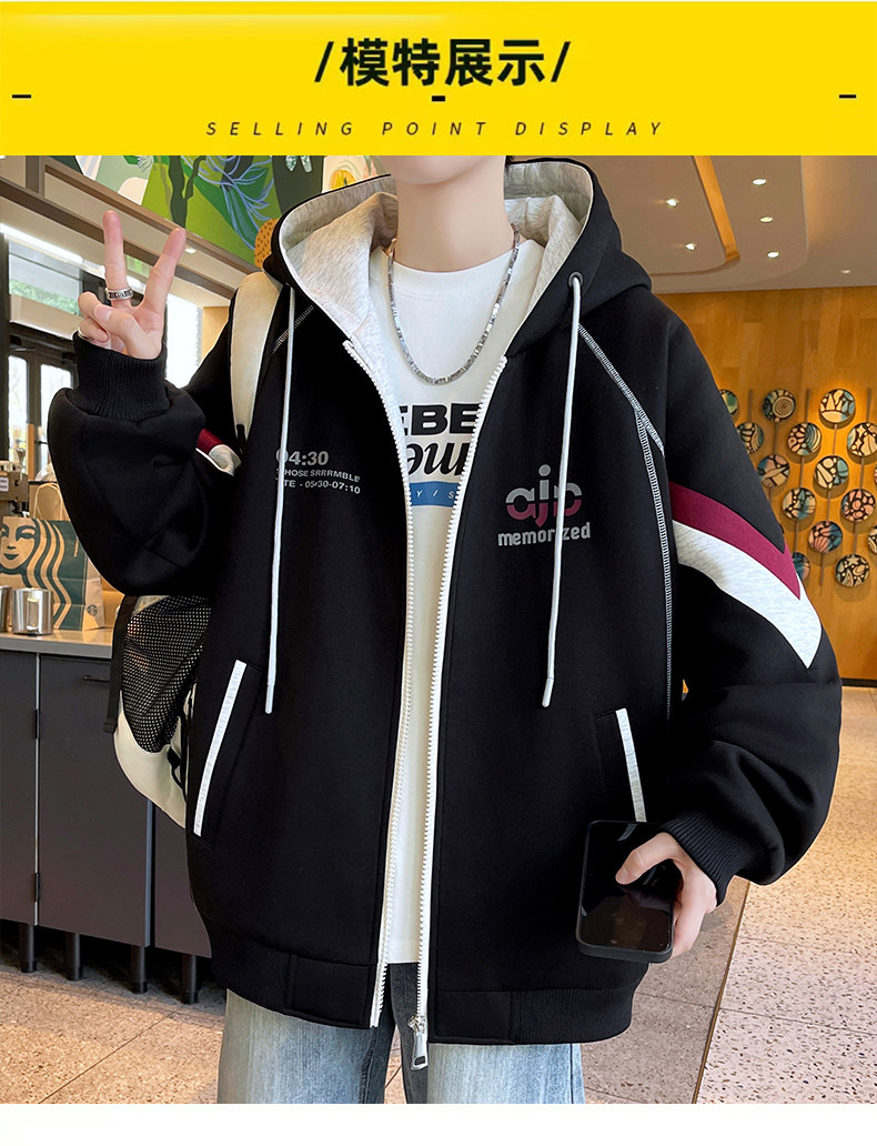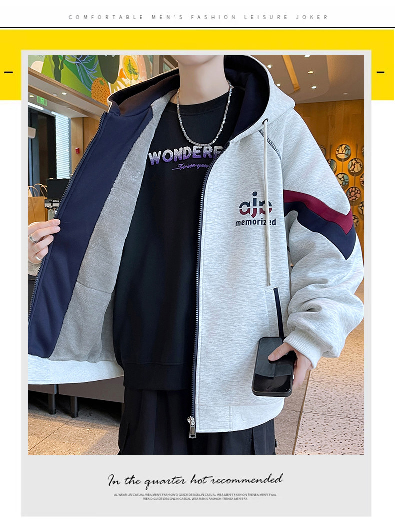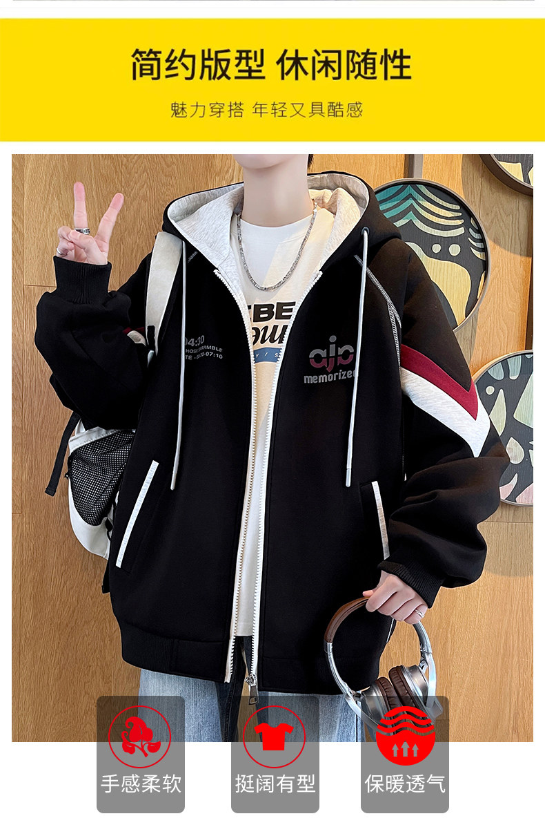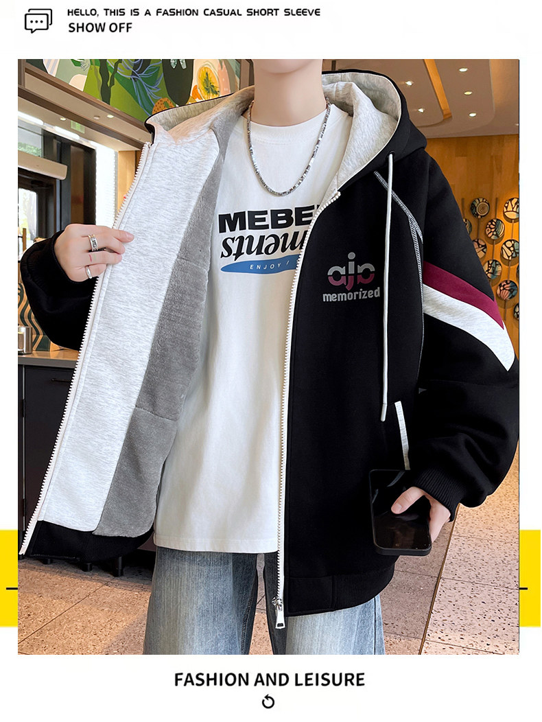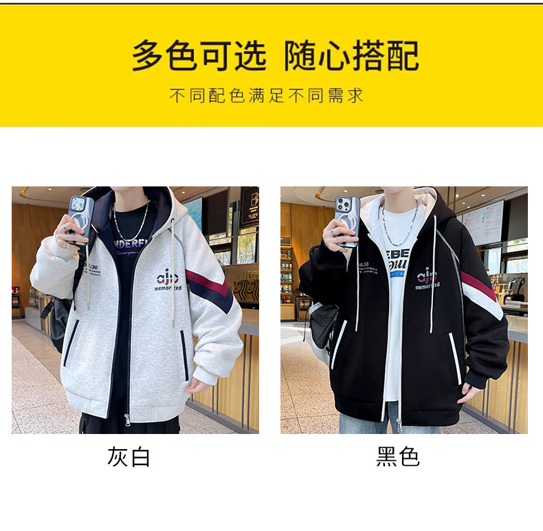 Autumn and Winter Fleece-Lined Thickened Sweatshirt Cardigan for Boys, Junior High School Students, Hooded Jacket, Youth Warm Top