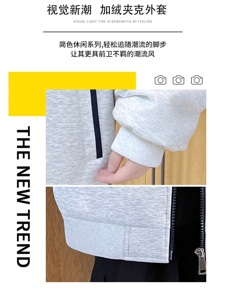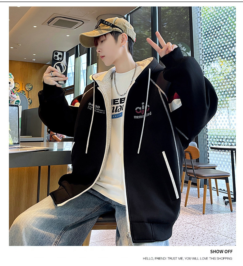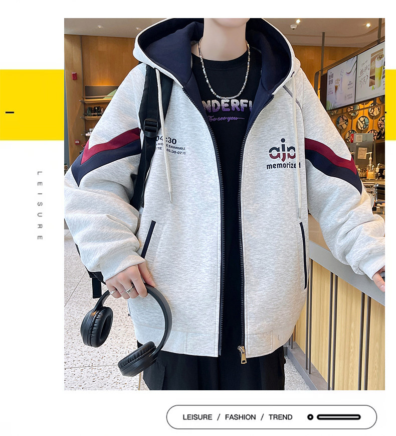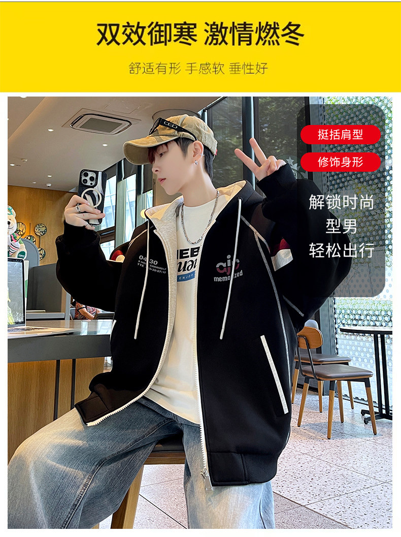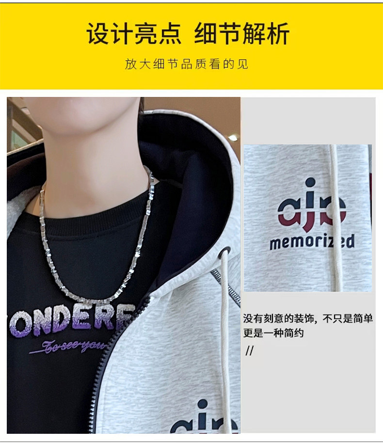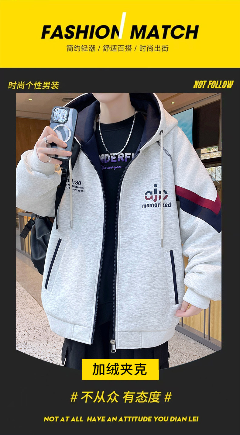 Autumn and Winter Fleece-Lined Thickened Sweatshirt Cardigan for Boys, Junior High School Students, Hooded Jacket, Youth Warm Top