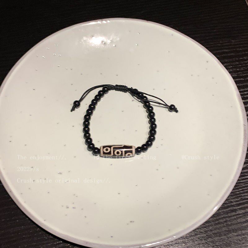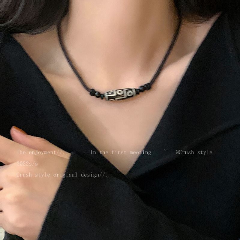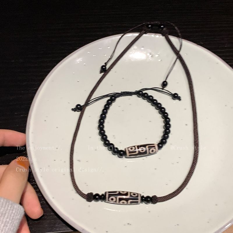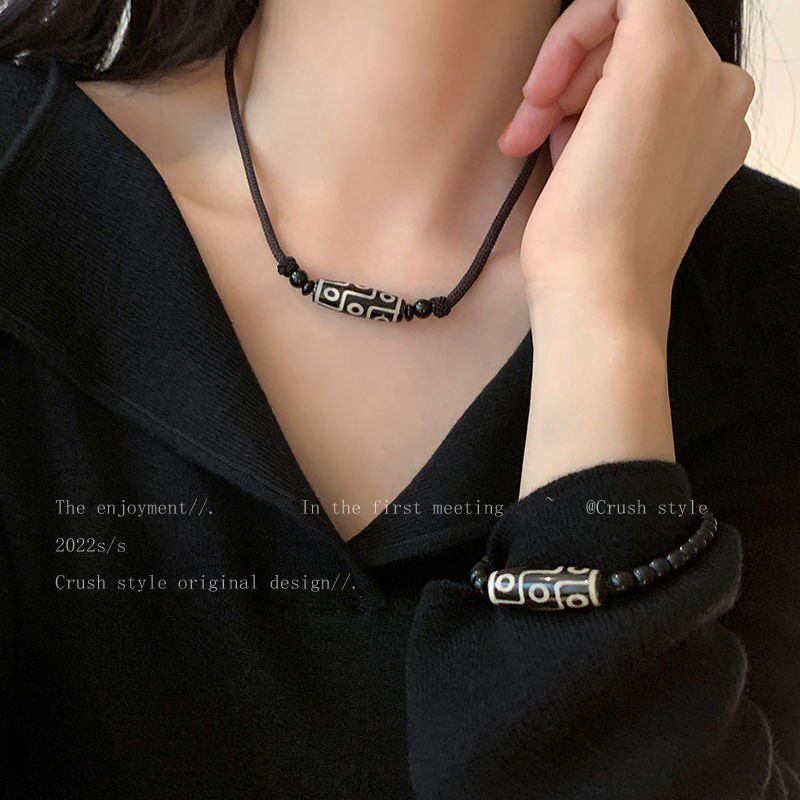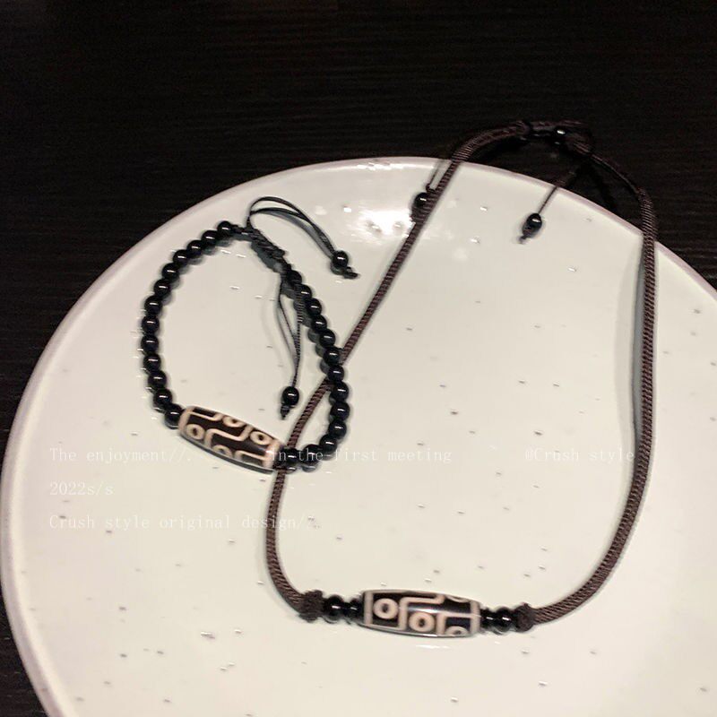 Ethnic Style Nine-Eyed Dzi Bead Braided Rope Necklace for Women, Trendy and High-End Neck Chain Accessory, Vintage Versatile Bracelet for Men
