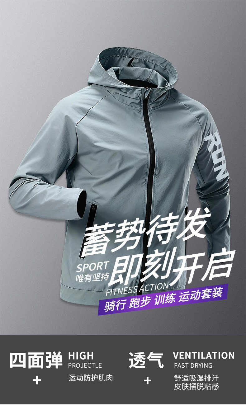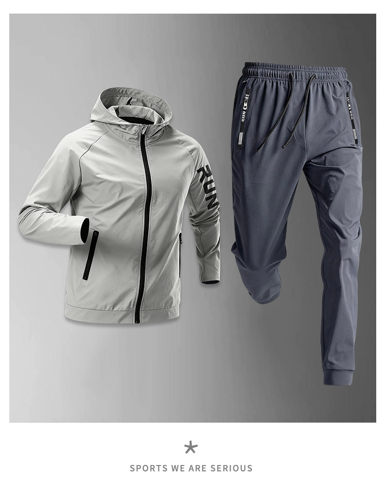 Sports Windbreaker Suit for Men in Autumn and Winter, Windproof Cycling and Running Clothing, Loose, Quick-Drying, Thin Morning Running Training Clothing Jacket